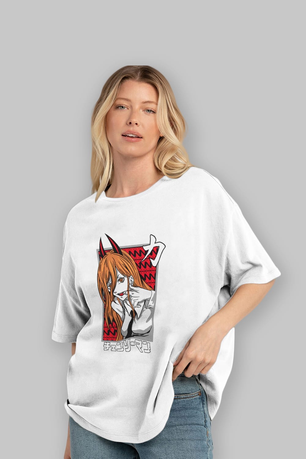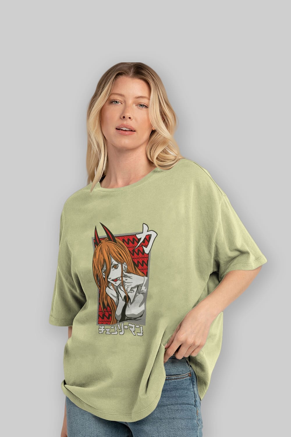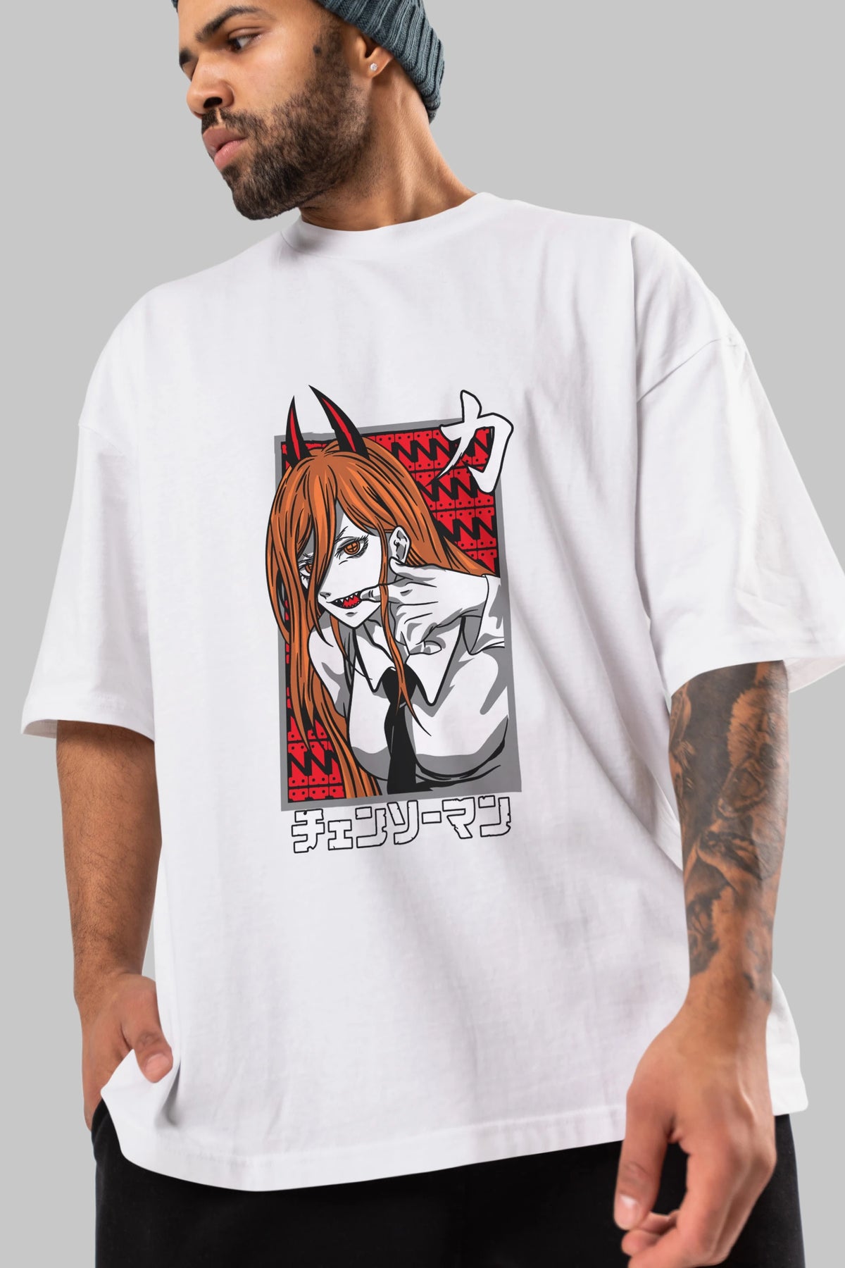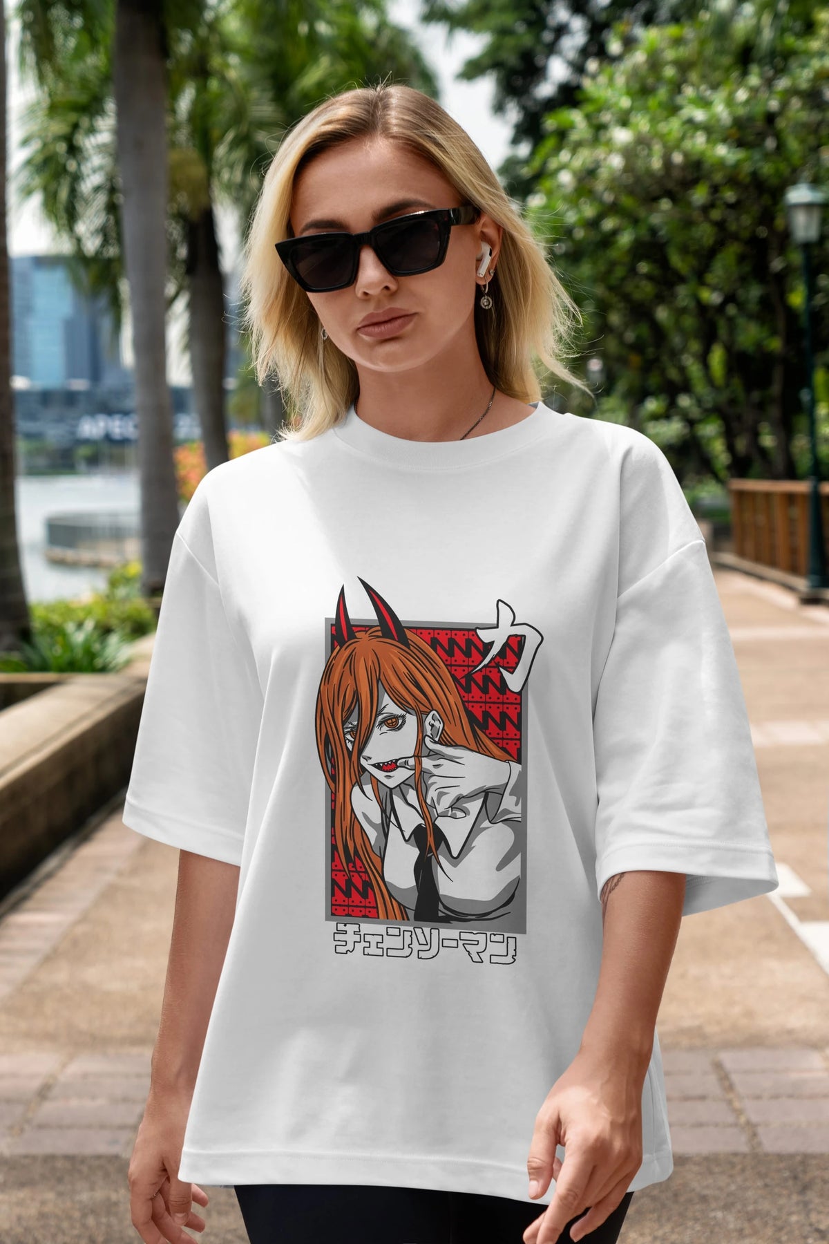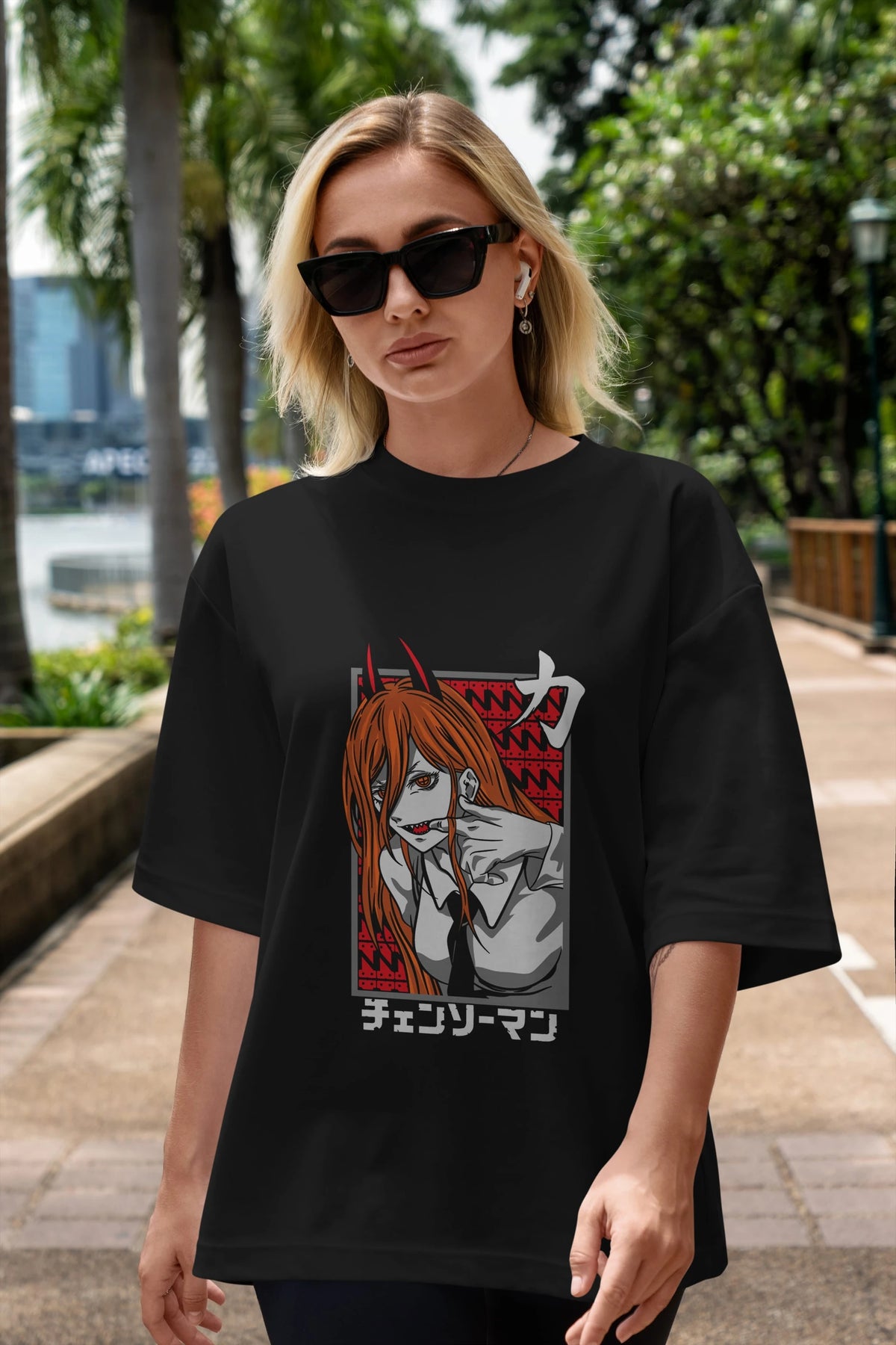 CHAINSAWMAN POWER Anime Ön Baskılı Oversize t-shirt %100 pamuk Erkek Kadın Unisex