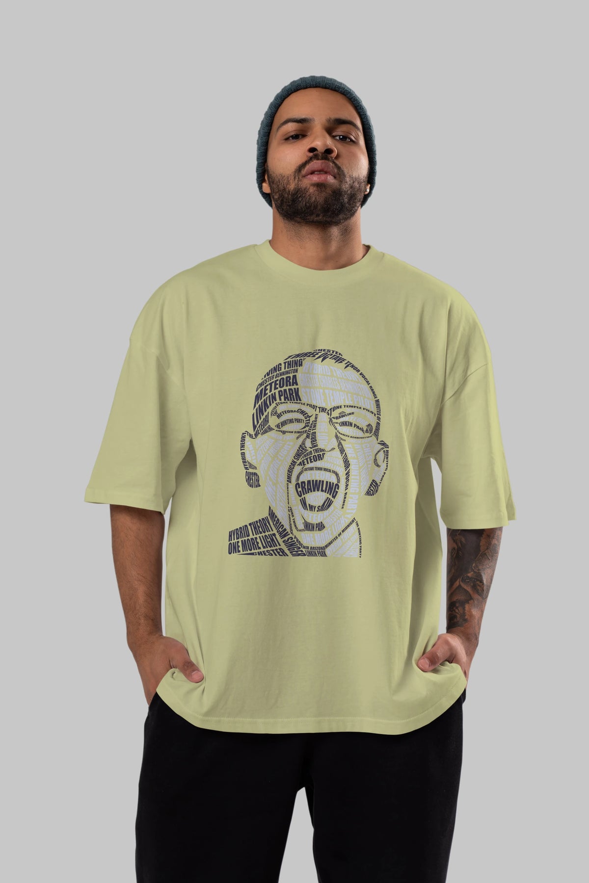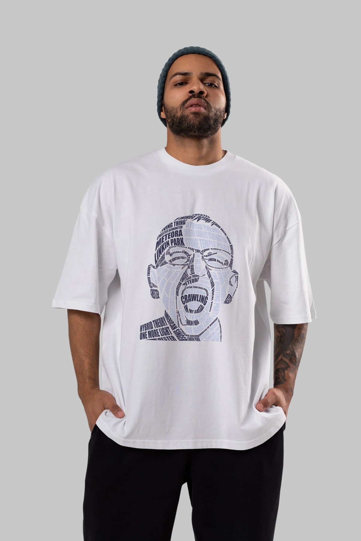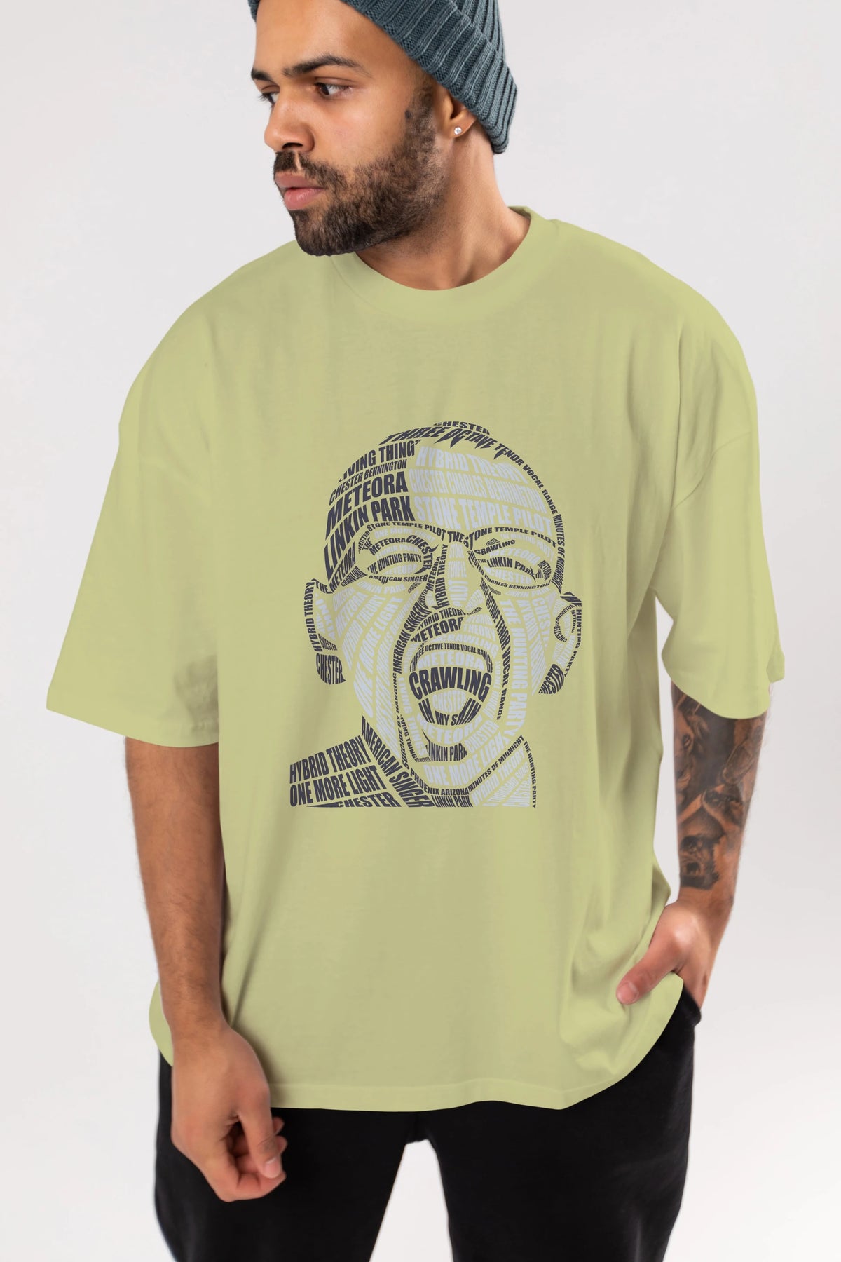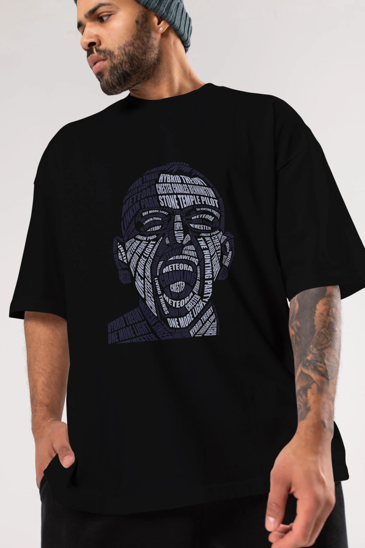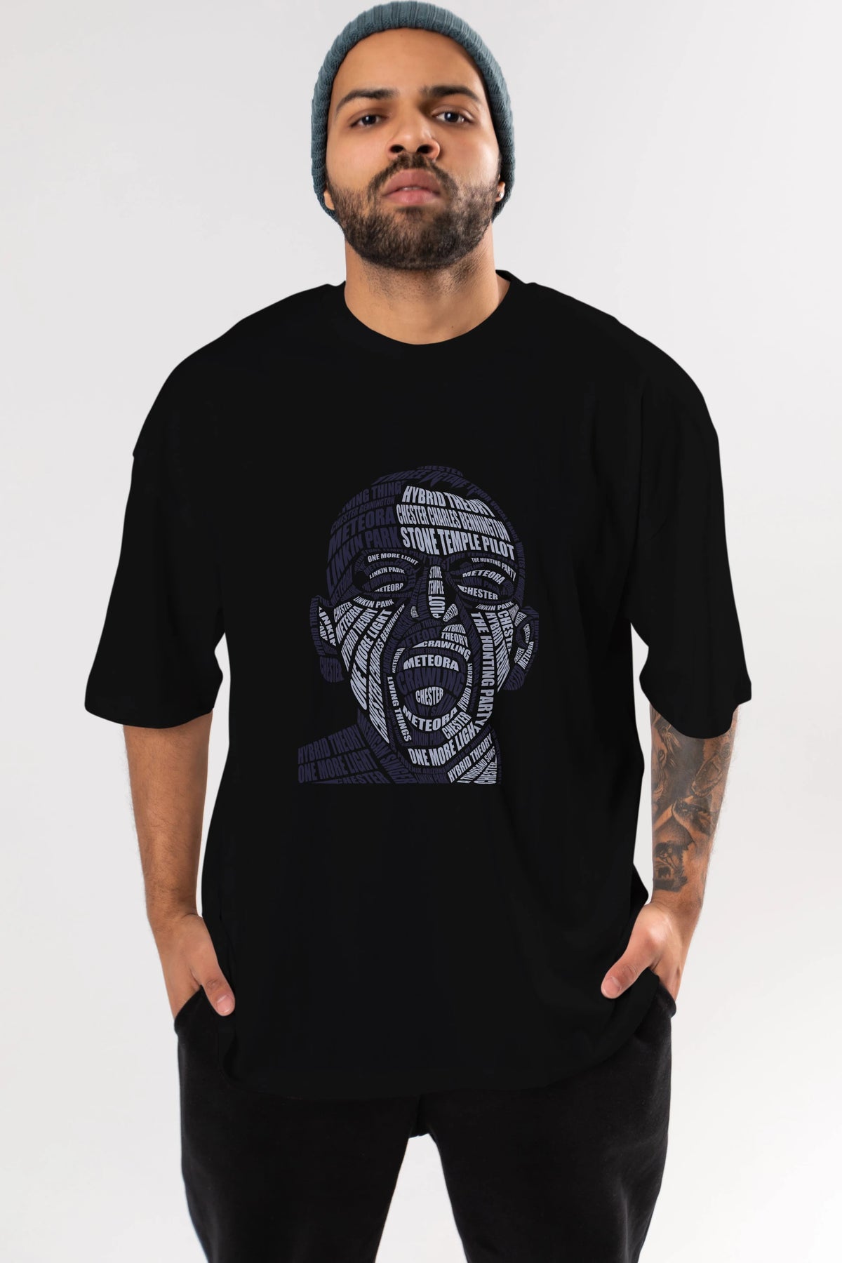 Chester Bennington Calligram Ön Baskılı Oversize t-shirt %100 pamuk Erkek Kadın Unisex