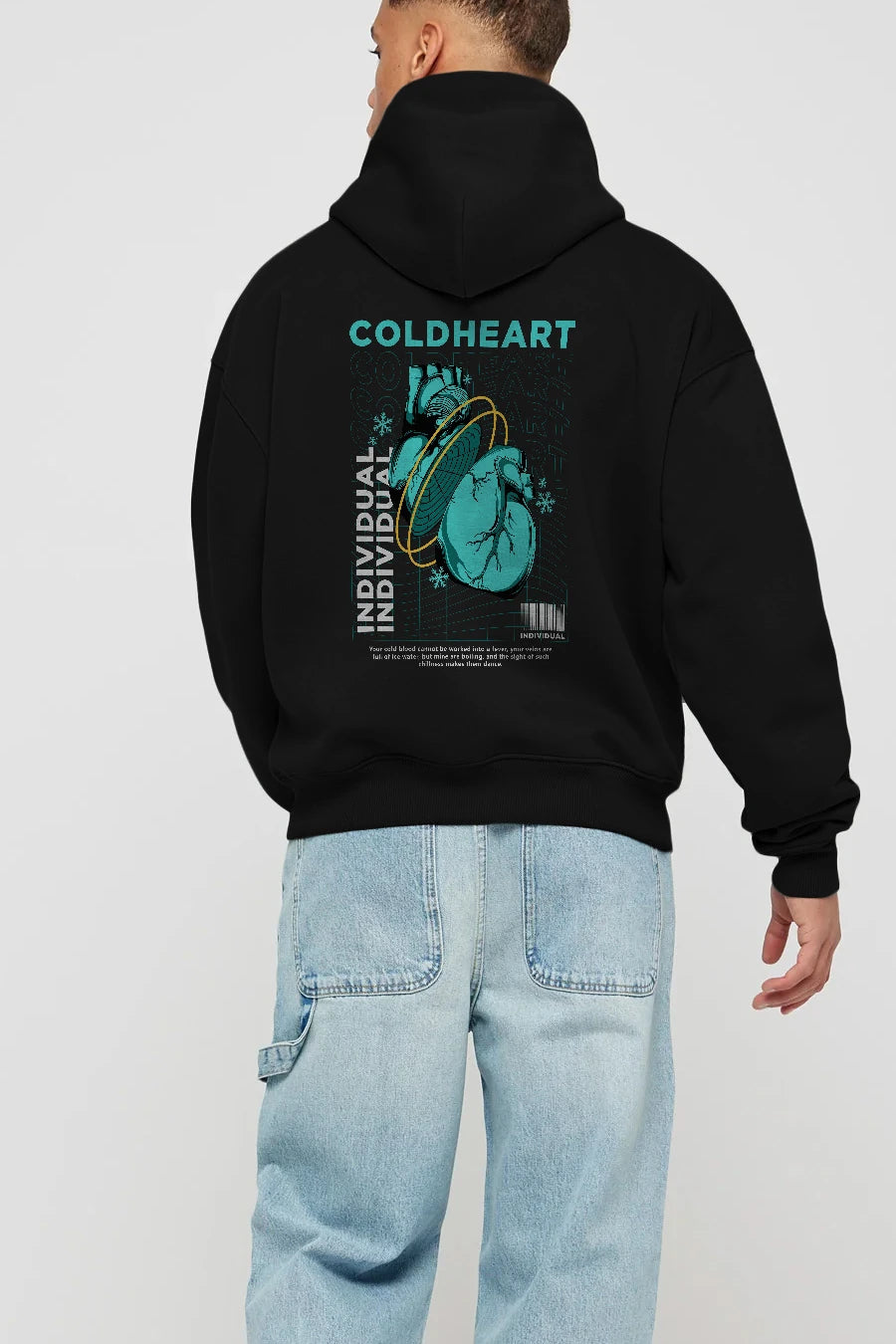 Cold Heart Arka Baskılı Hoodie Oversize Kapüşonlu Sweatshirt Erkek Kadın Unisex
