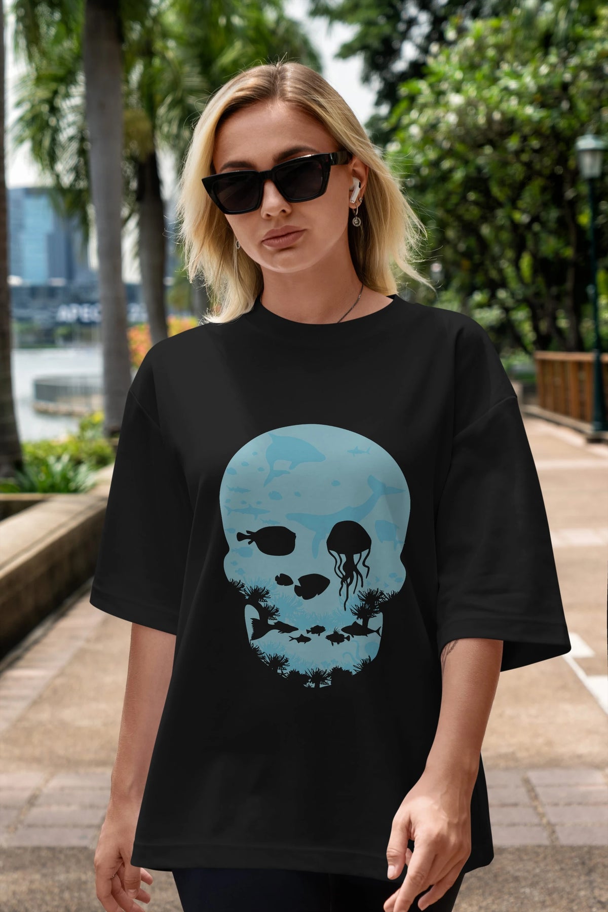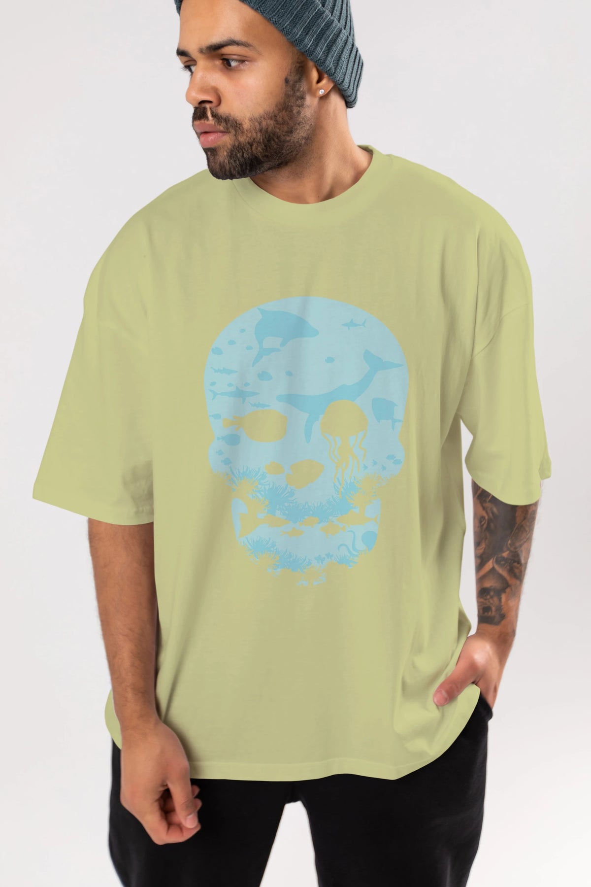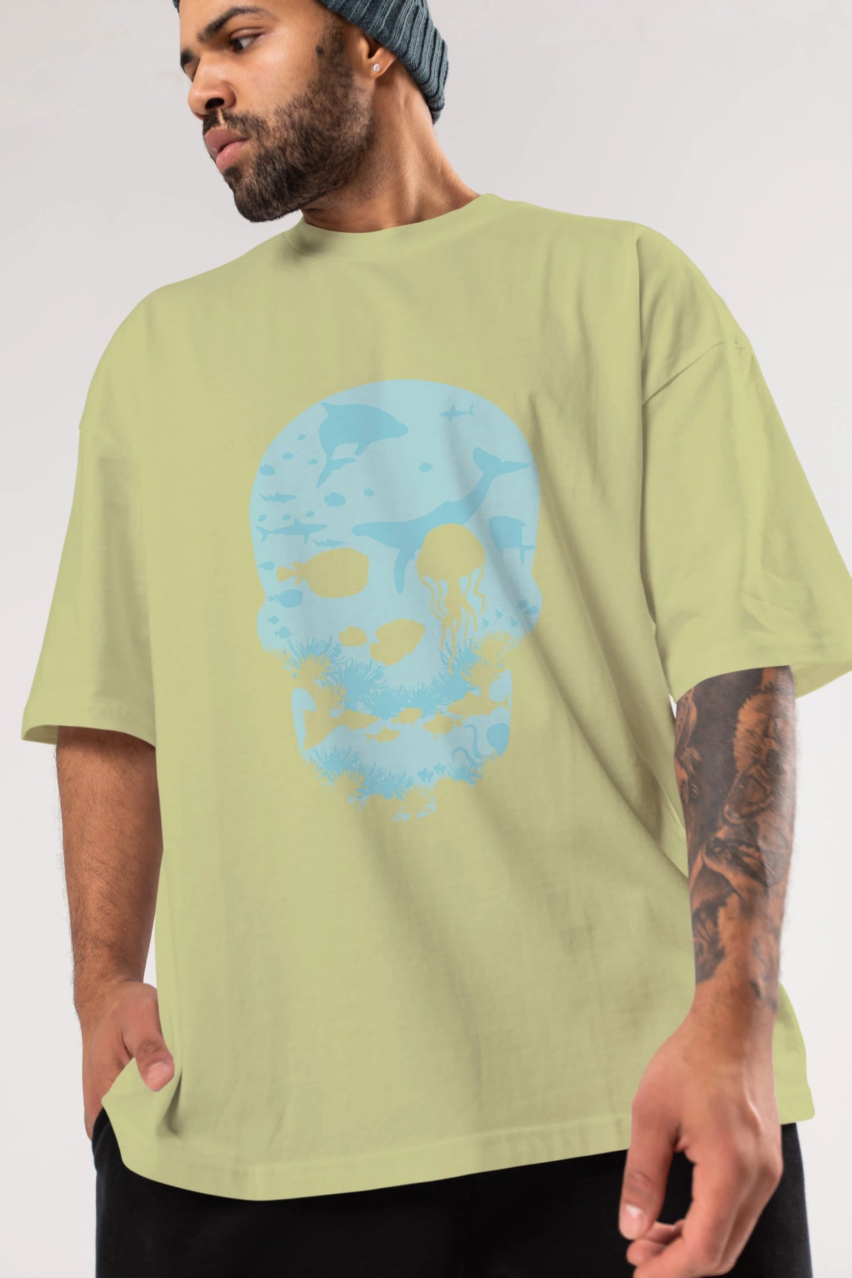 Hem erkekler hem de kadınlar için uygun, taze, modern bir baskıya sahip baskılı oversize t-shirt.