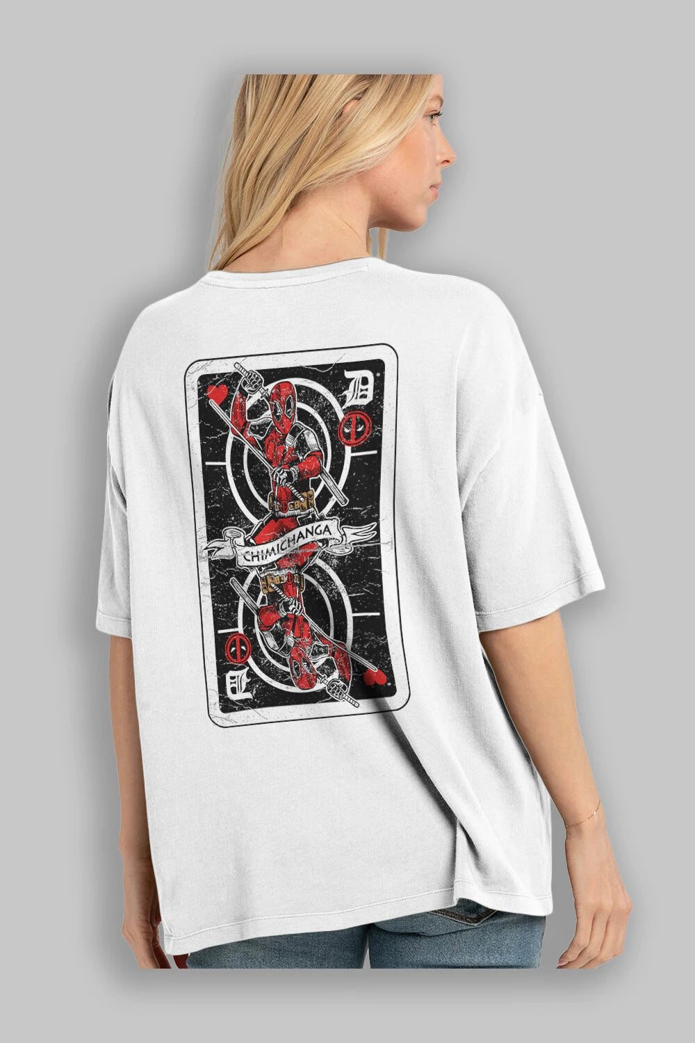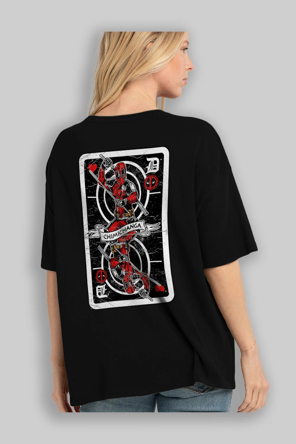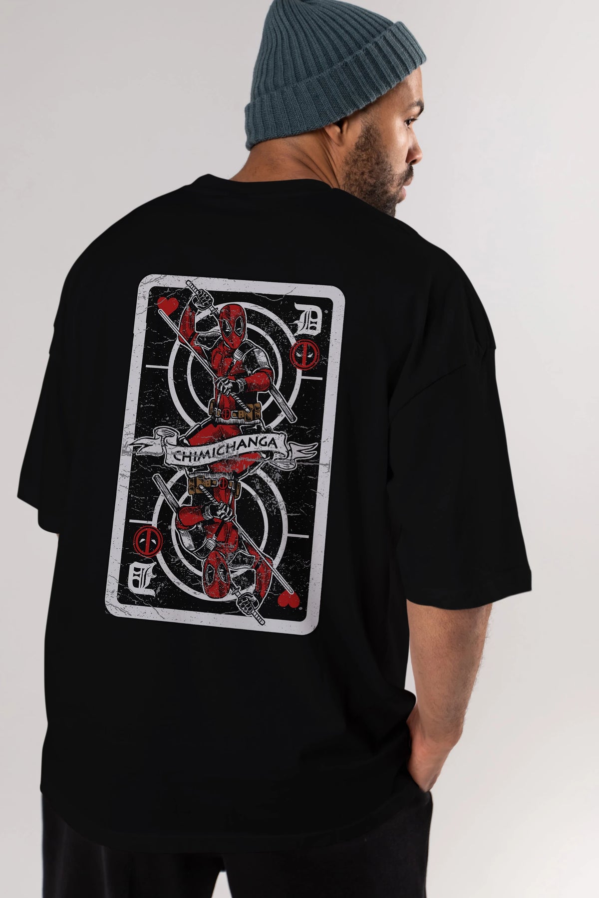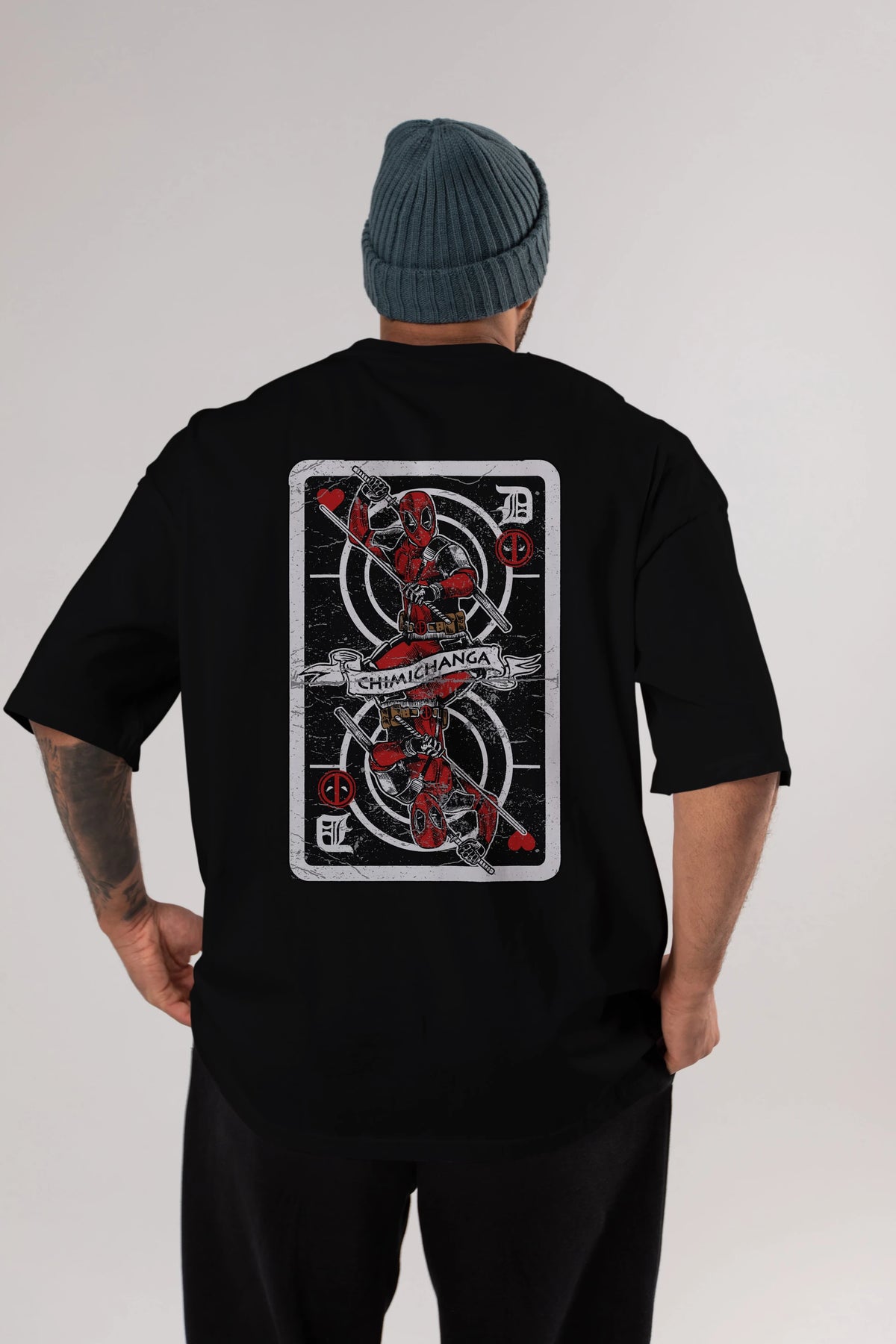 Deadpool Card Arka Baskılı Oversize t-shirt Erkek Kadın Unisex %100 Pamuk