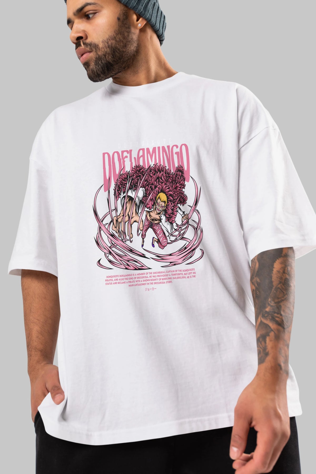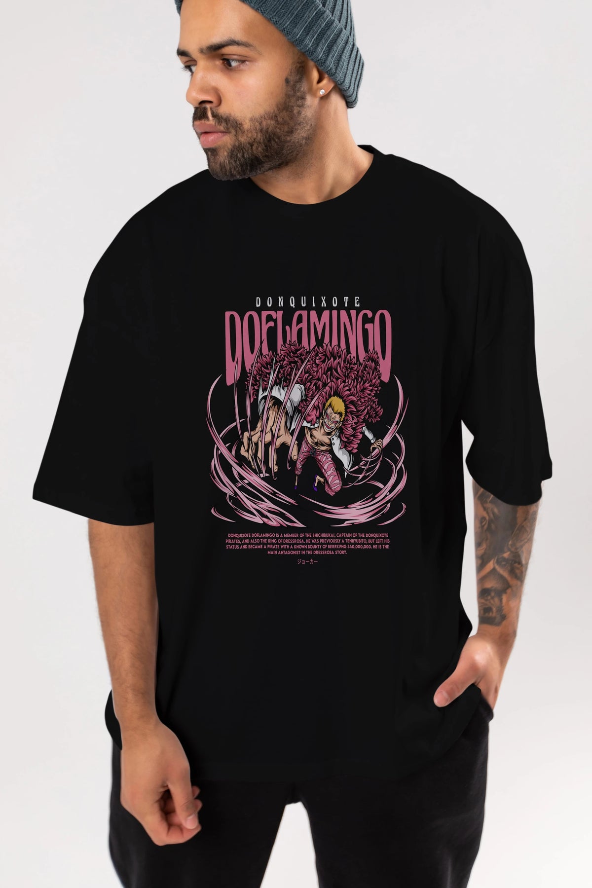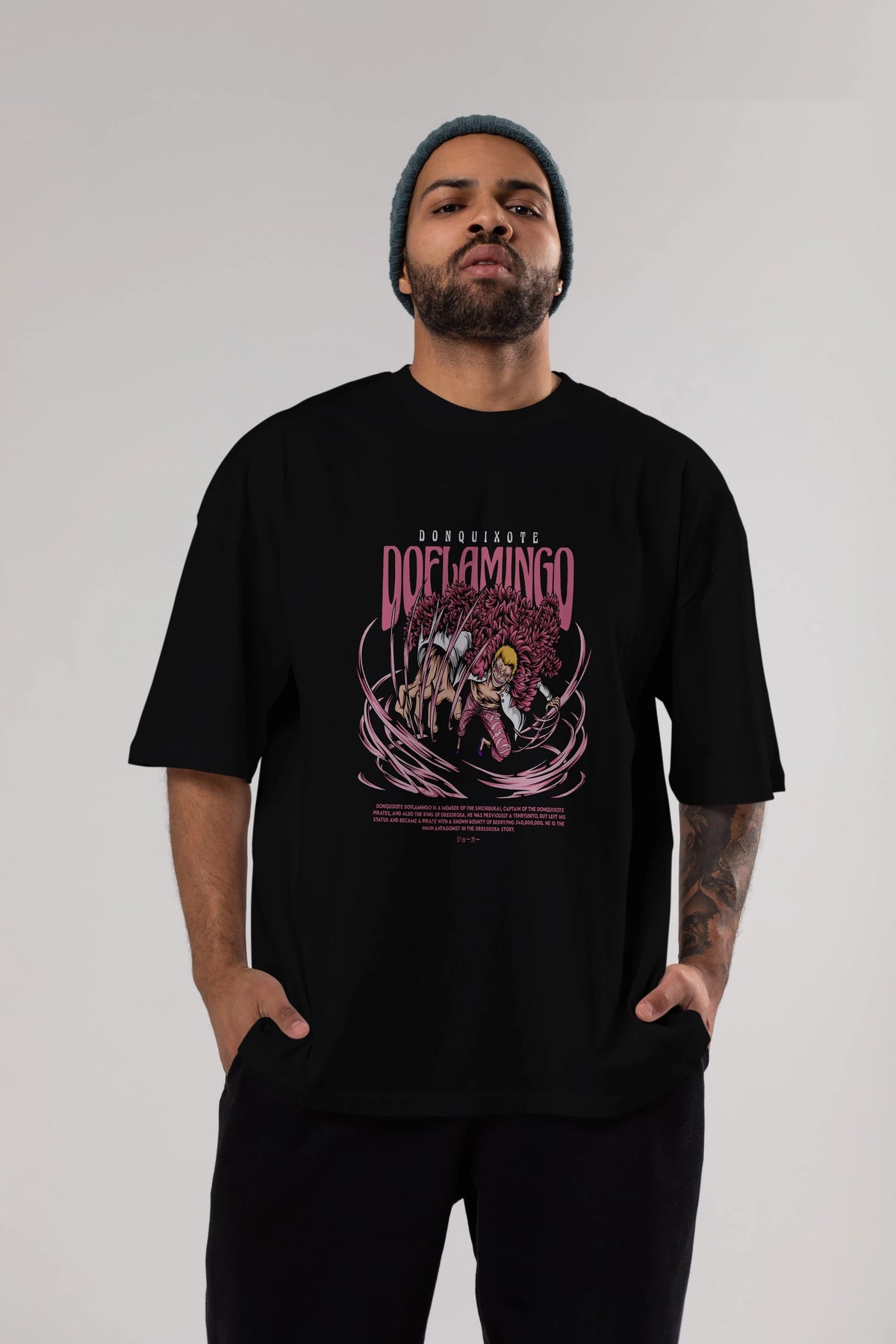 Doflamingo Anime Ön Baskılı Oversize t-shirt %100 pamuk Erkek Kadın Unisex