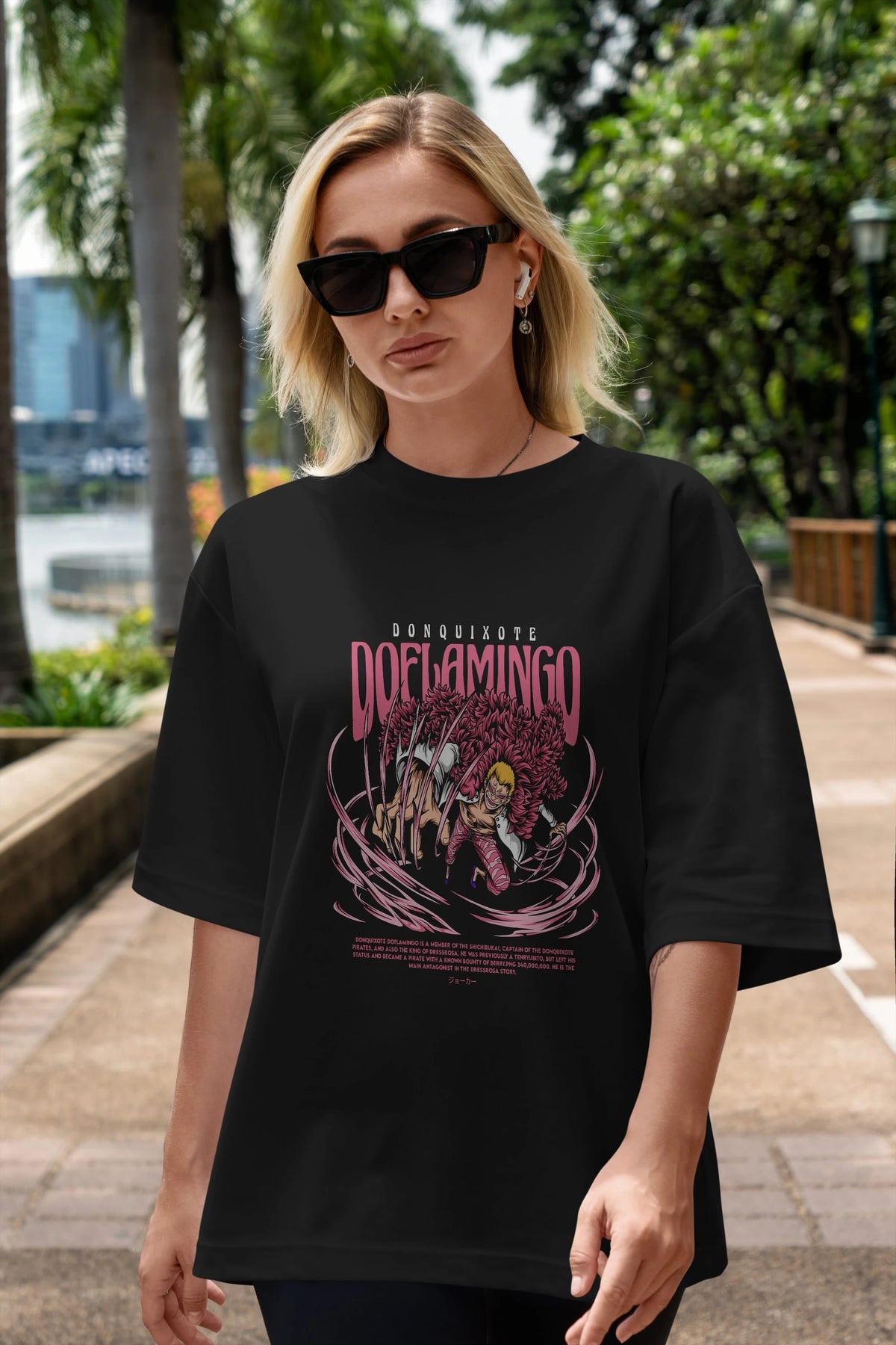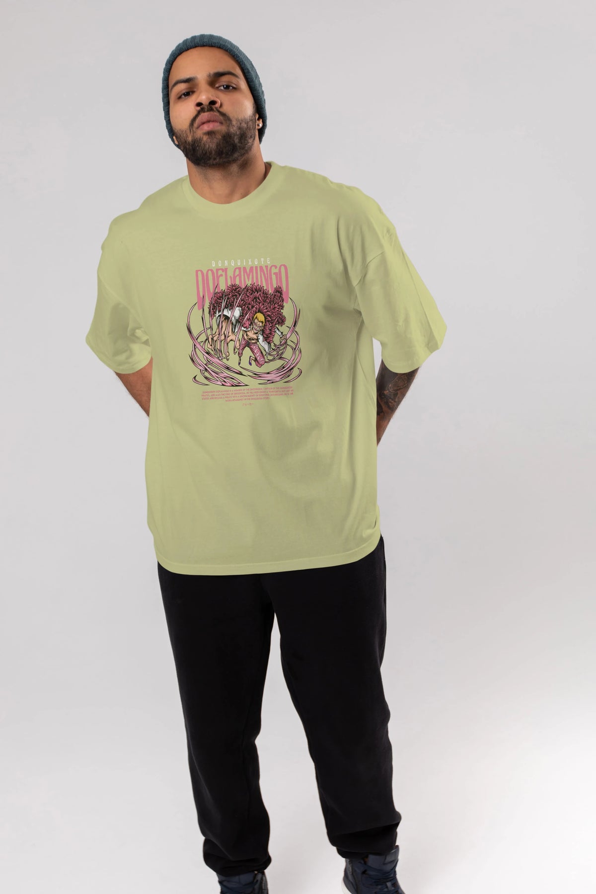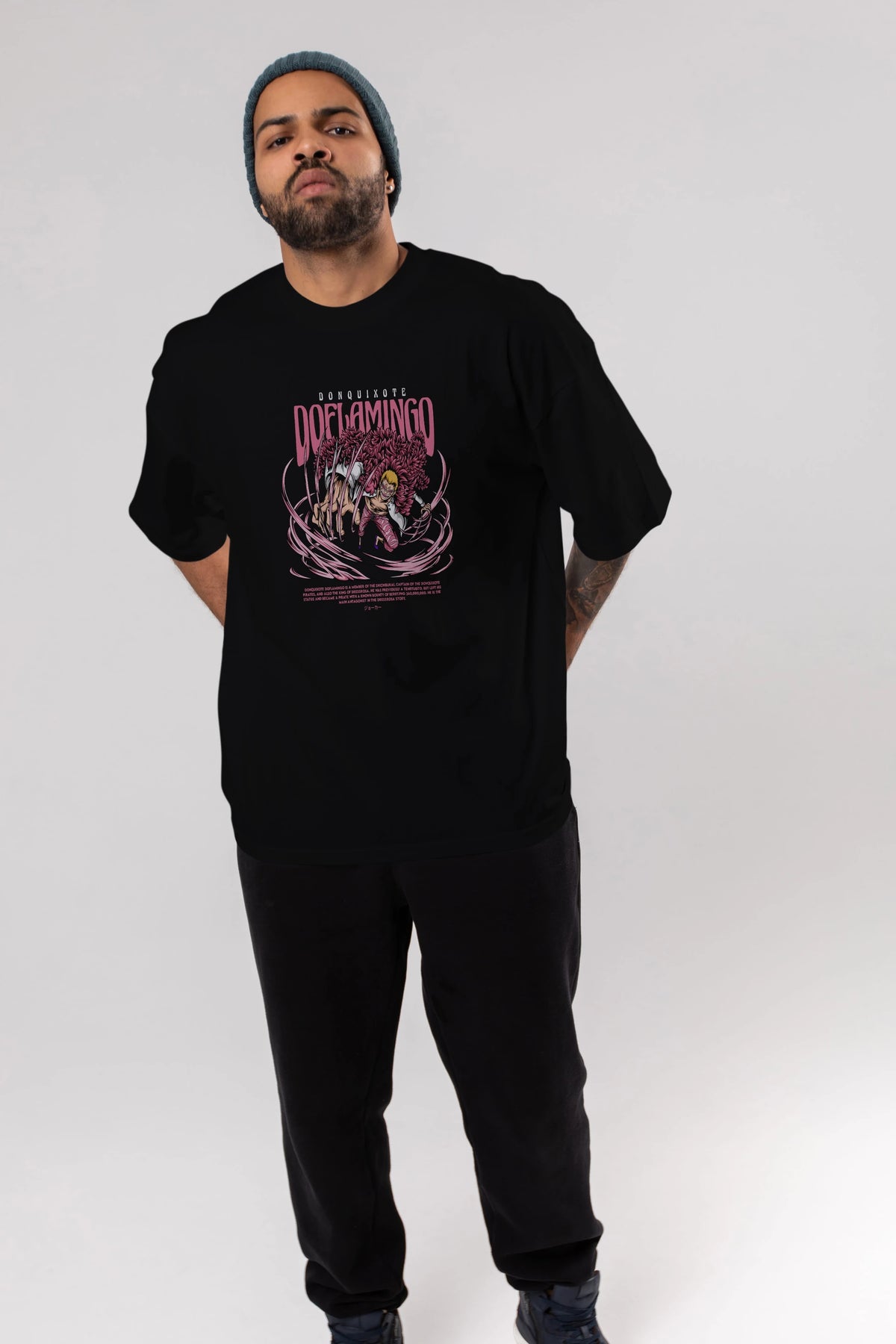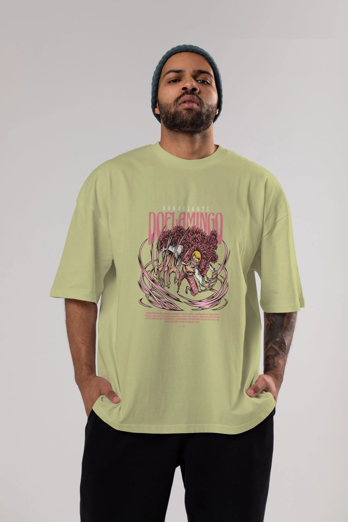 Doflamingo Anime Ön Baskılı Oversize t-shirt %100 pamuk Erkek Kadın Unisex