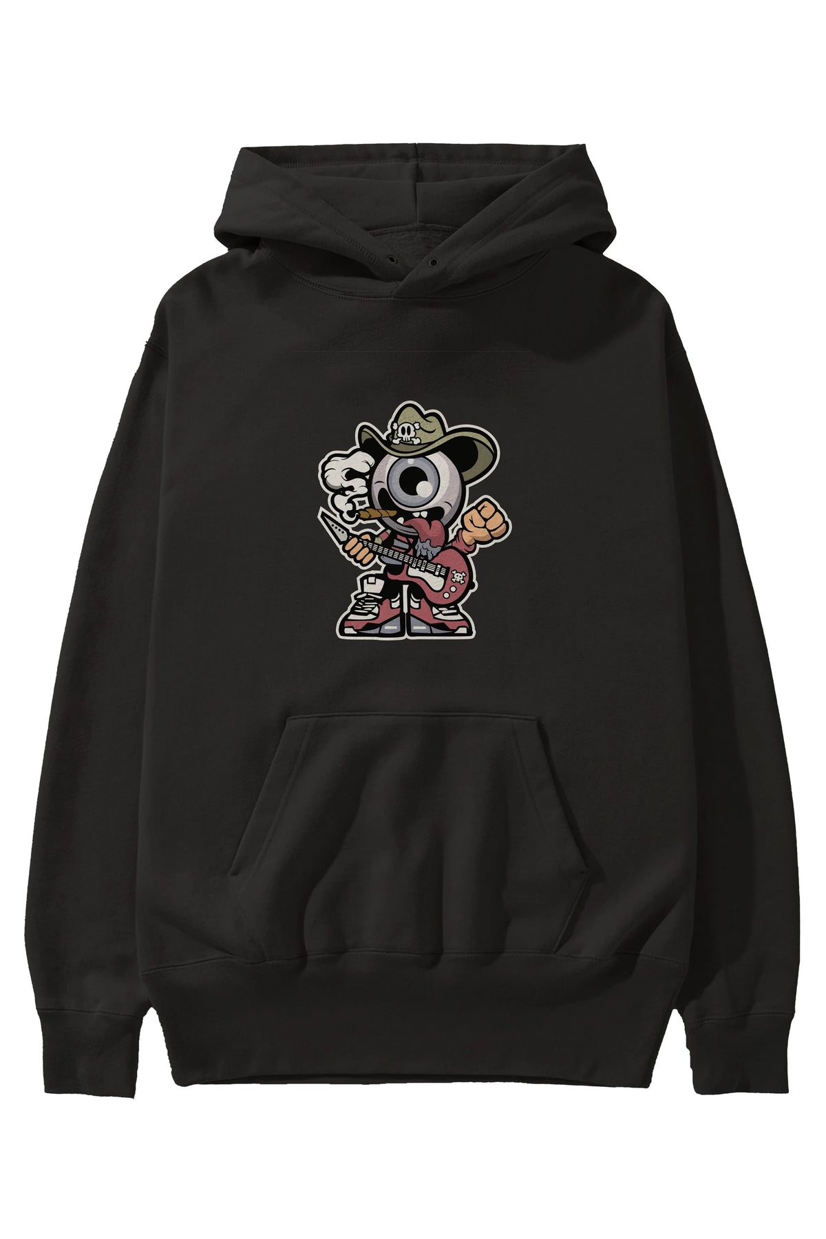 Eyeball Rockstar Cowboy Ön Baskılı Hoodie Oversize Kapüşonlu Sweatshirt Erkek Kadın Unisex