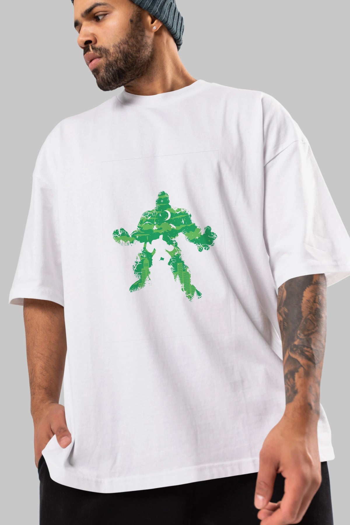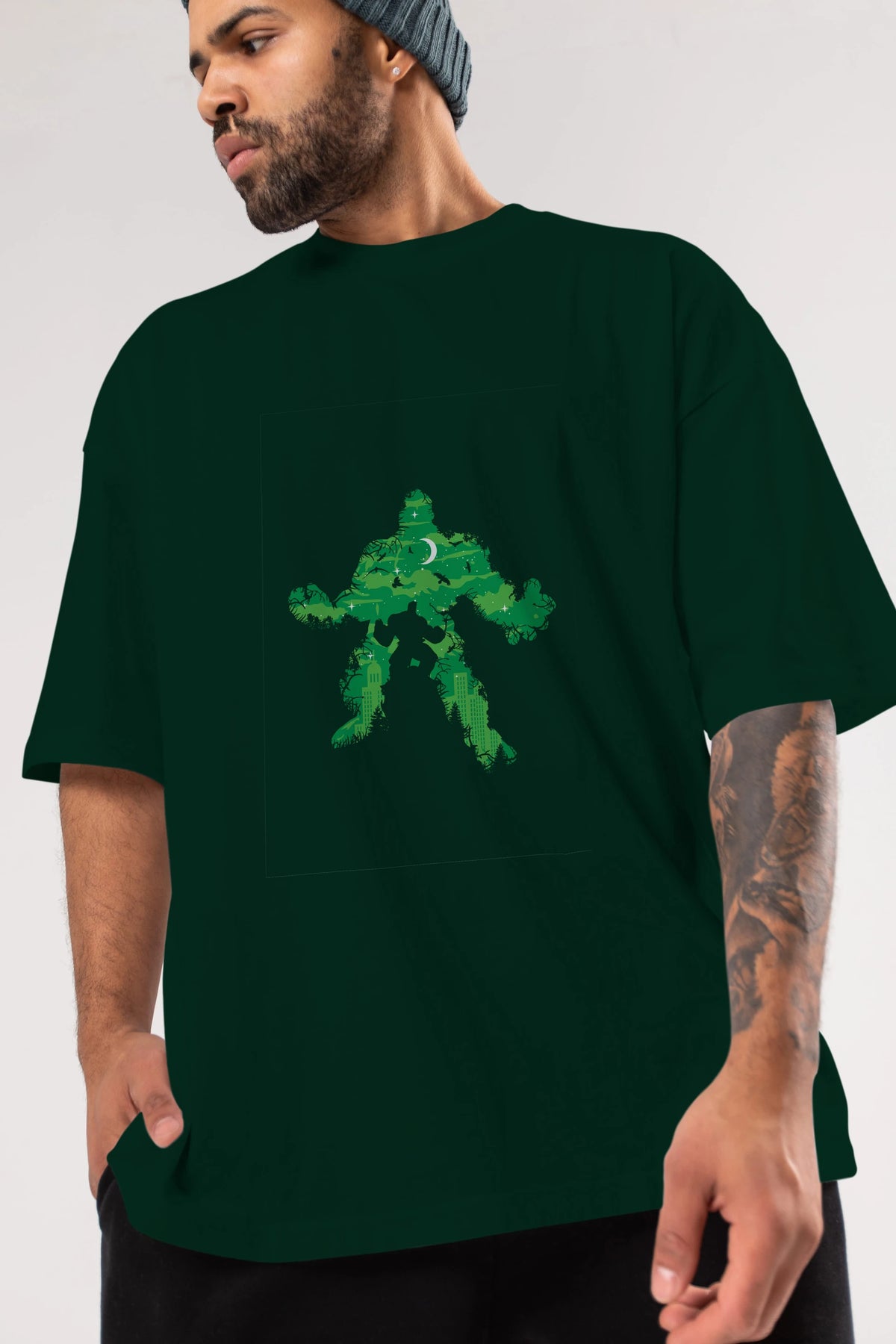 Green Monster Ön Baskılı Oversize t-shirt %100 pamuk Erkek Kadın Unisex