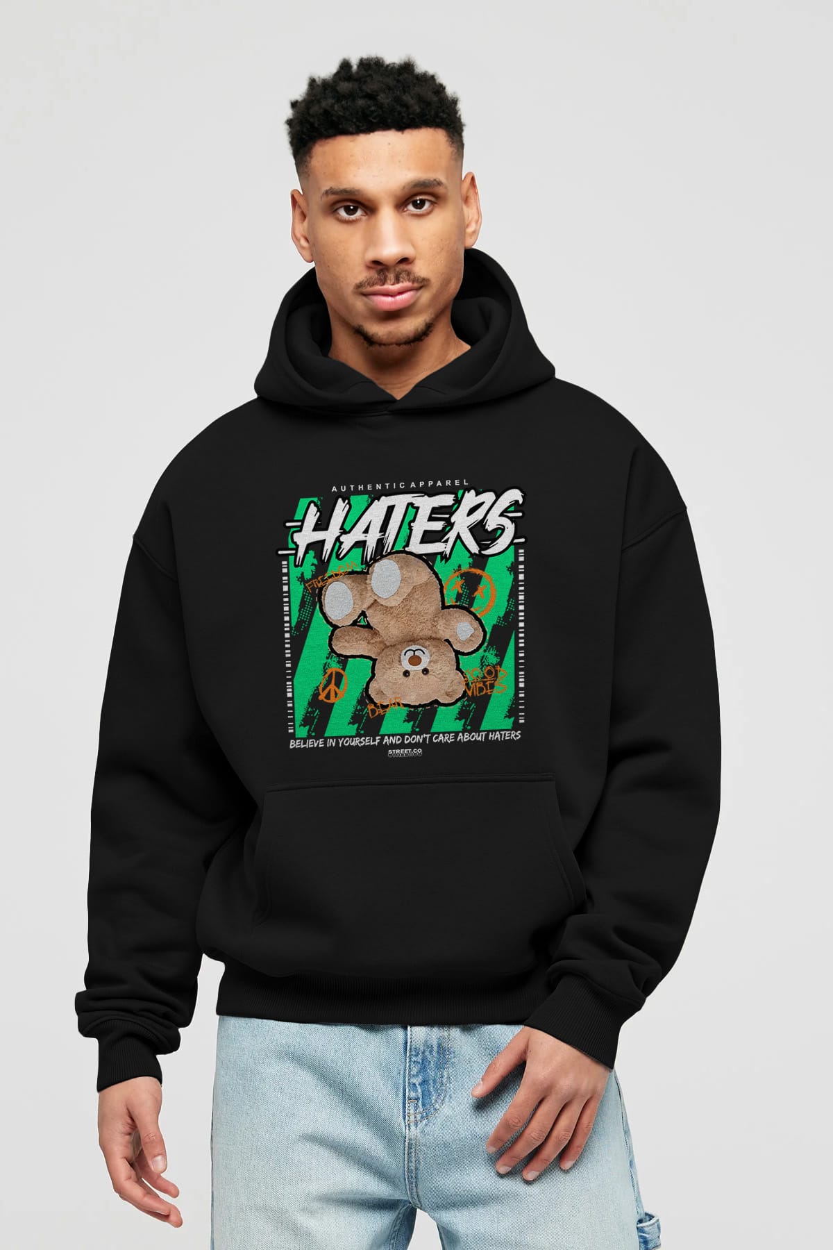 Haters Bear Ön Baskılı Hoodie Oversize Kapüşonlu Sweatshirt Erkek Kadın Unisex