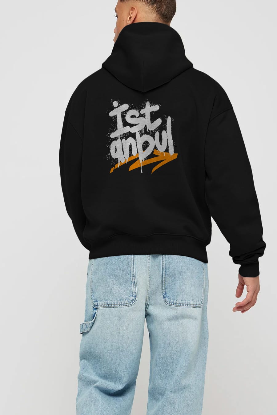 istanbul Yazılı Arka Baskılı Oversize Hoodie Kapüşonlu Sweatshirt Erkek Kadın Unisex