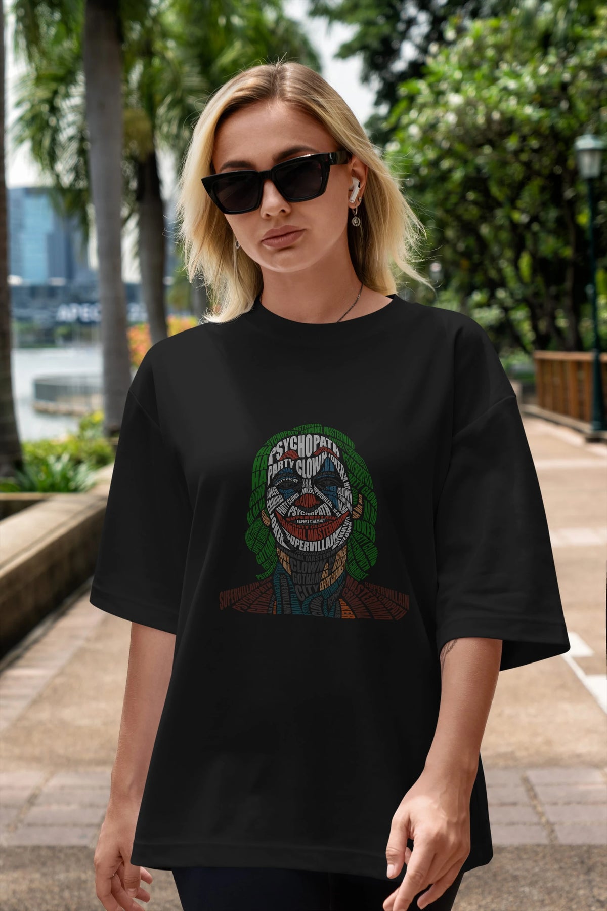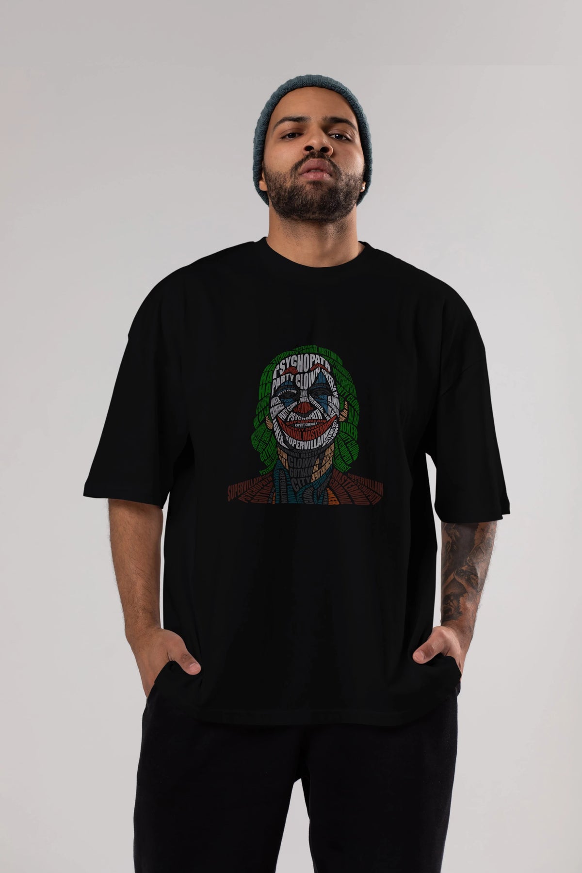 Joker Calligram Ön Baskılı Oversize t-shirt %100 pamuk Erkek Kadın Unisex