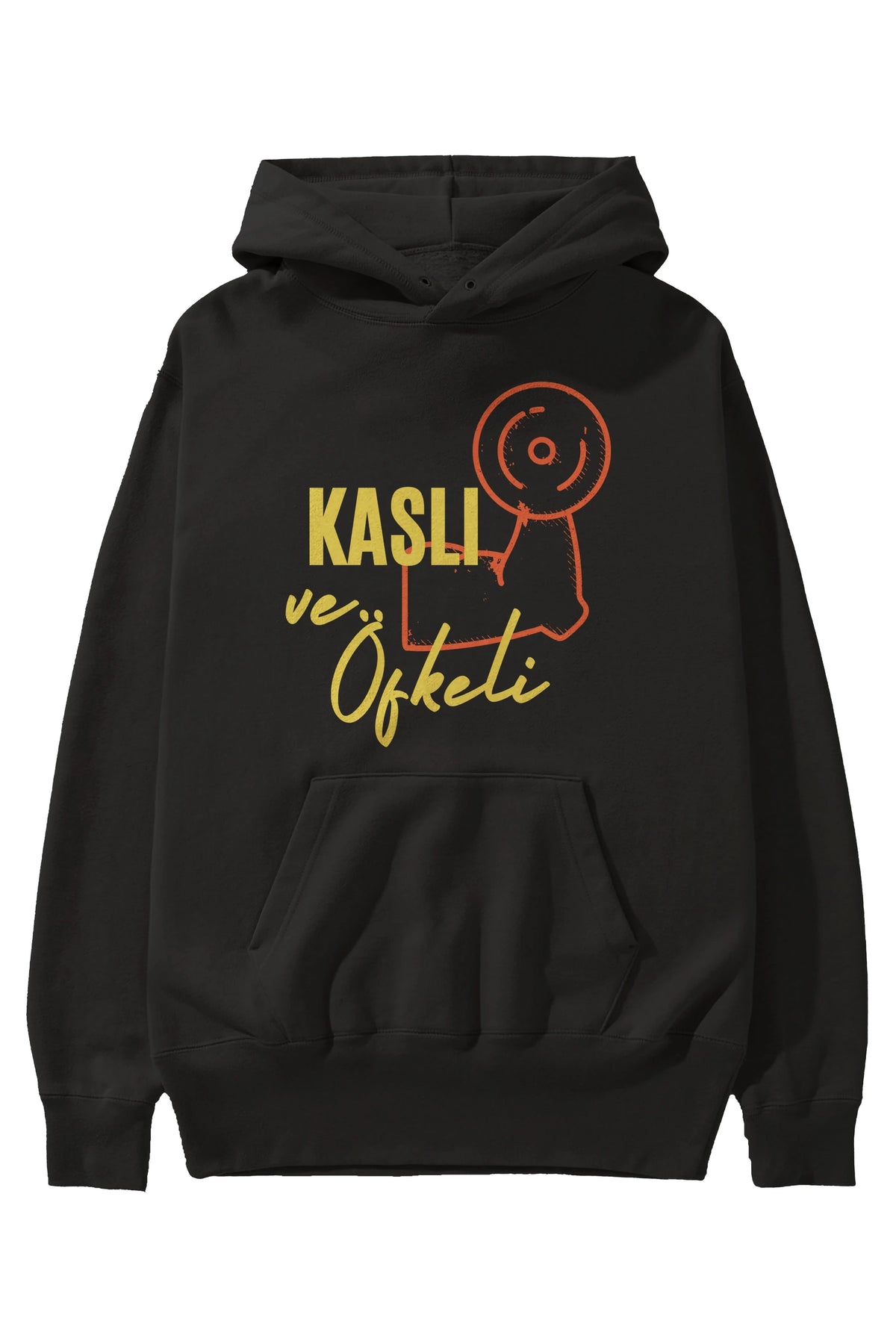 Kaslı ve Öfkeli Yazılı Ön Baskılı Oversize Hoodie Kapüşonlu Sweatshirt Erkek Kadın Unisex