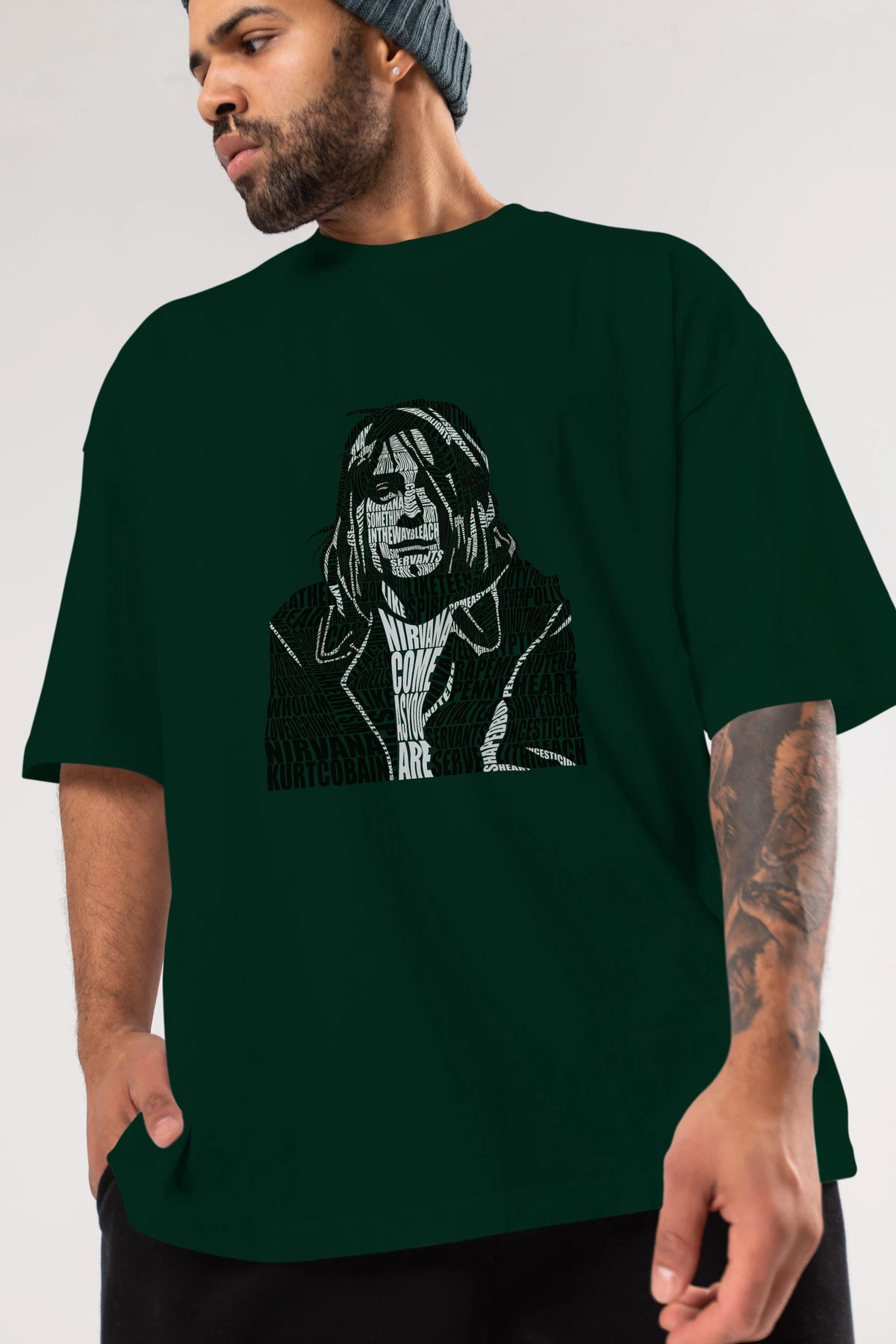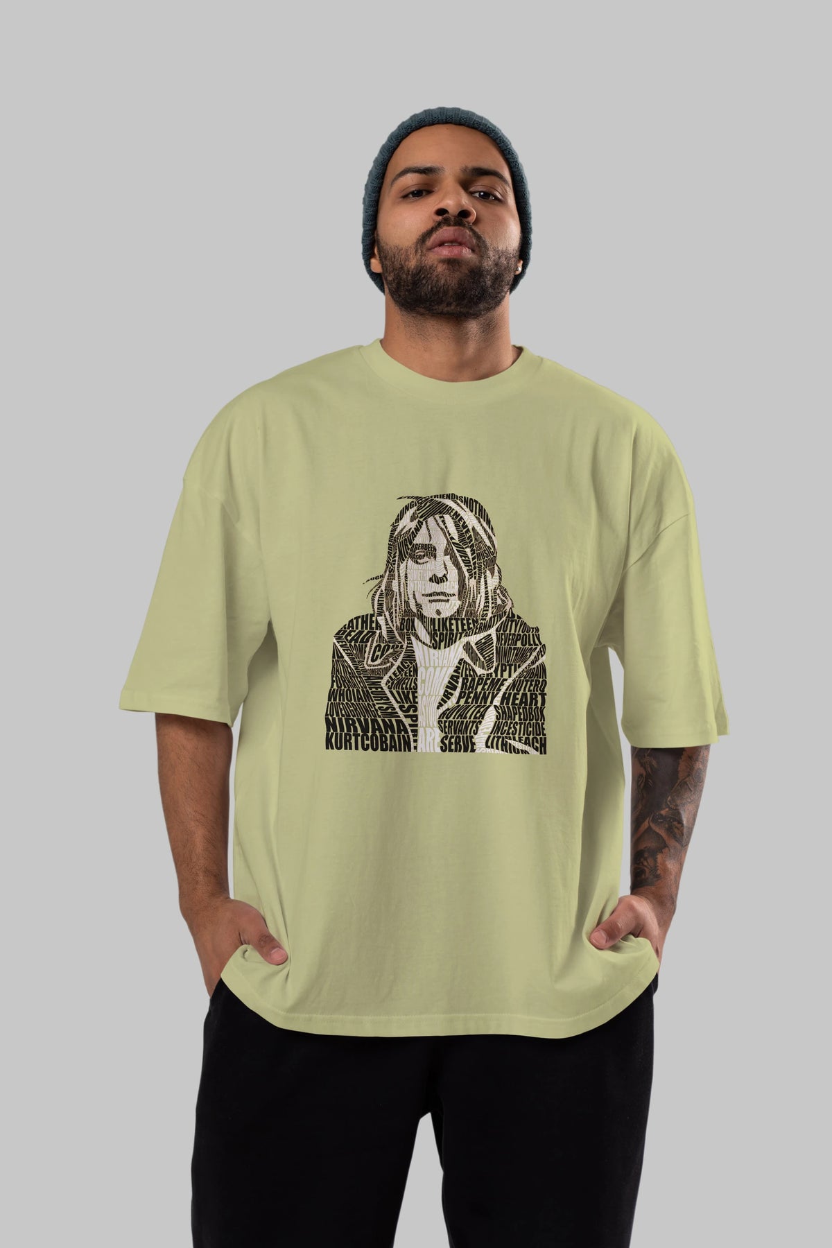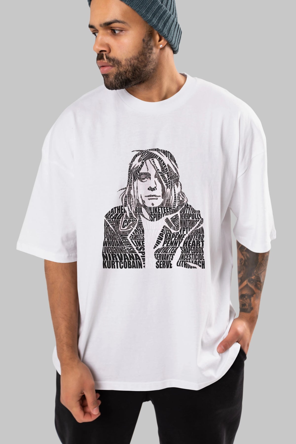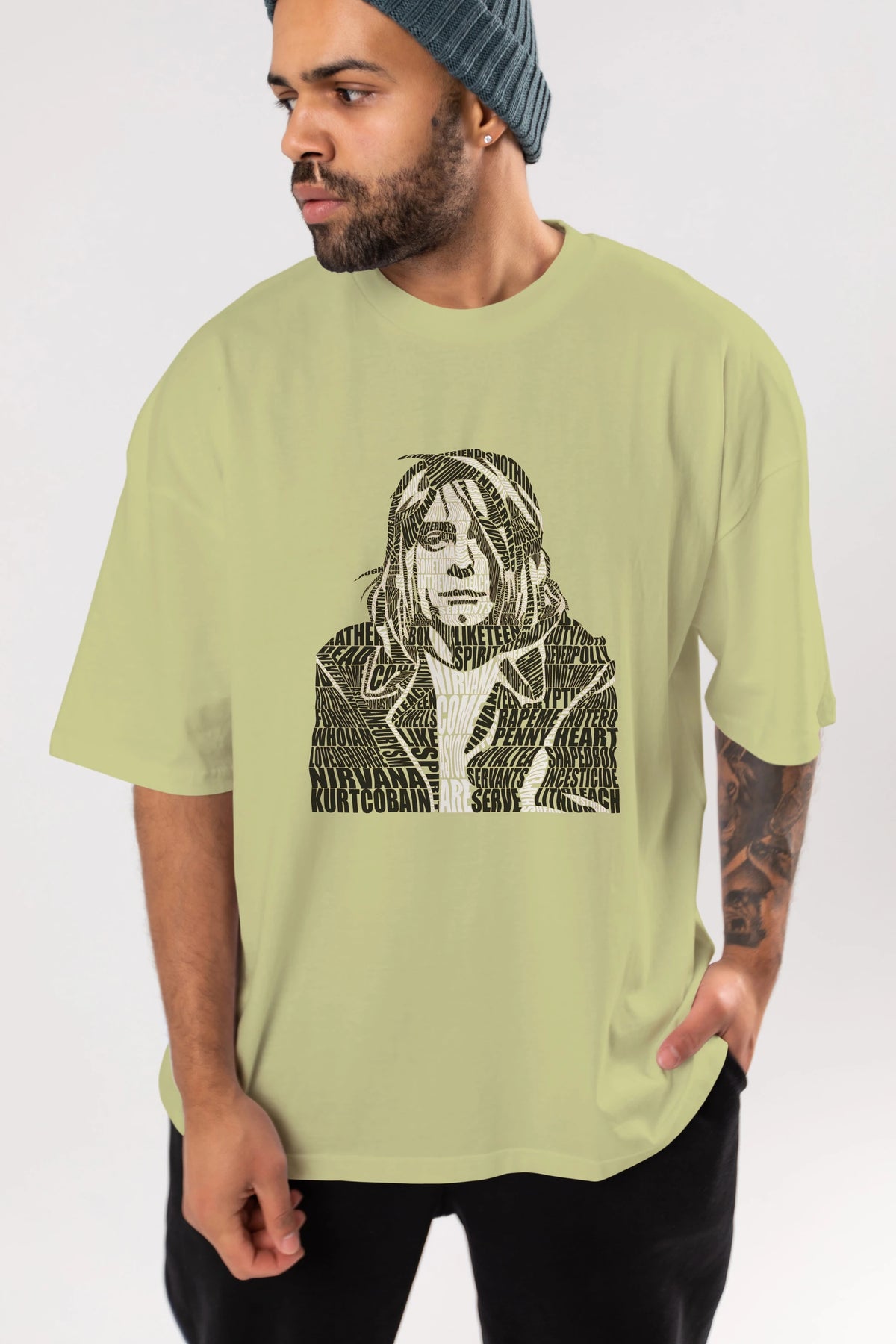 Kurt Cobain Calligram Ön Baskılı Oversize t-shirt %100 pamuk Erkek Kadın Unisex