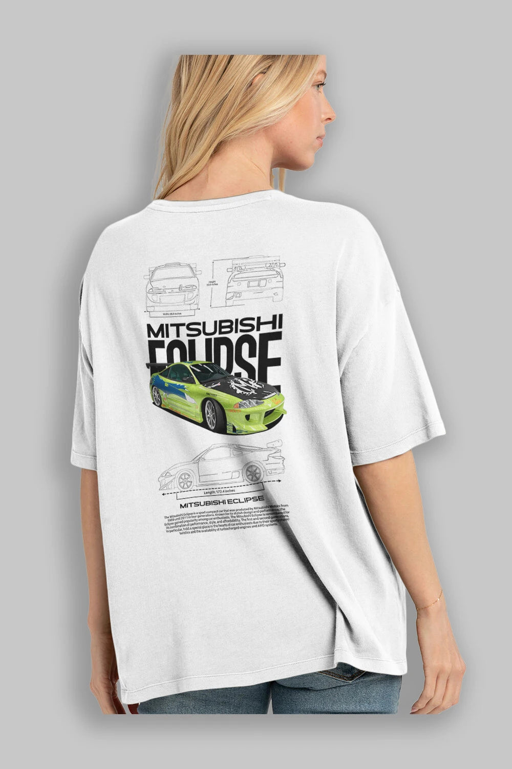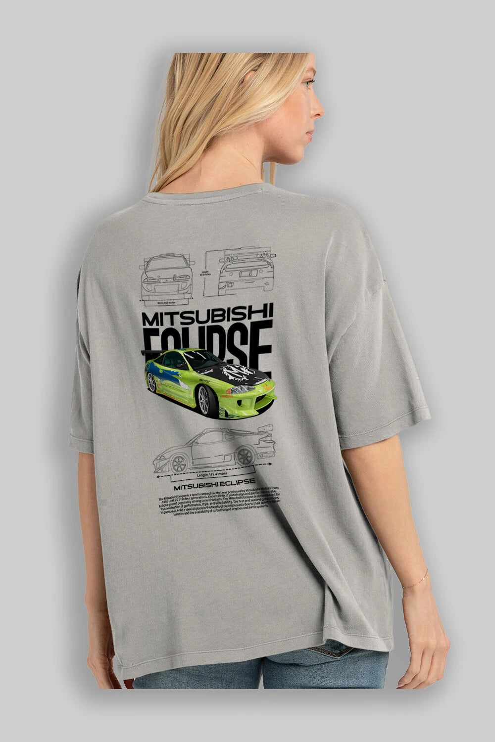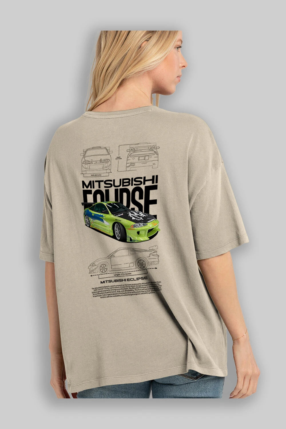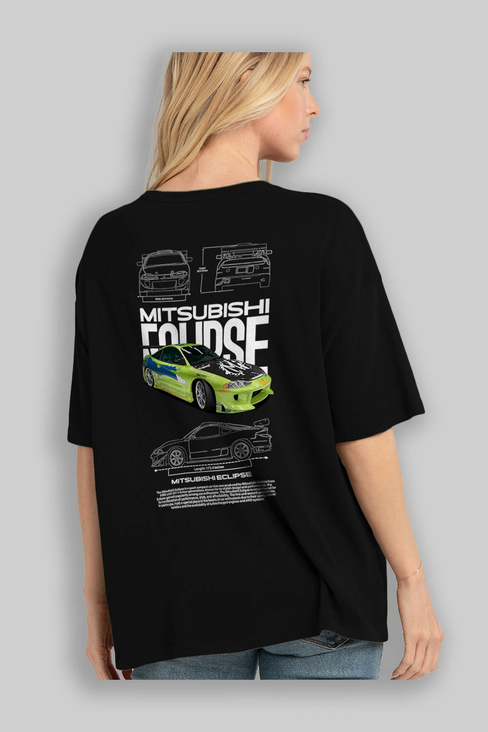 mitsubishi eclipse Arka Baskılı Oversize t-shirt Erkek Kadın Unisex %100 Pamuk Bisiklet Yaka tişort