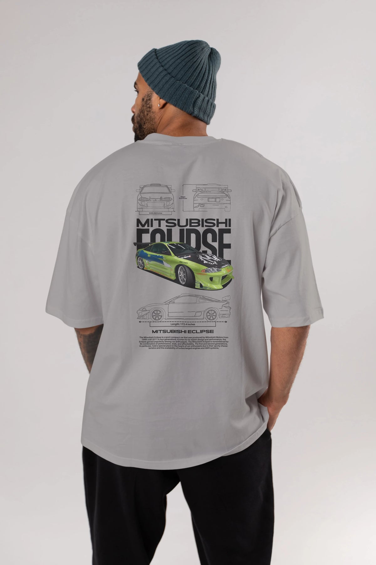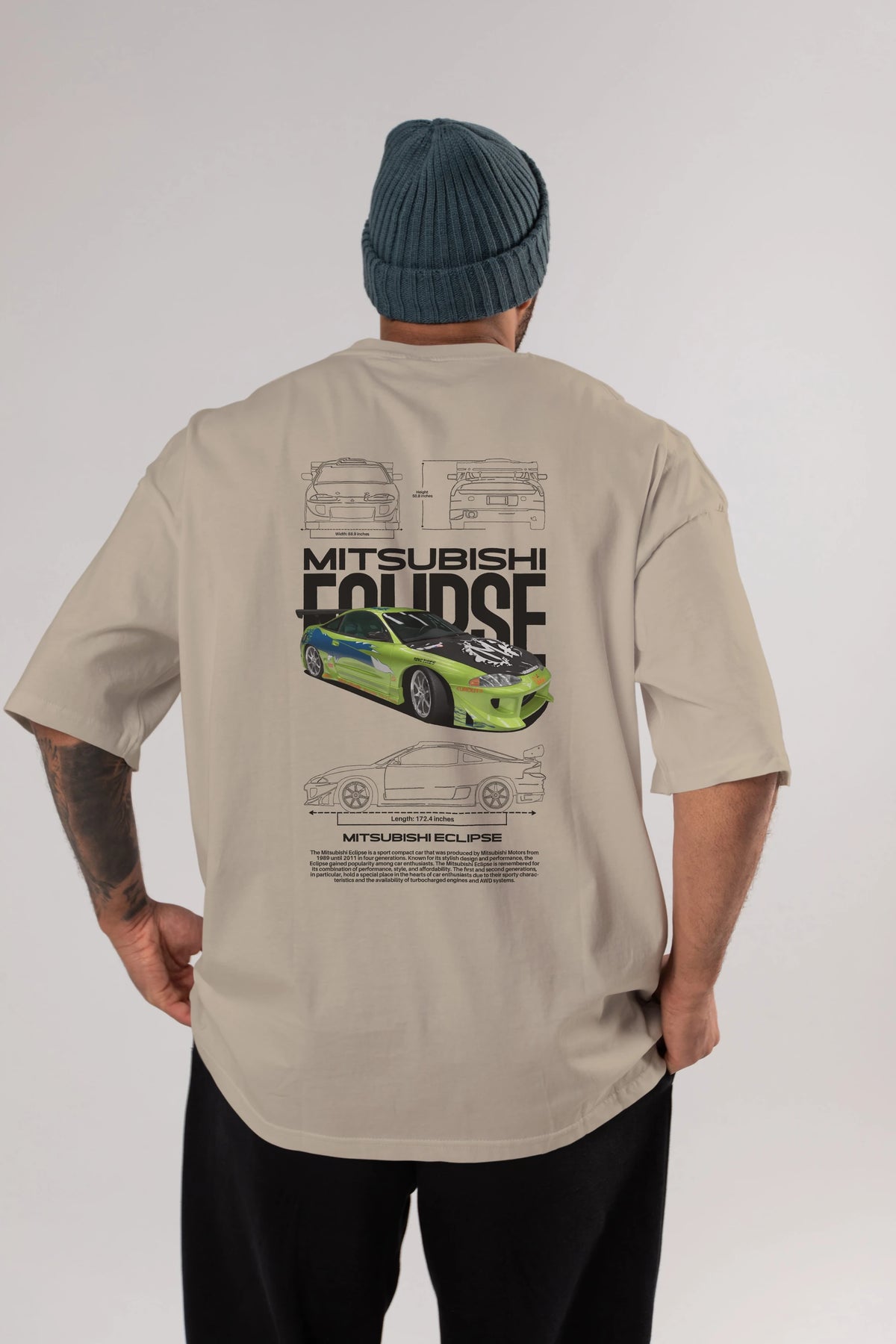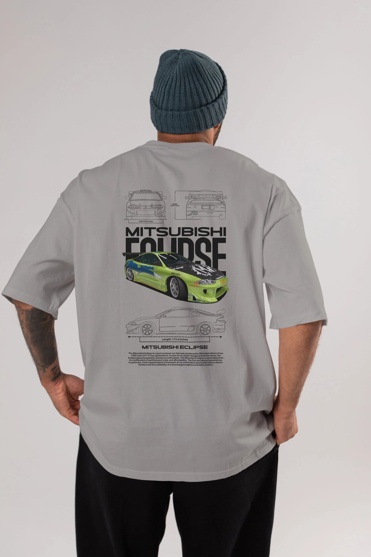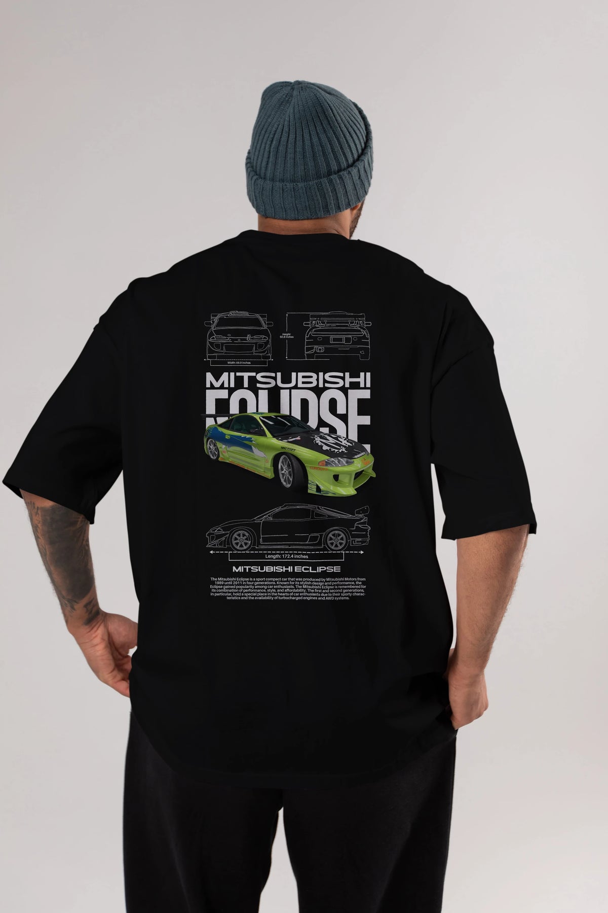 mitsubishi eclipse Arka Baskılı Oversize t-shirt Erkek Kadın Unisex %100 Pamuk Bisiklet Yaka tişort