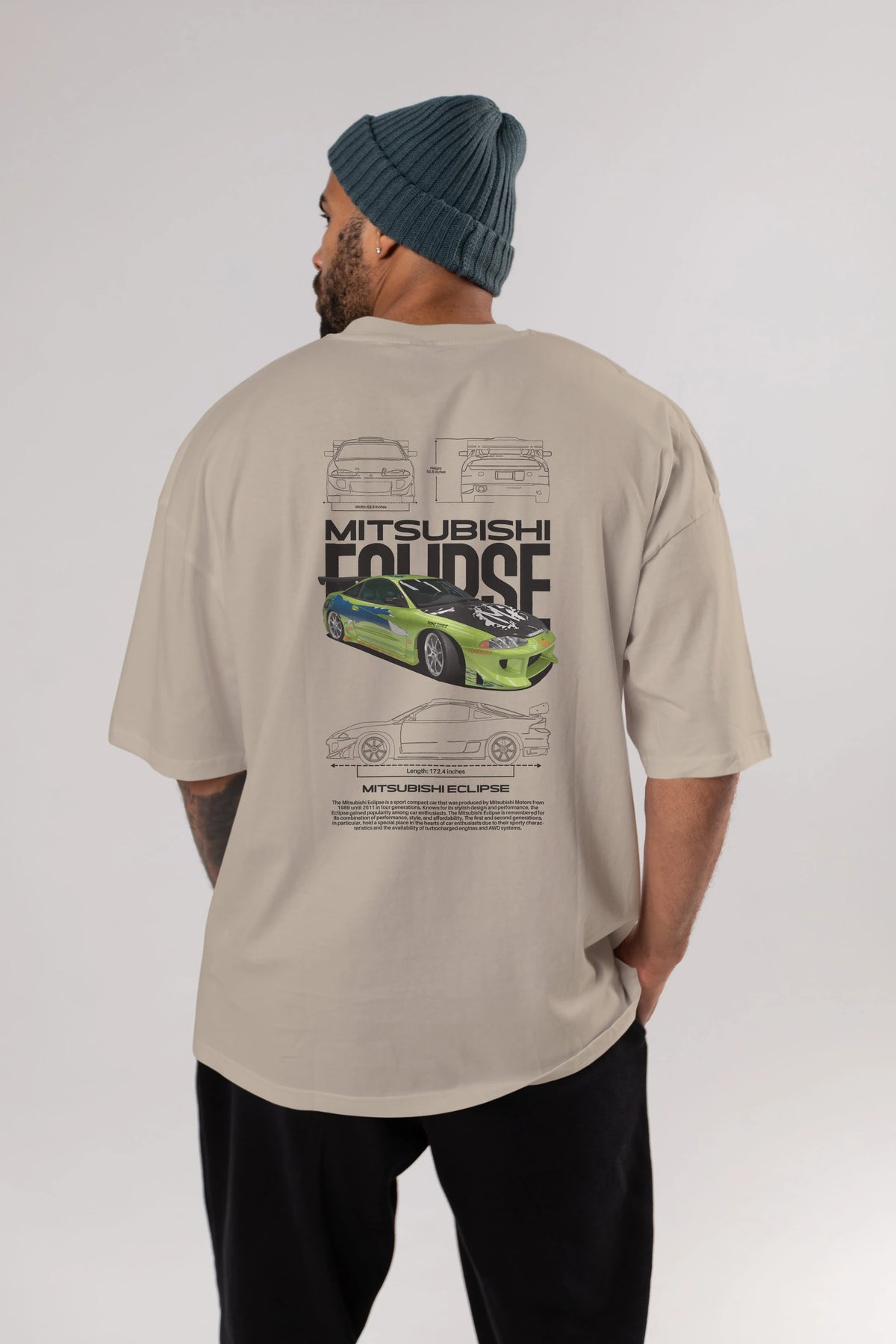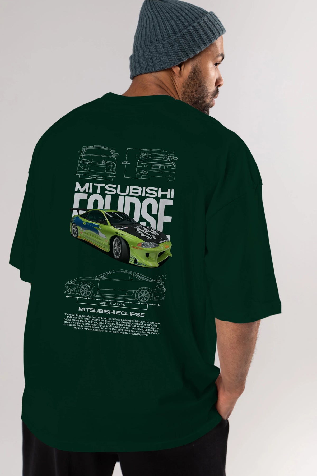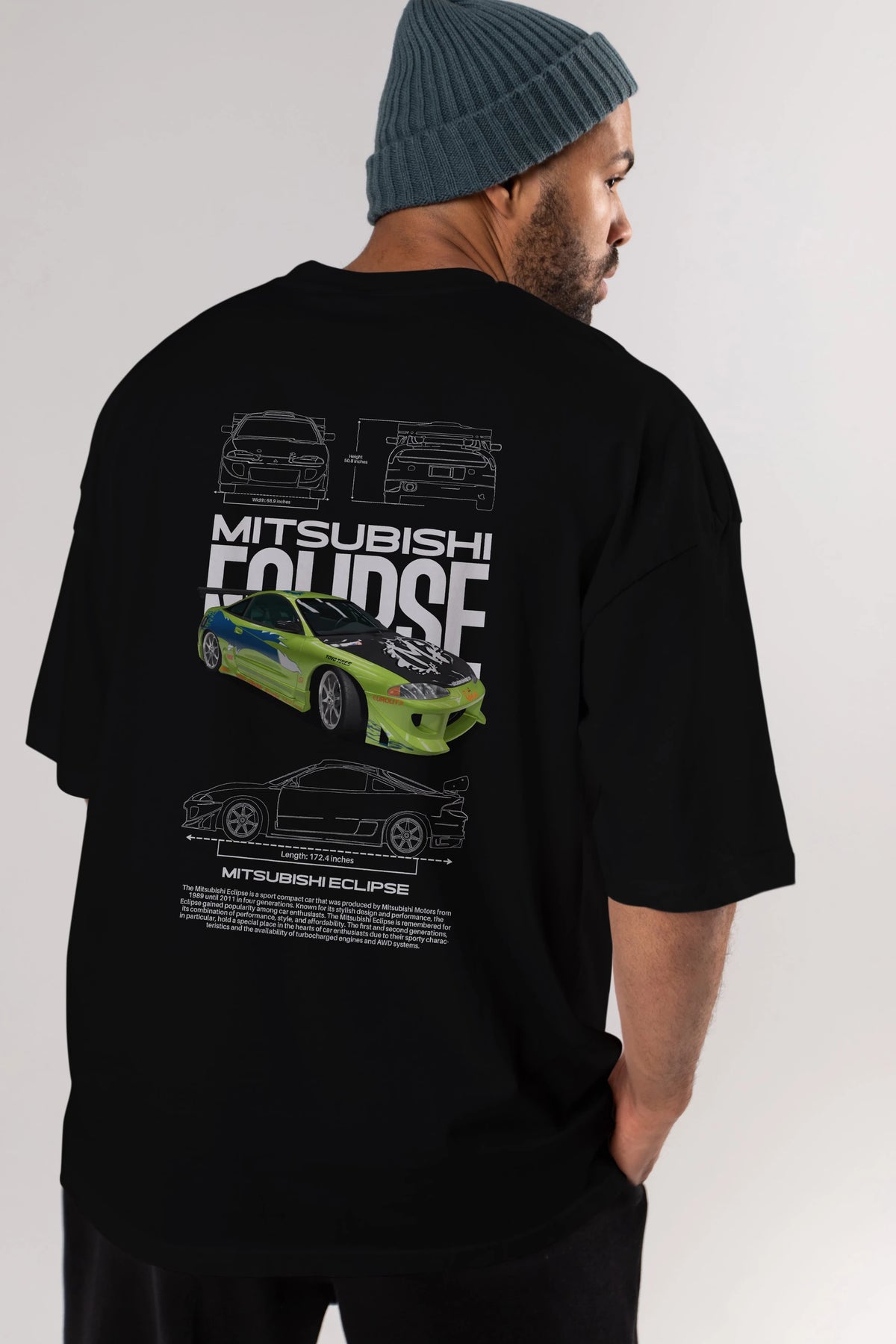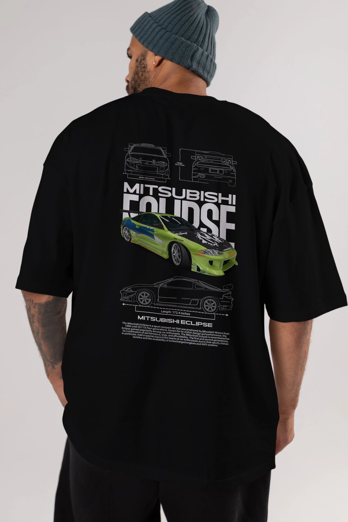 mitsubishi eclipse Arka Baskılı Oversize t-shirt Erkek Kadın Unisex %100 Pamuk Bisiklet Yaka tişort