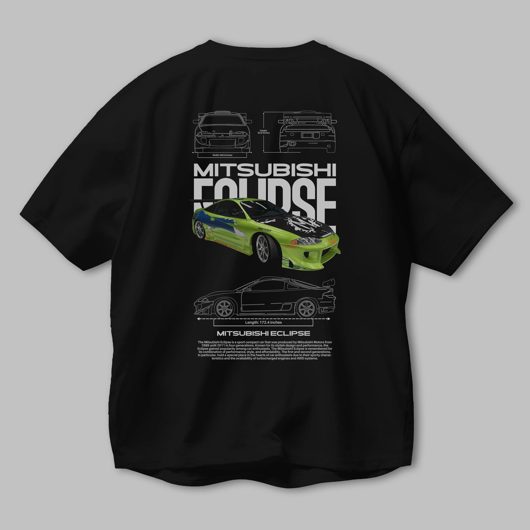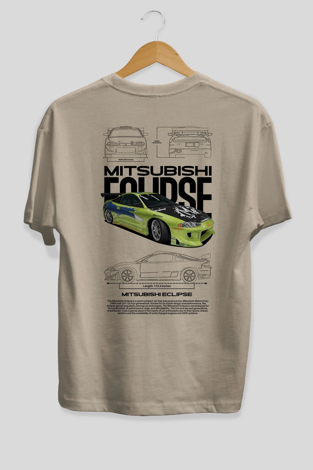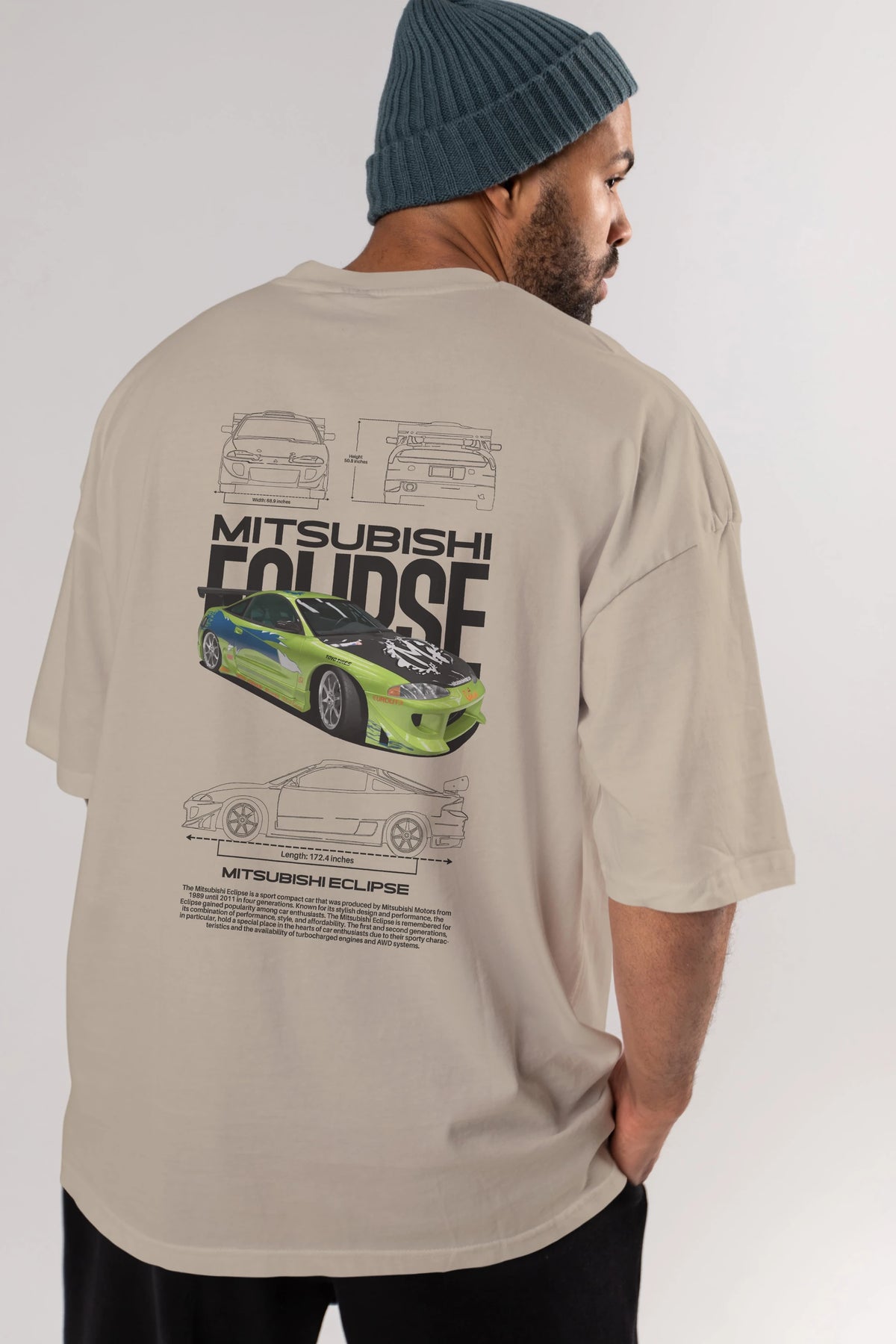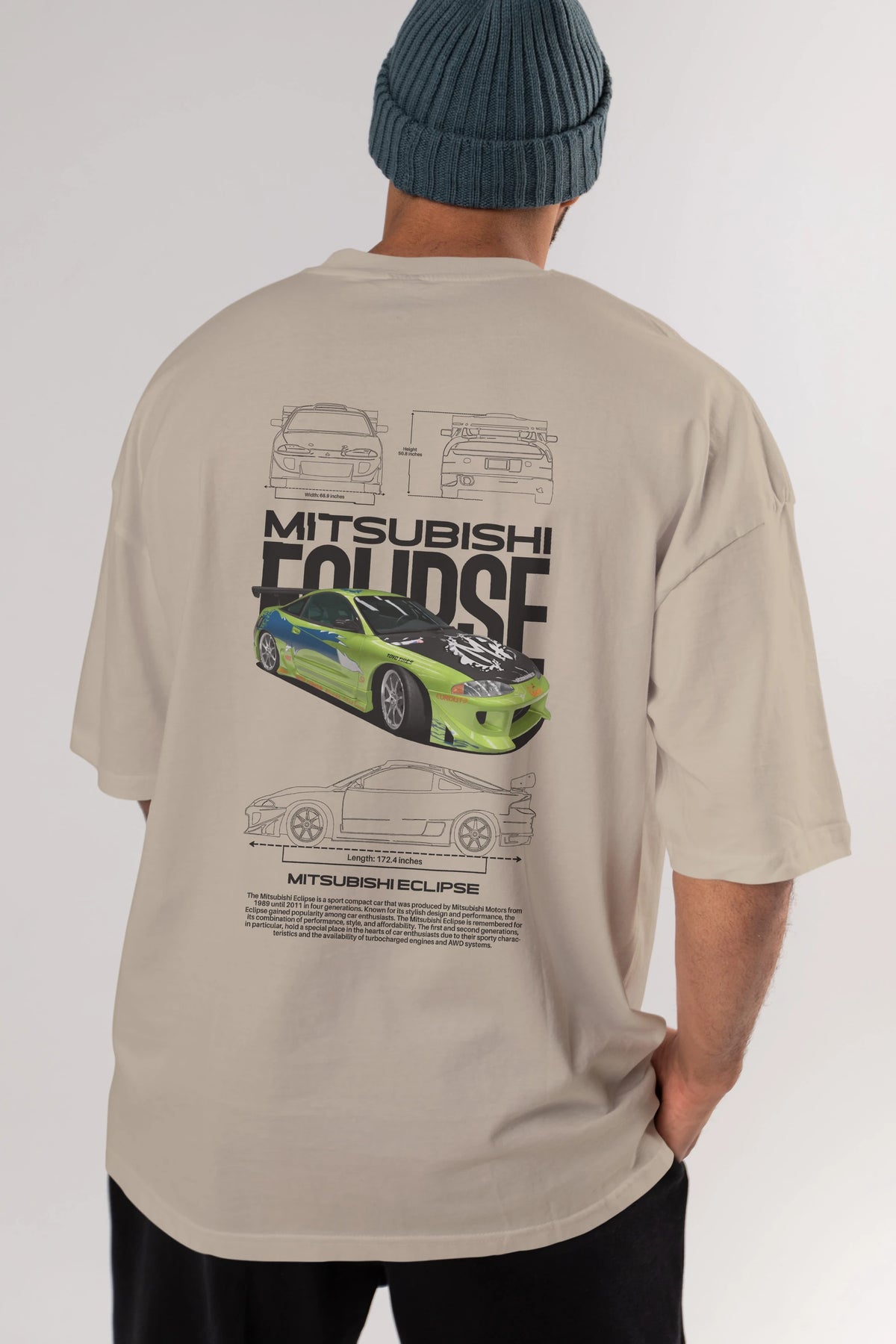 mitsubishi eclipse Arka Baskılı Oversize t-shirt Erkek Kadın Unisex %100 Pamuk Bisiklet Yaka tişort