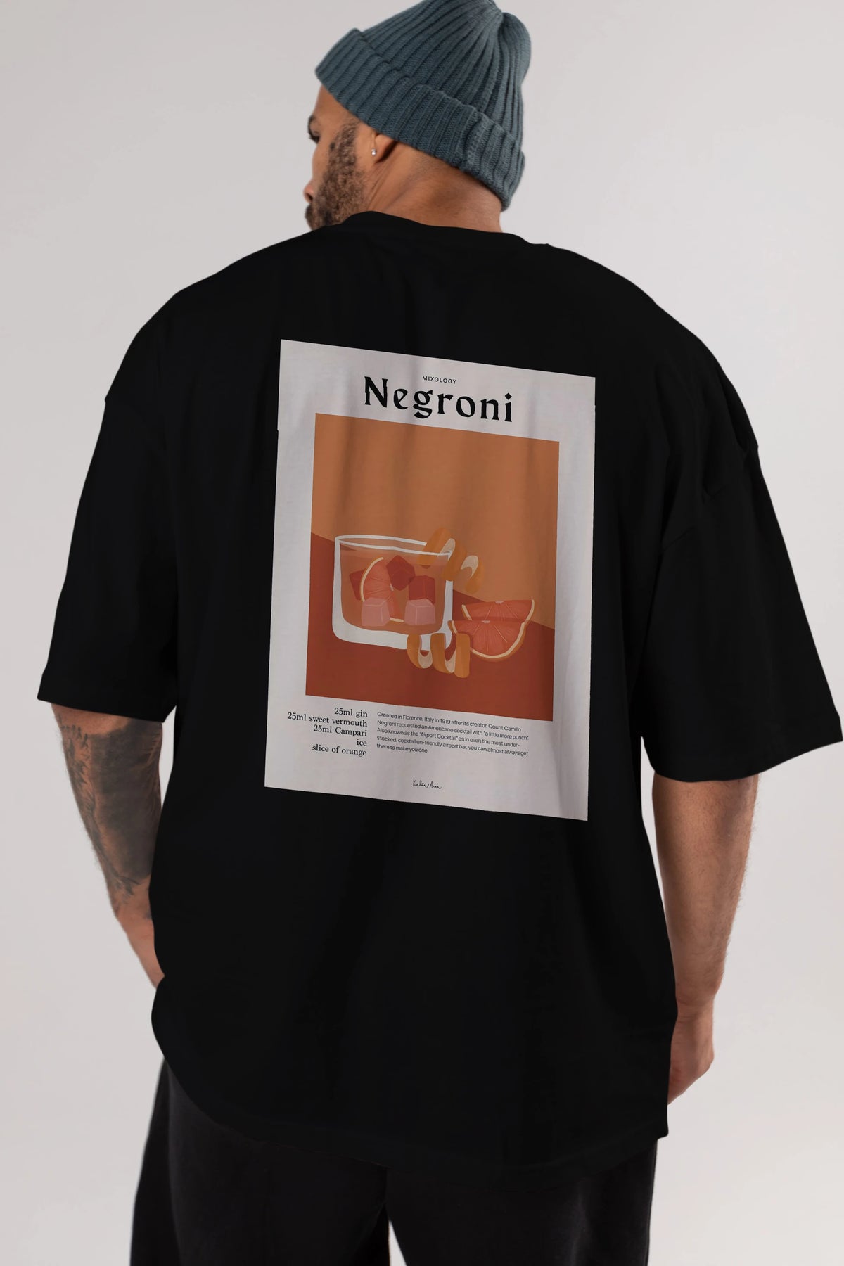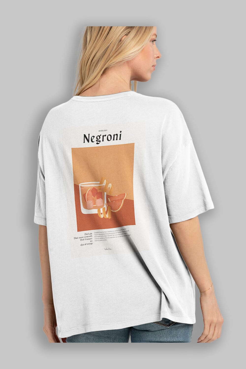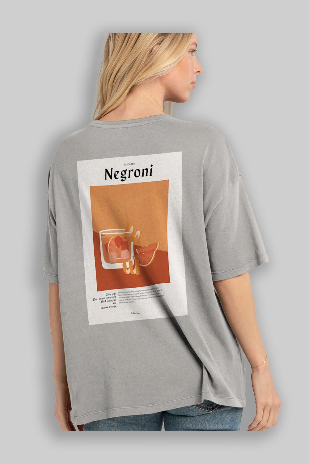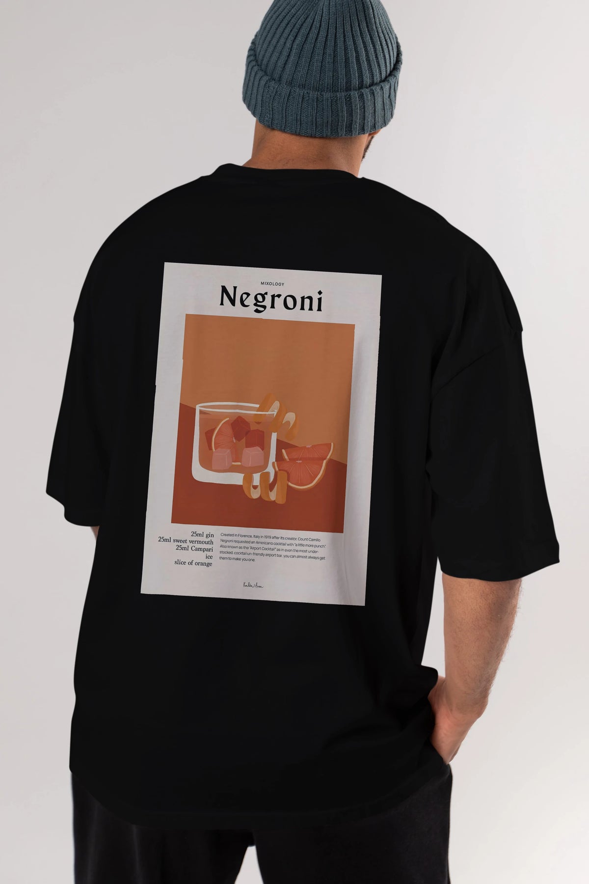 Mixology Negroni Arka Baskılı Oversize t-shirt Erkek Kadın Unisex %100 Pamuk Bisiklet Yaka tişort