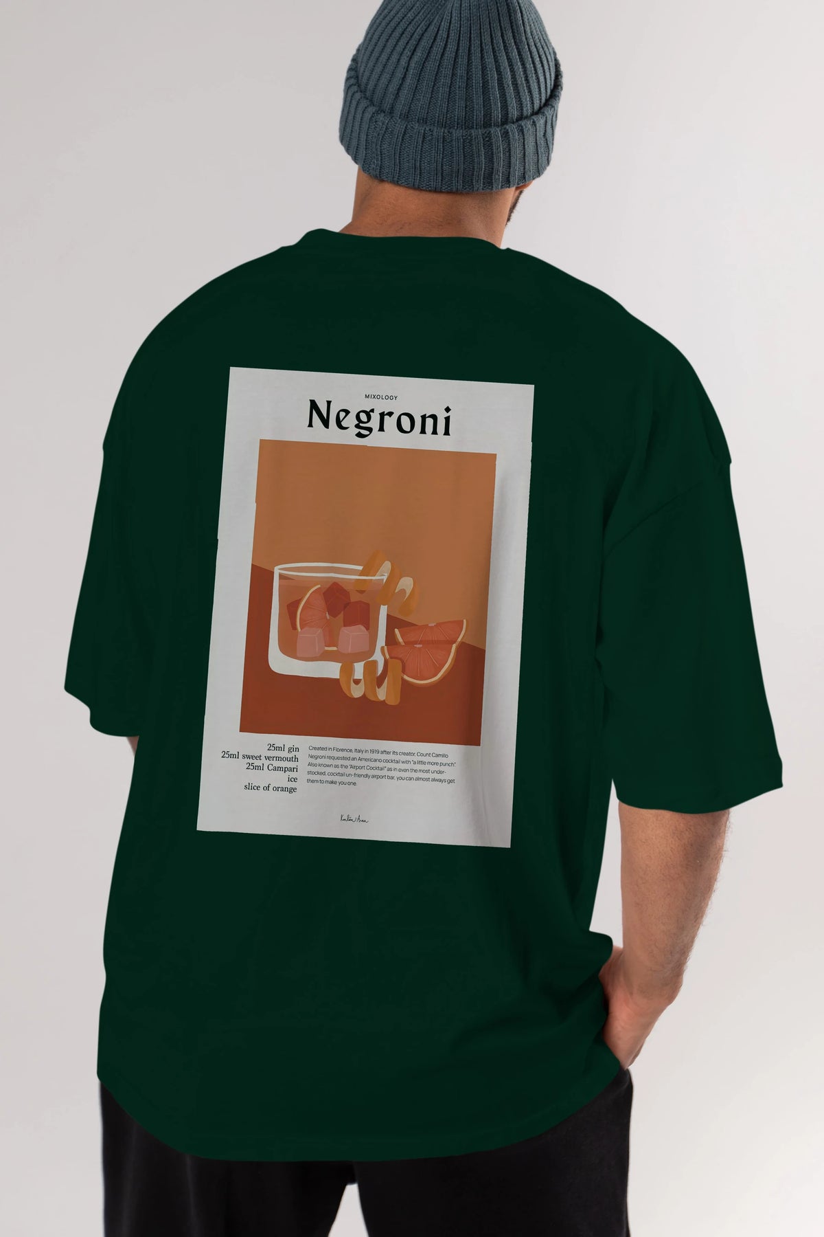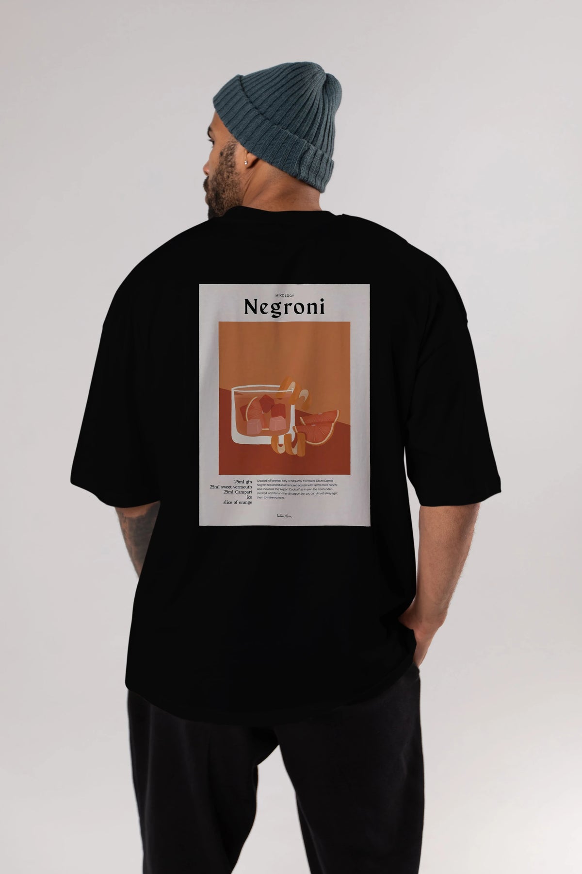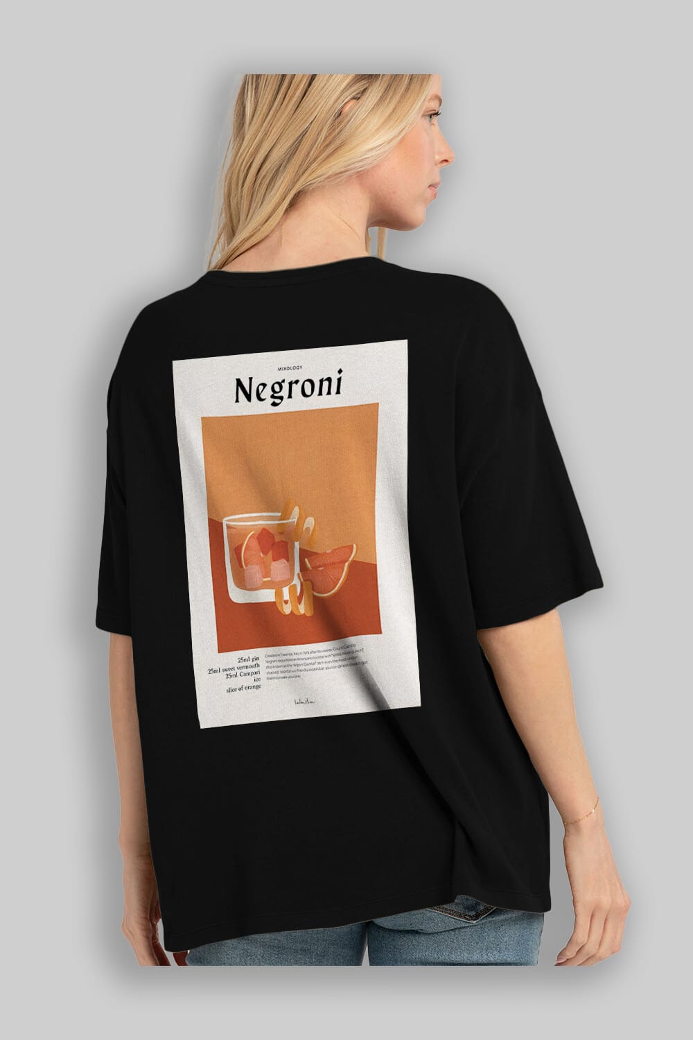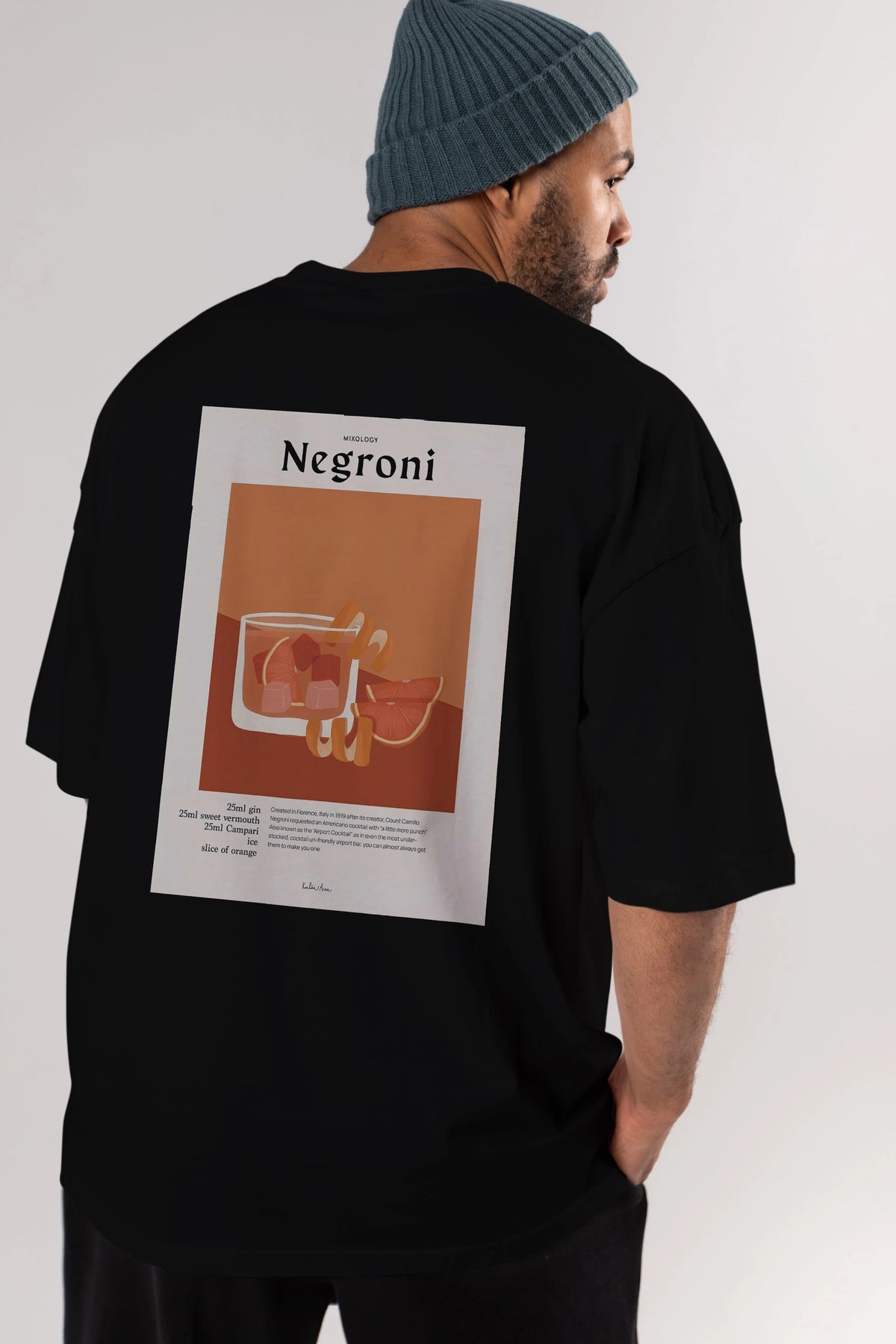Mixology Negroni Arka Baskılı Oversize t-shirt Erkek Kadın Unisex %100 Pamuk Bisiklet Yaka tişort