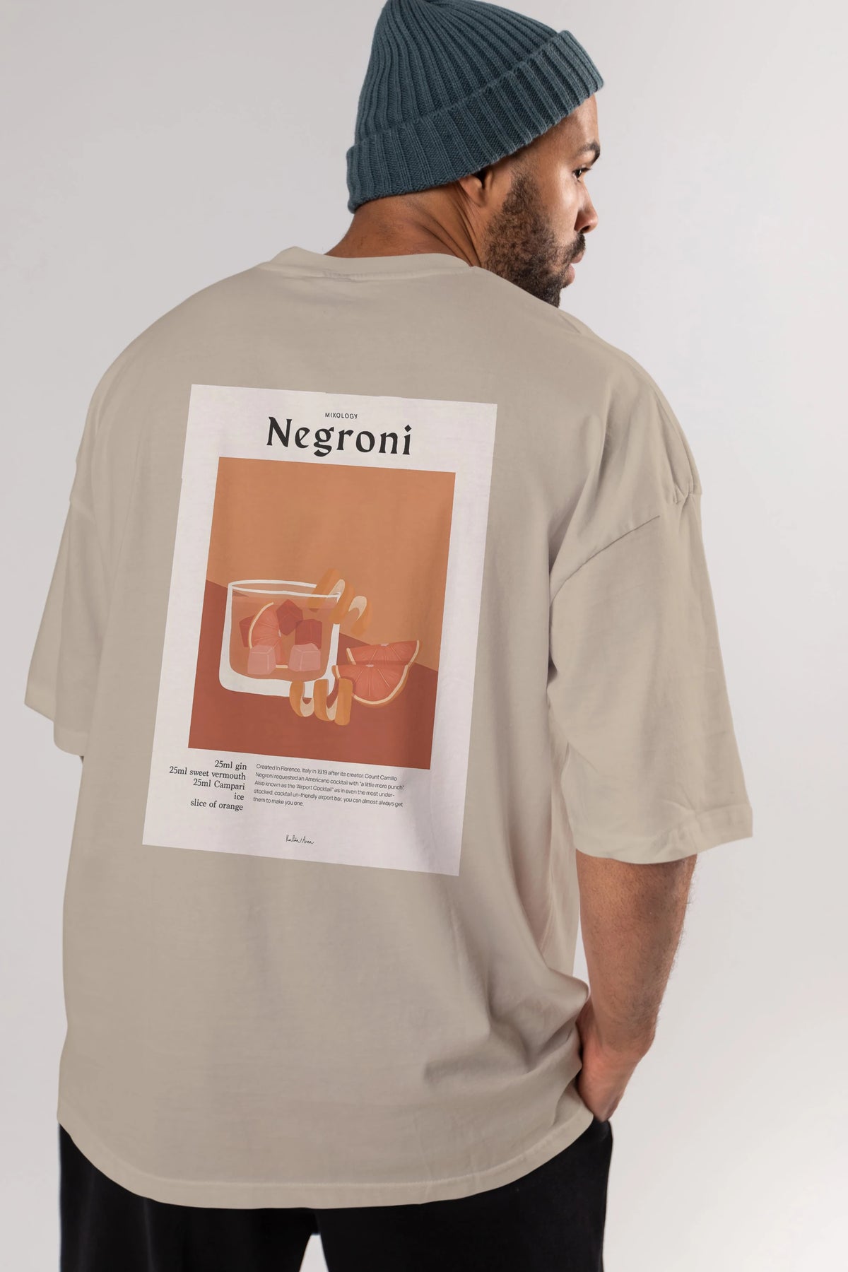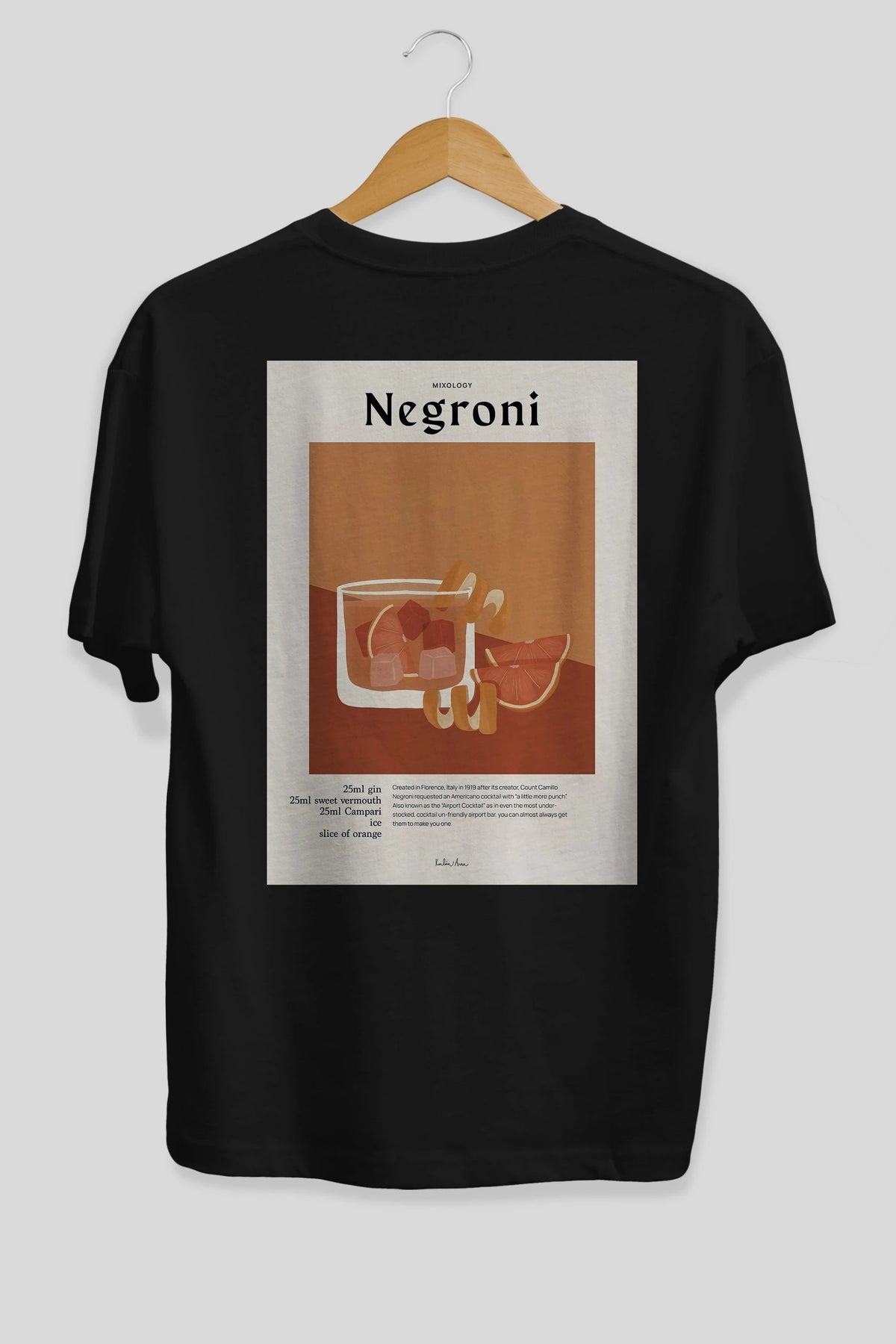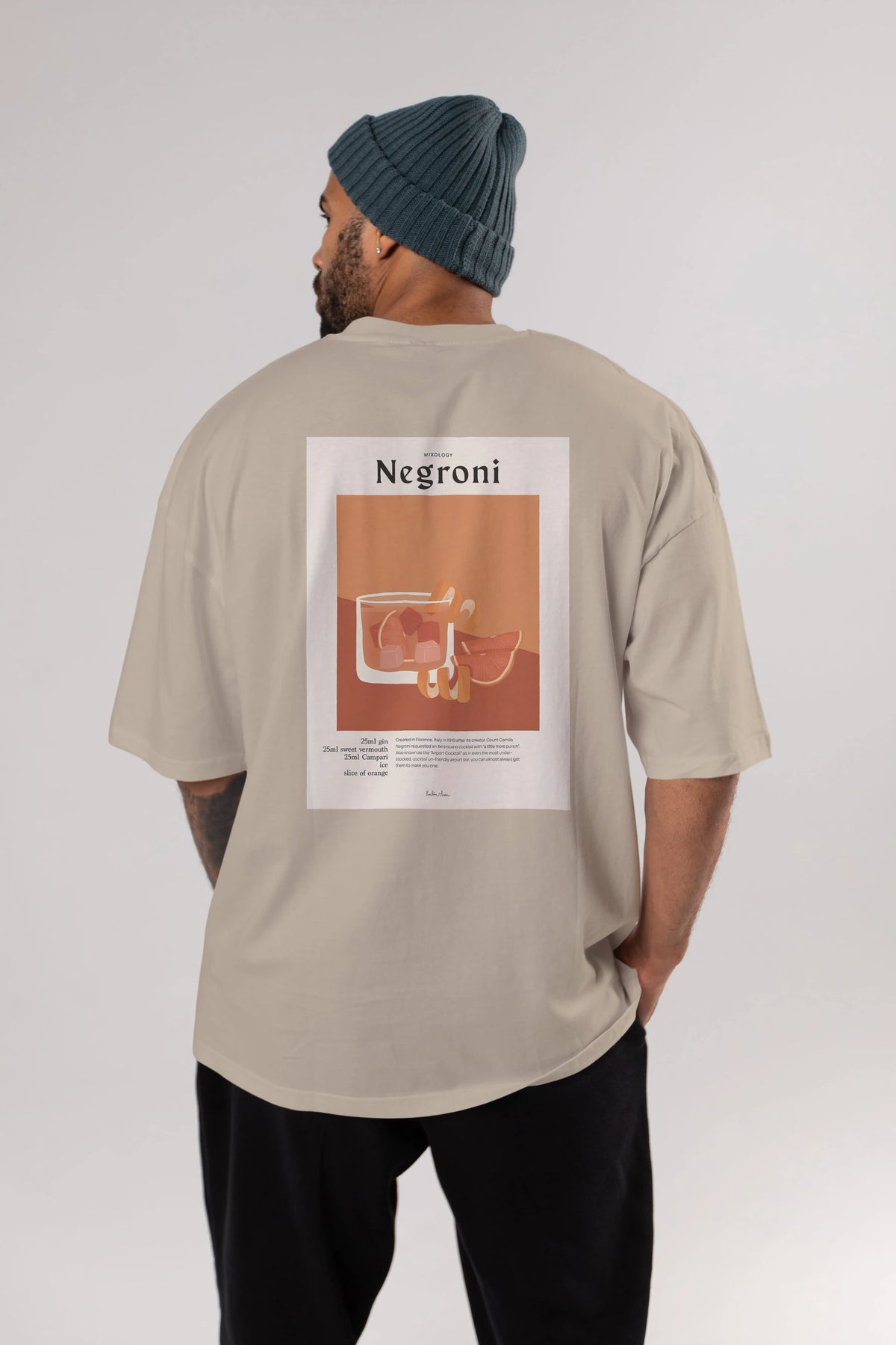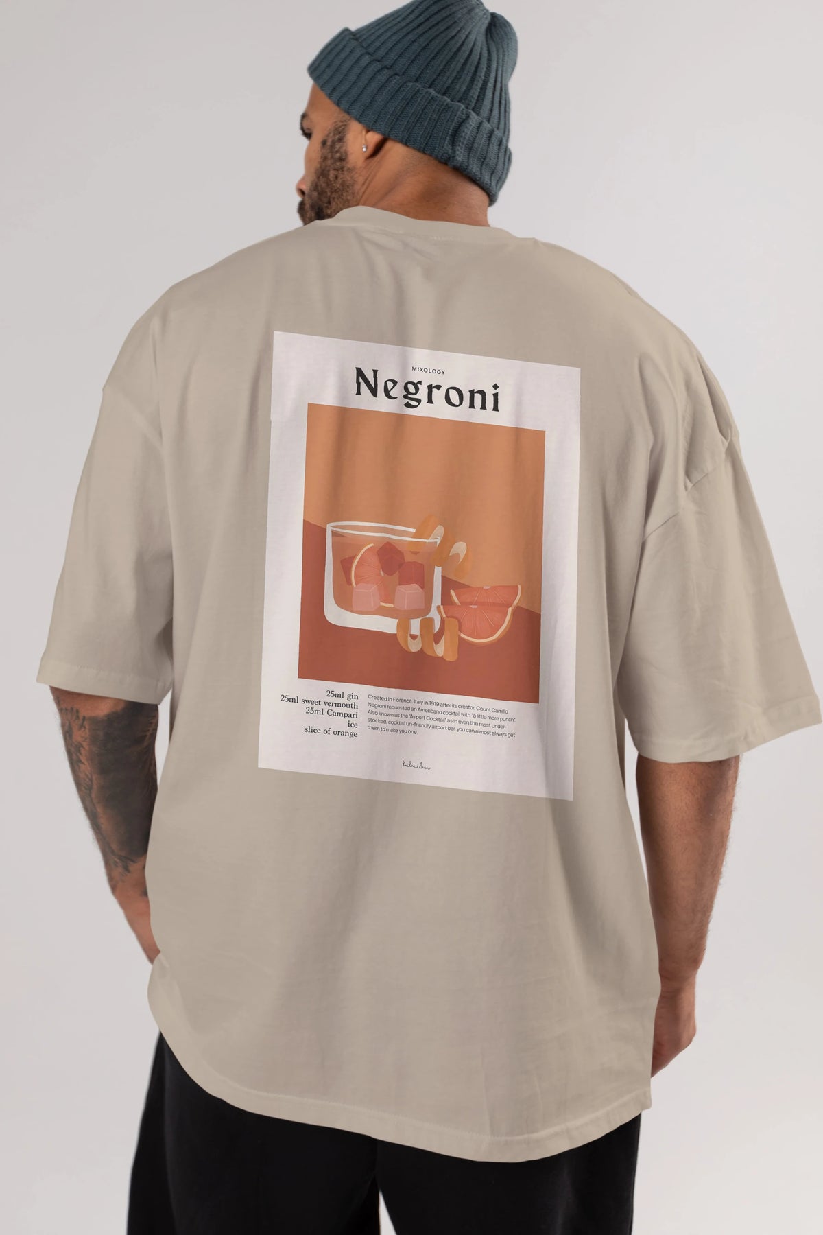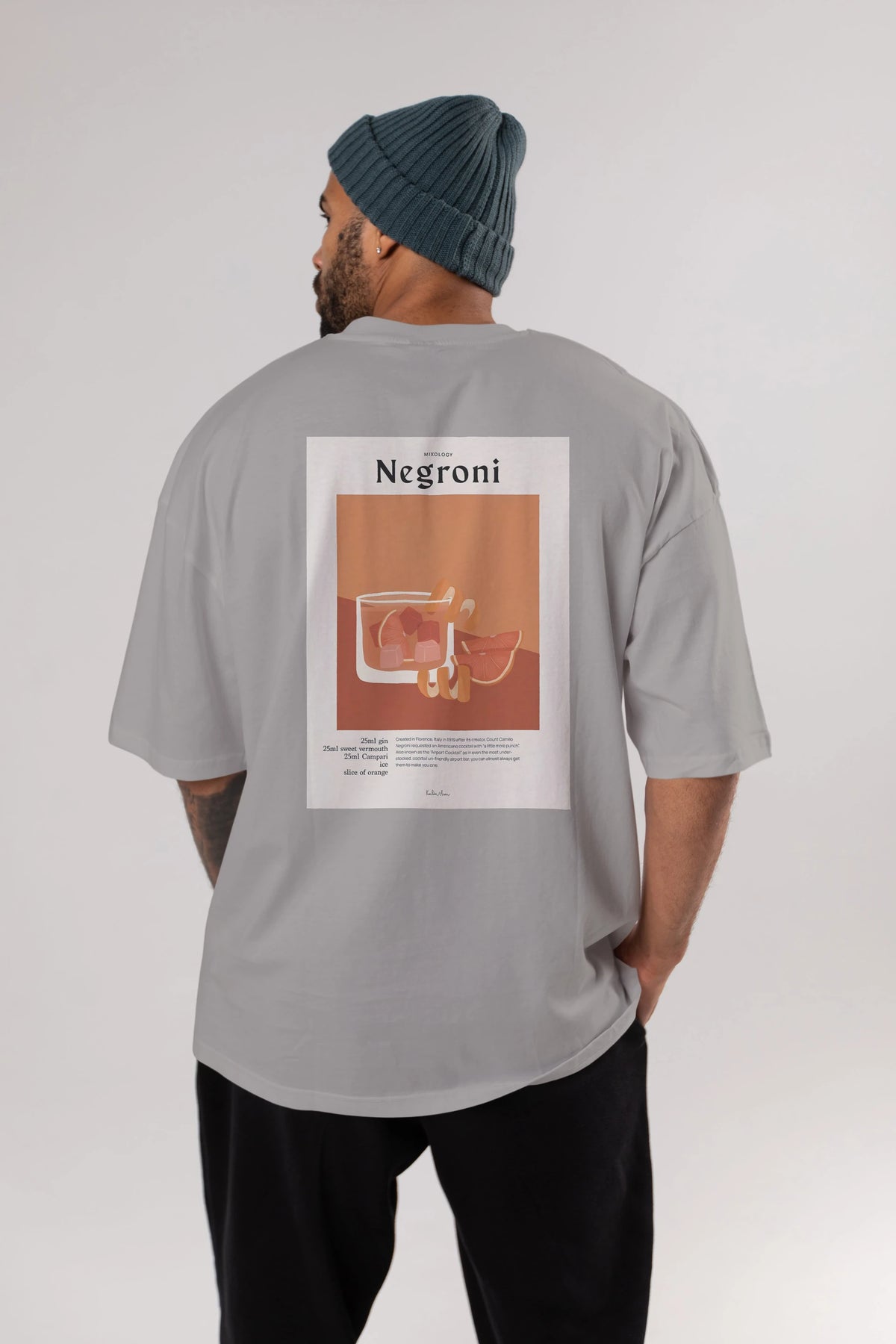 Mixology Negroni Arka Baskılı Oversize t-shirt Erkek Kadın Unisex %100 Pamuk Bisiklet Yaka tişort