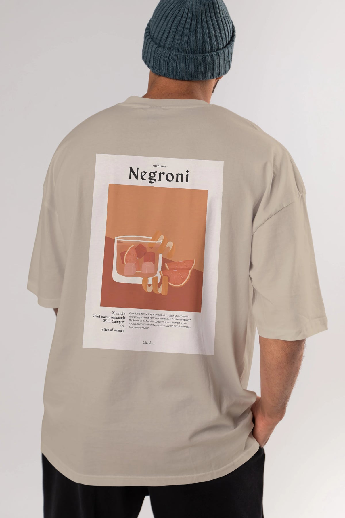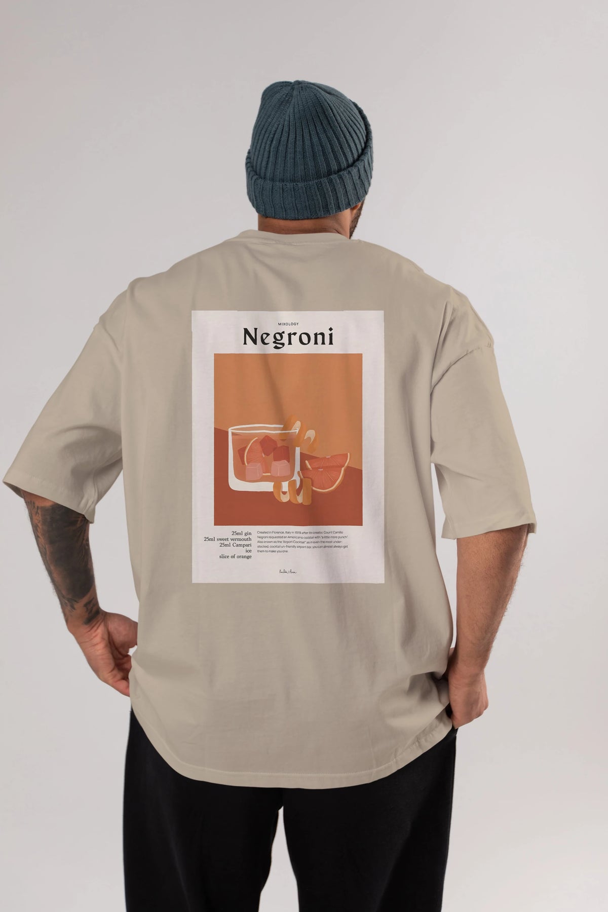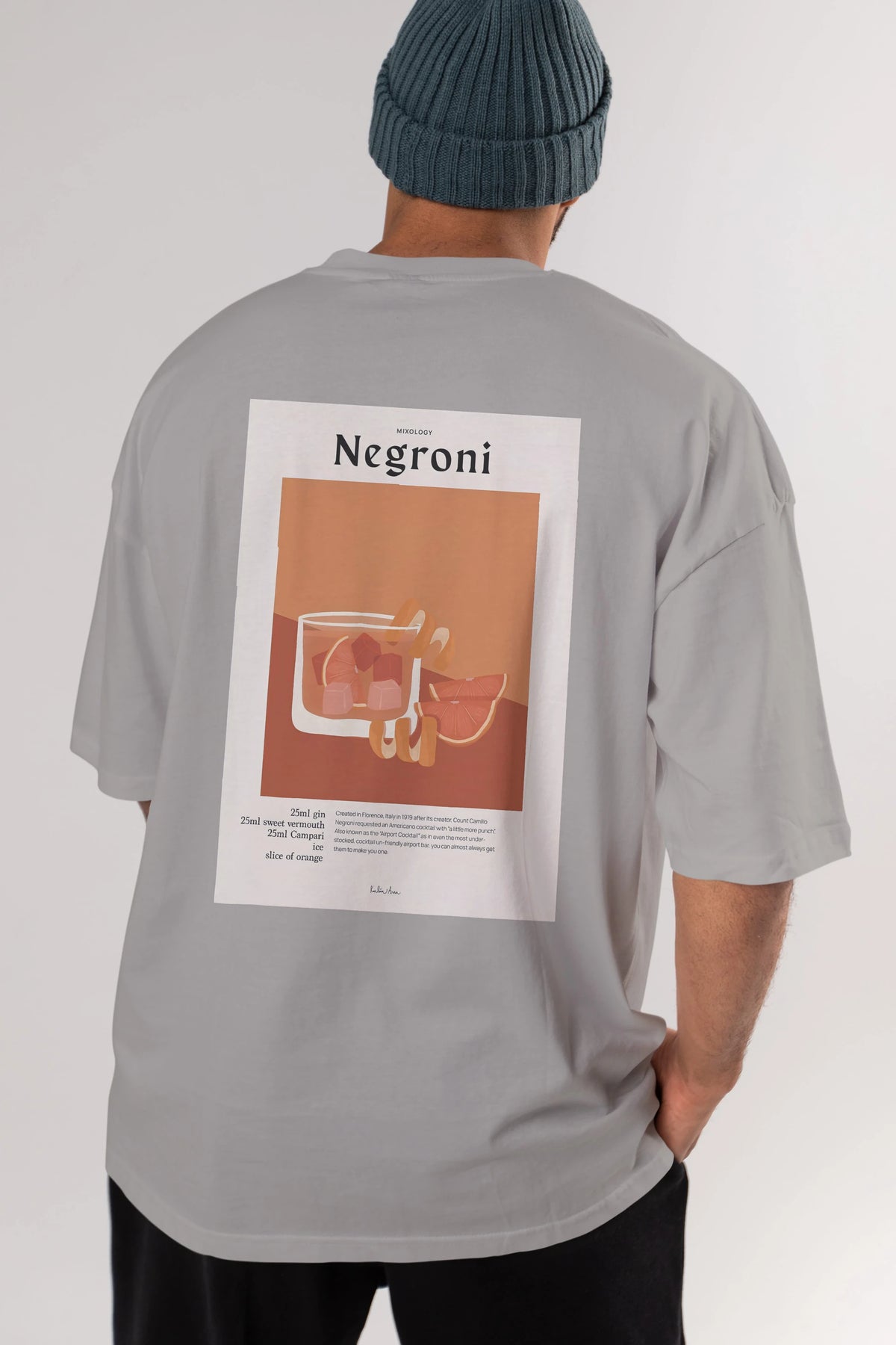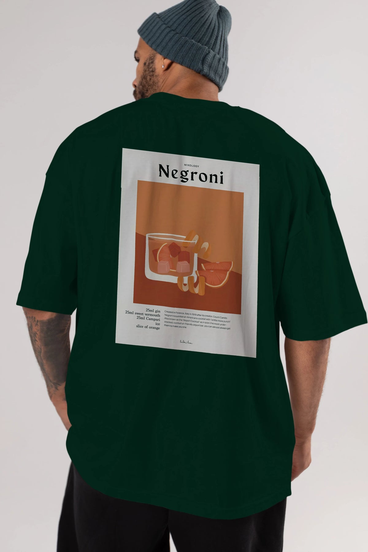 Mixology Negroni Arka Baskılı Oversize t-shirt Erkek Kadın Unisex %100 Pamuk Bisiklet Yaka tişort