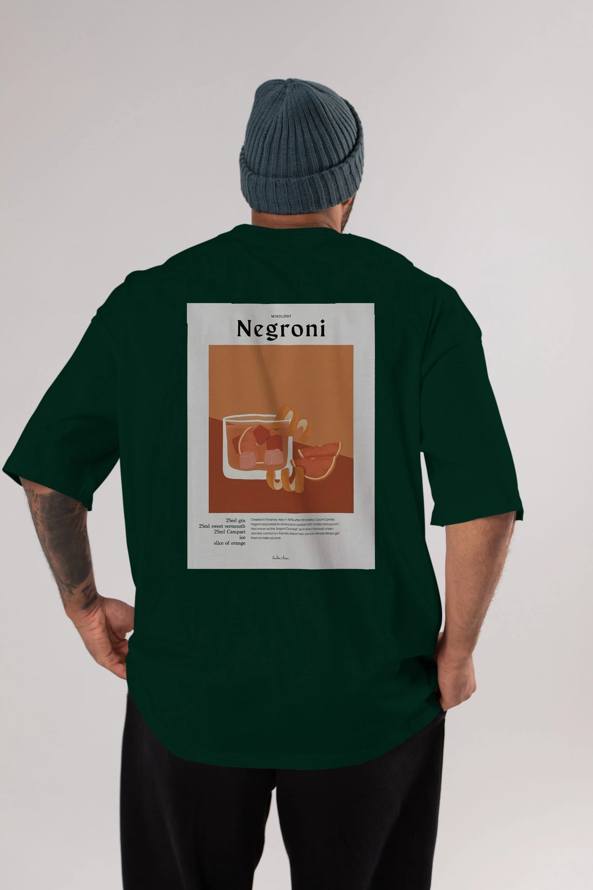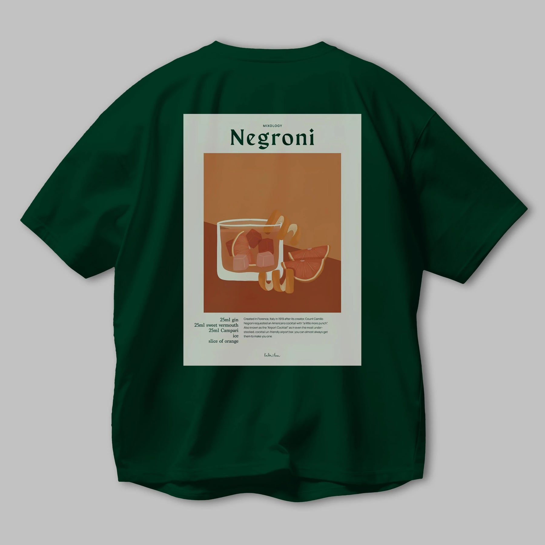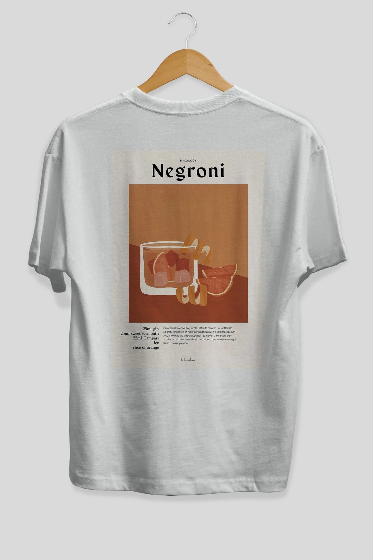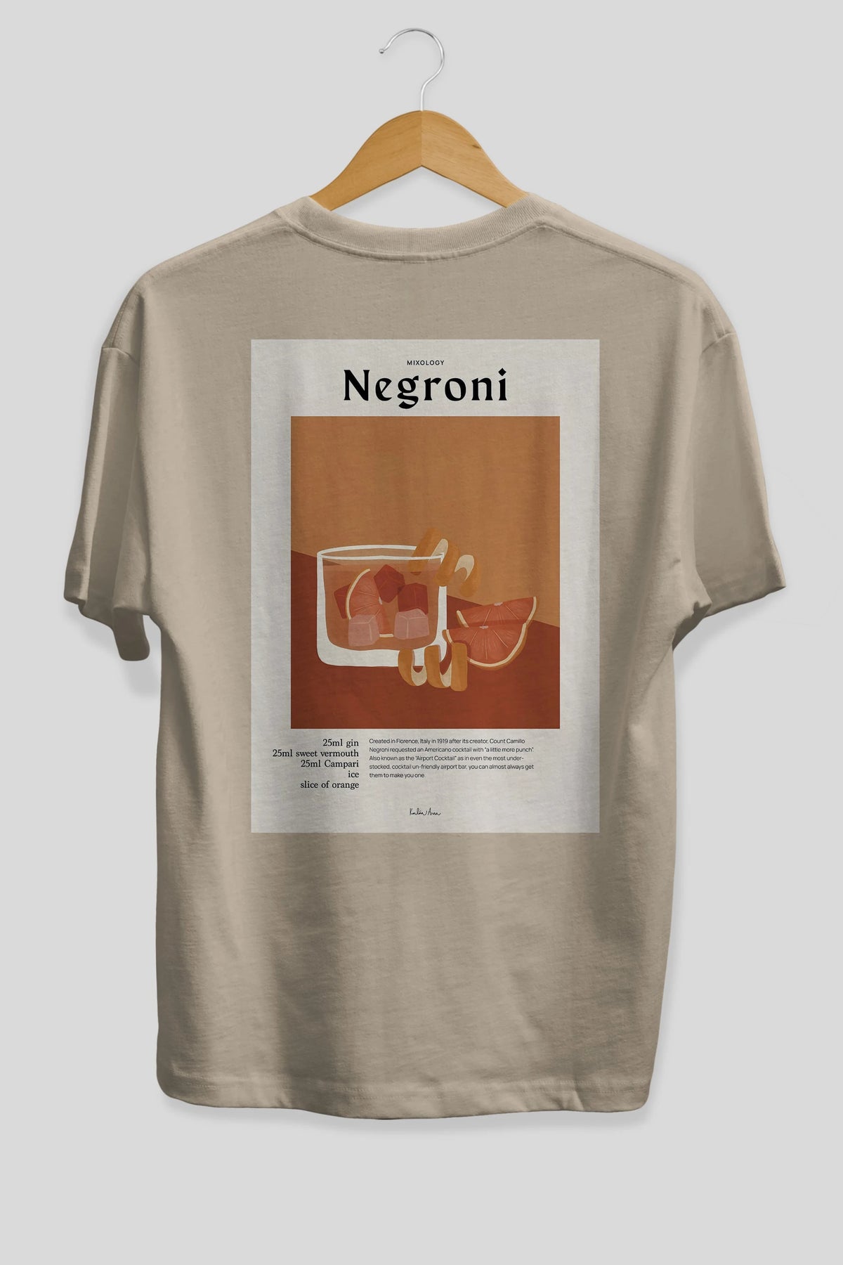 Mixology Negroni Arka Baskılı Oversize t-shirt Erkek Kadın Unisex %100 Pamuk Bisiklet Yaka tişort