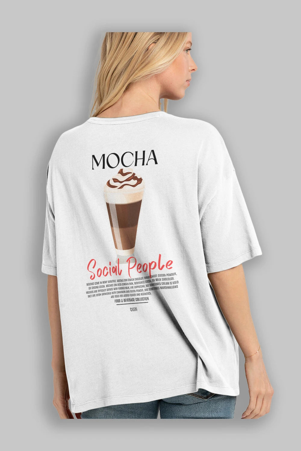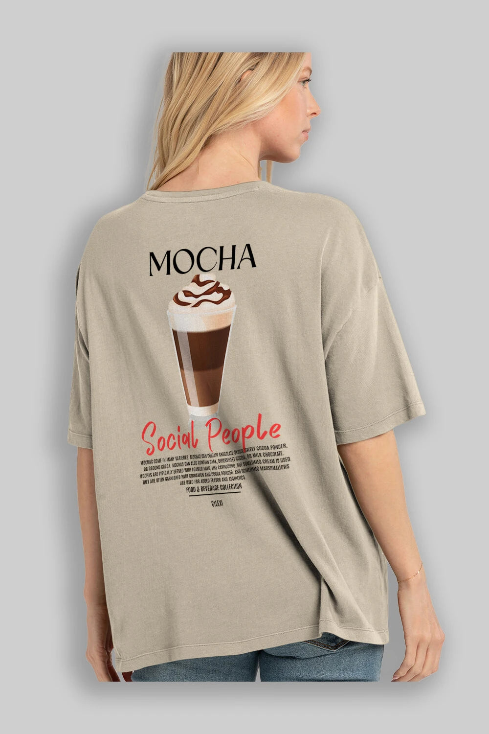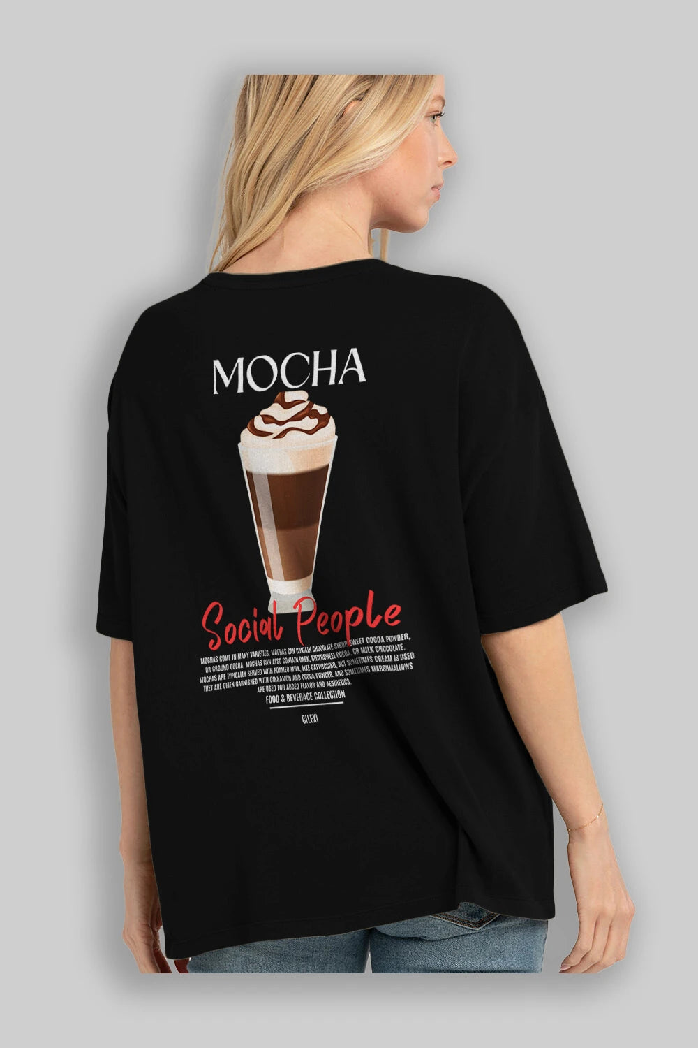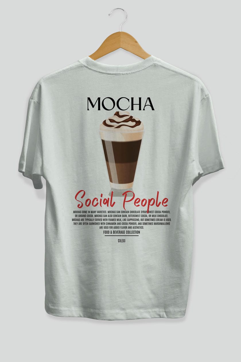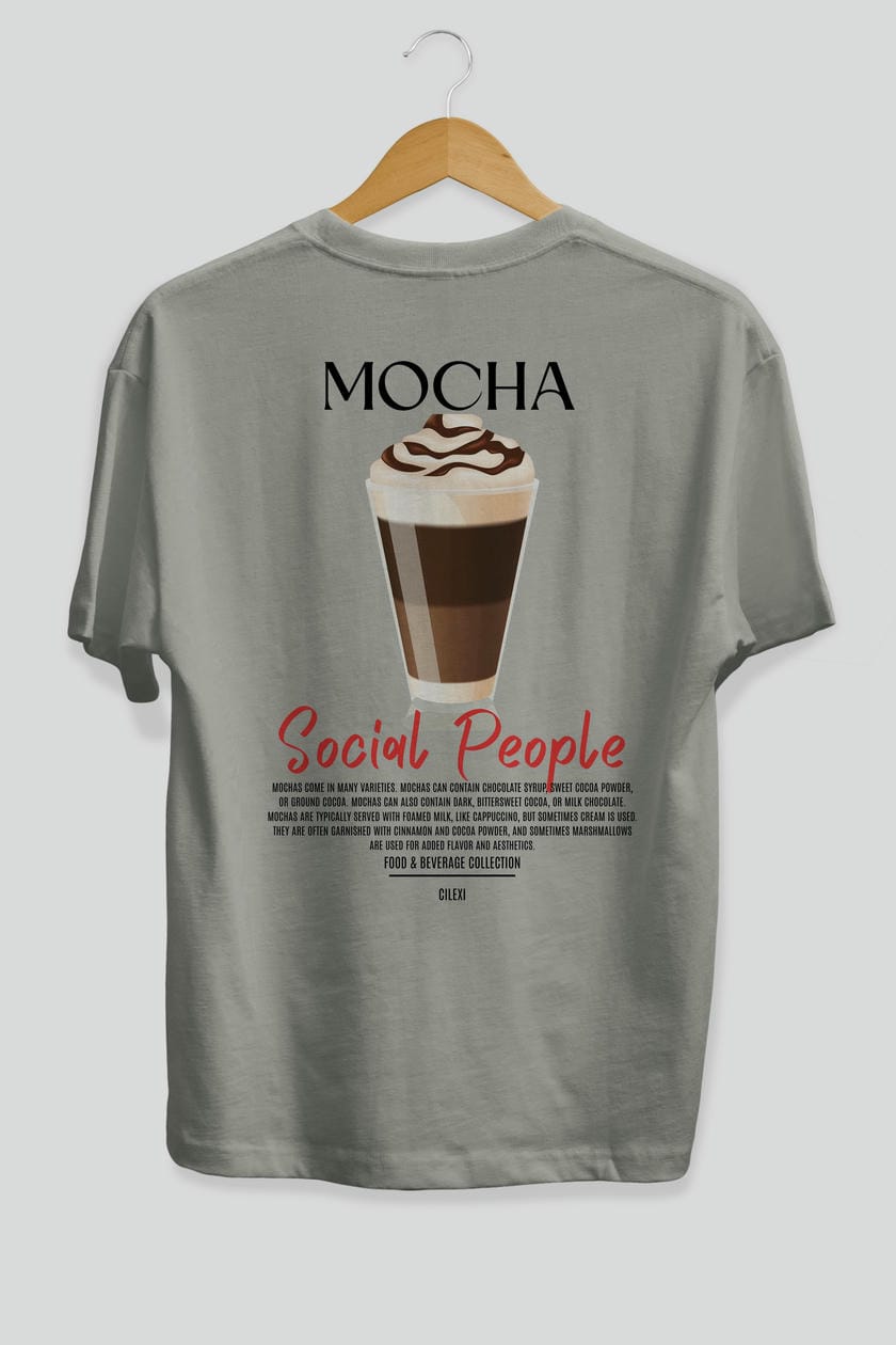 Mocha Kokteyl Serisi Baskılı Oversize t-shirt Erkek Kadın Unisex %100 Pamuk Bisiklet Yaka tişort