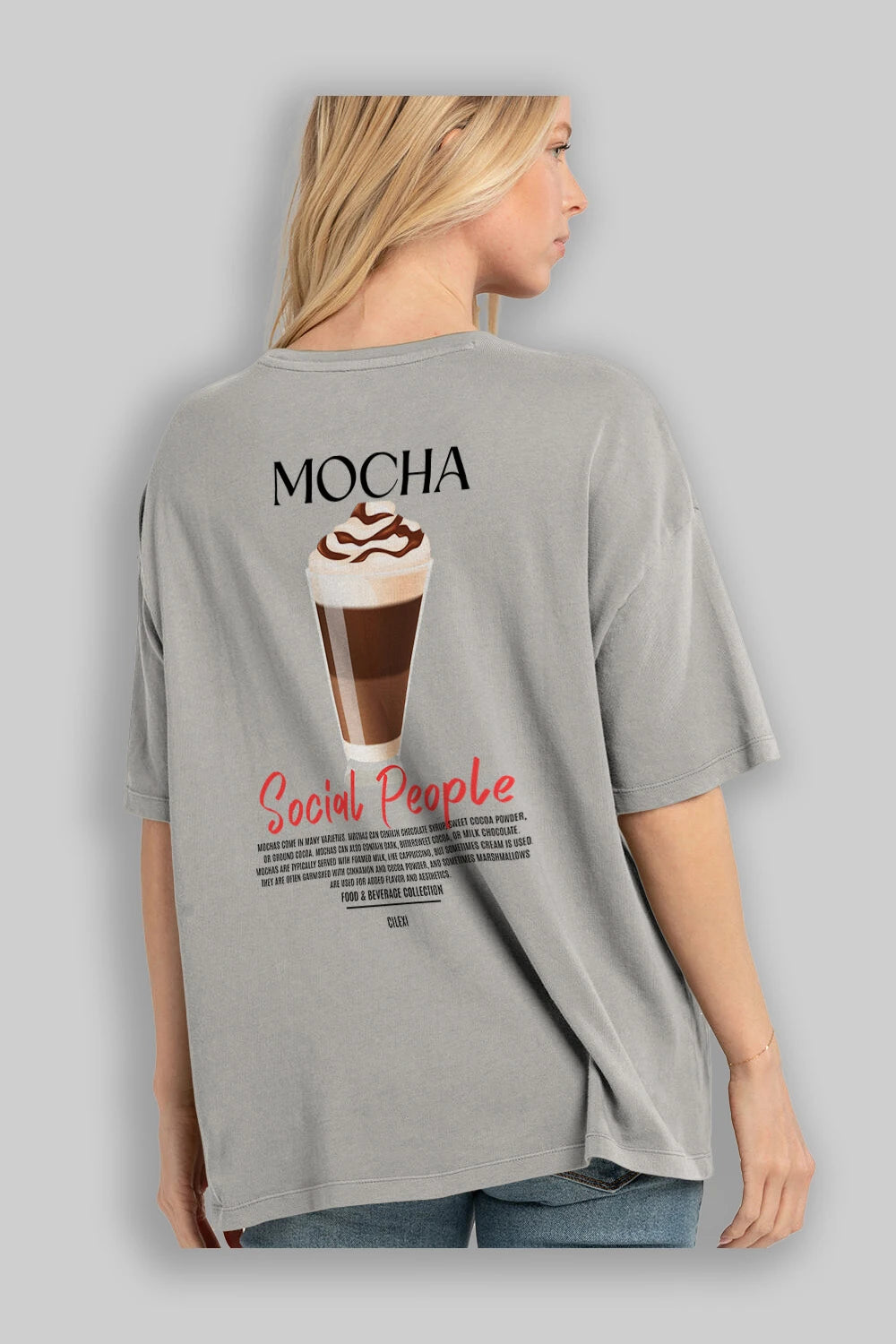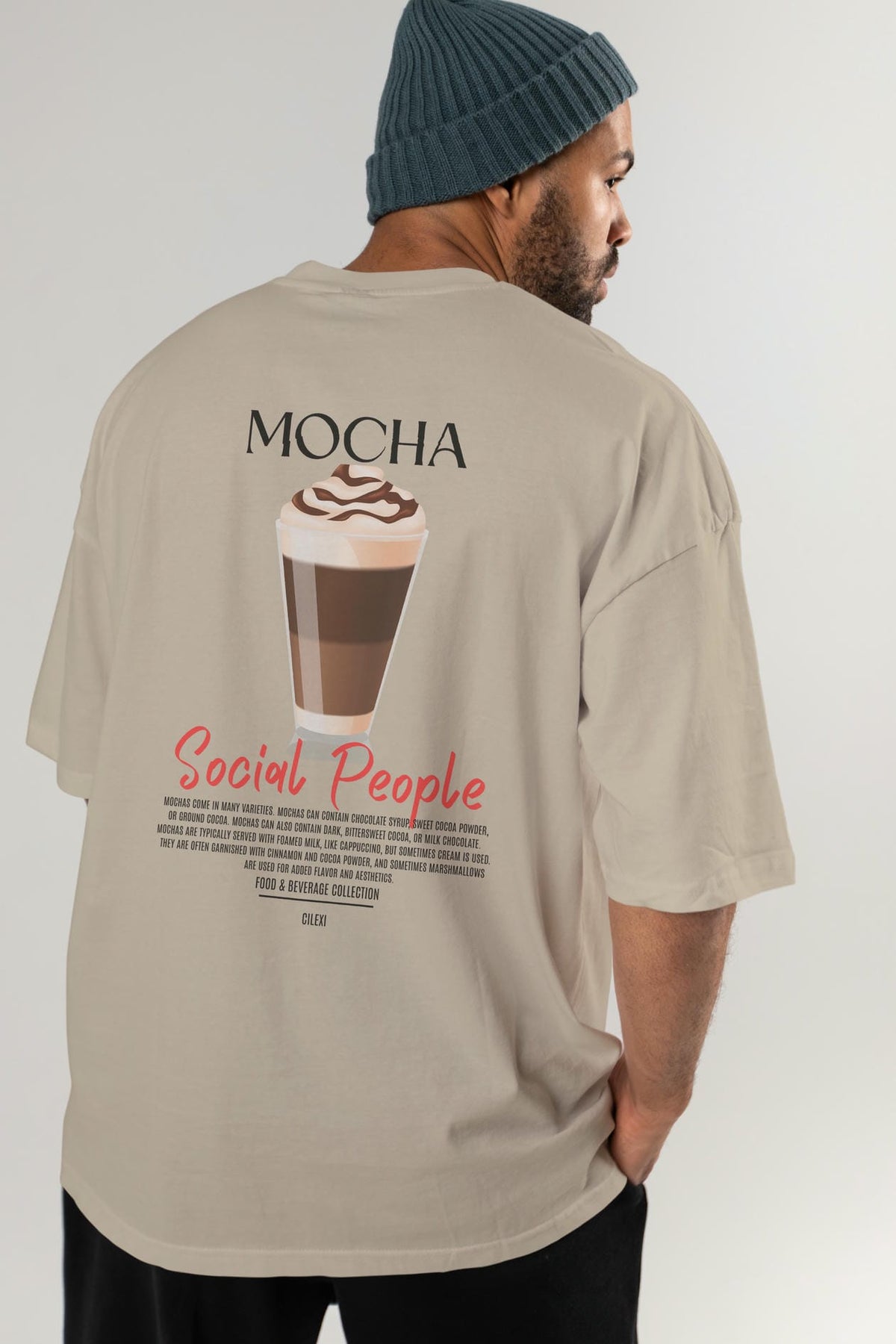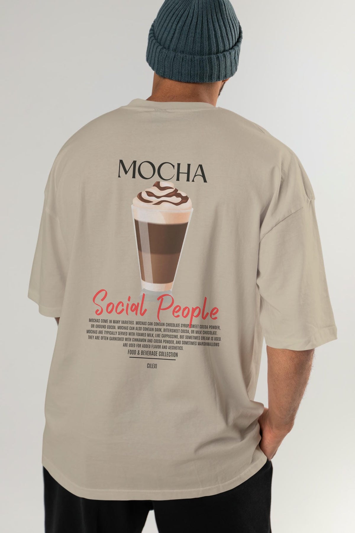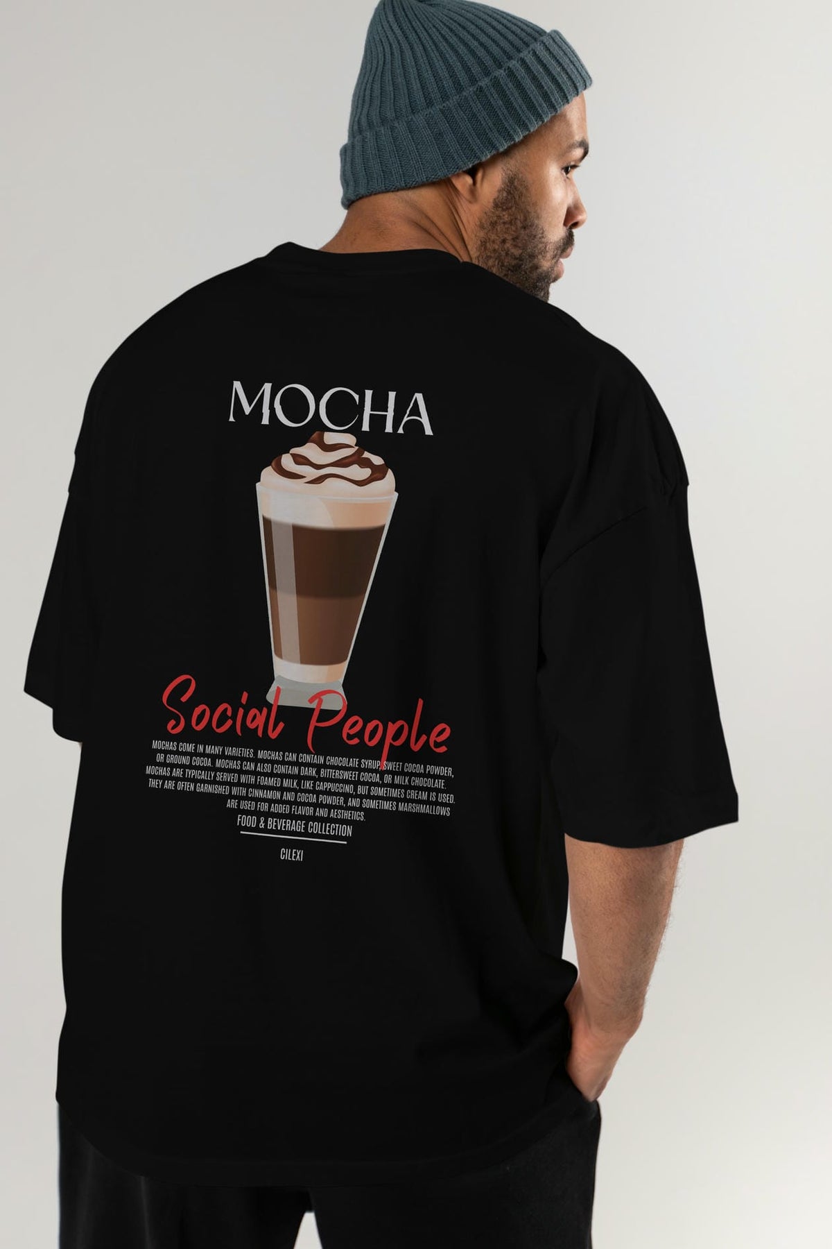 Mocha Kokteyl Serisi Baskılı Oversize t-shirt Erkek Kadın Unisex %100 Pamuk Bisiklet Yaka tişort
