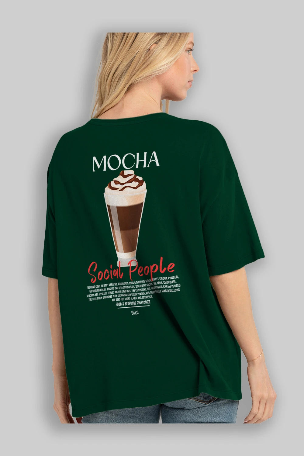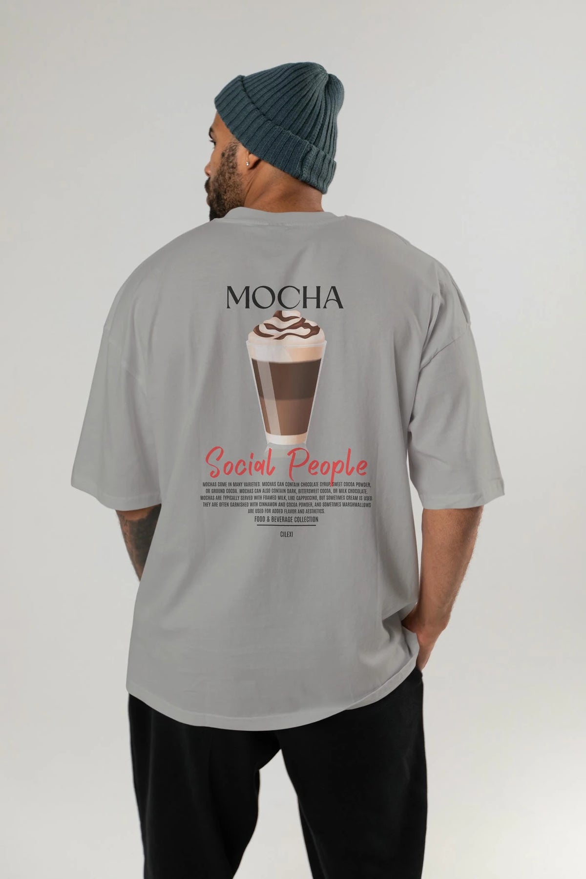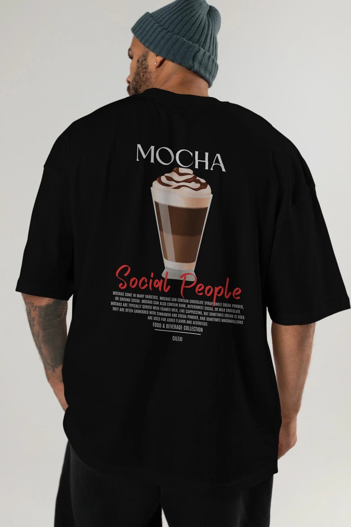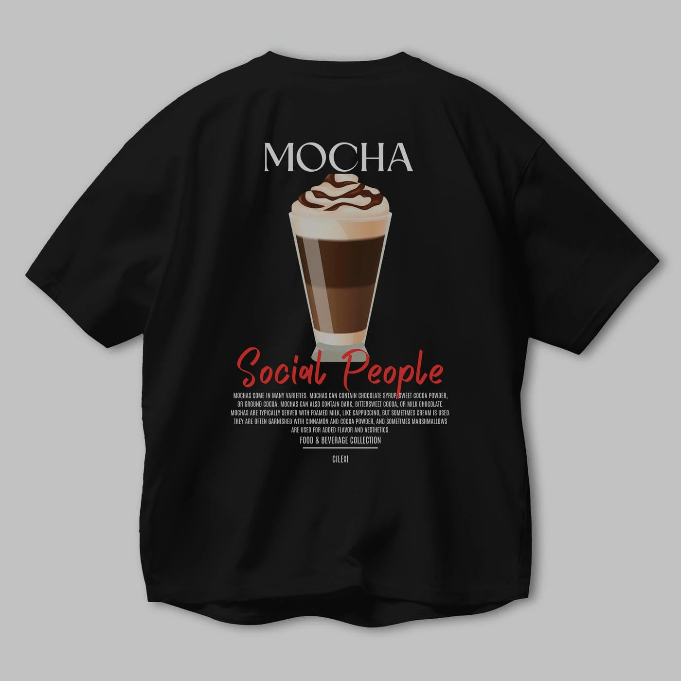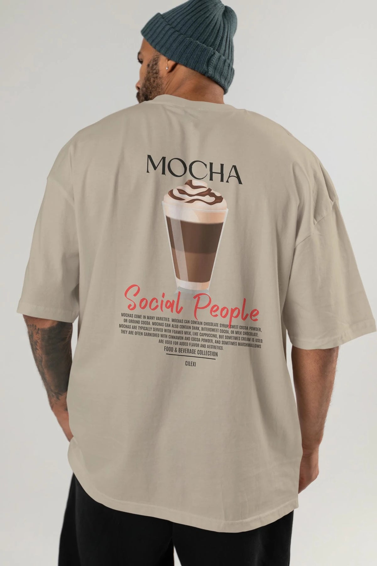 Mocha Kokteyl Serisi Baskılı Oversize t-shirt Erkek Kadın Unisex %100 Pamuk Bisiklet Yaka tişort