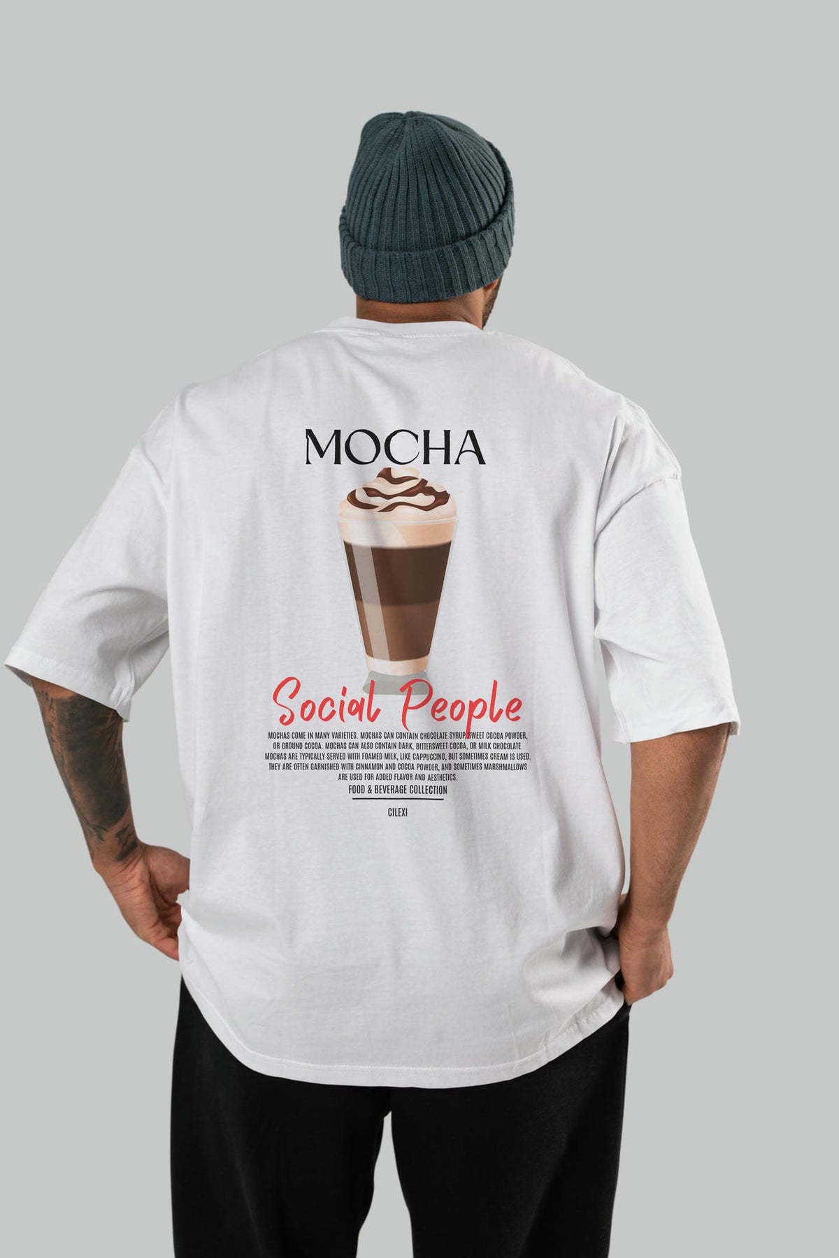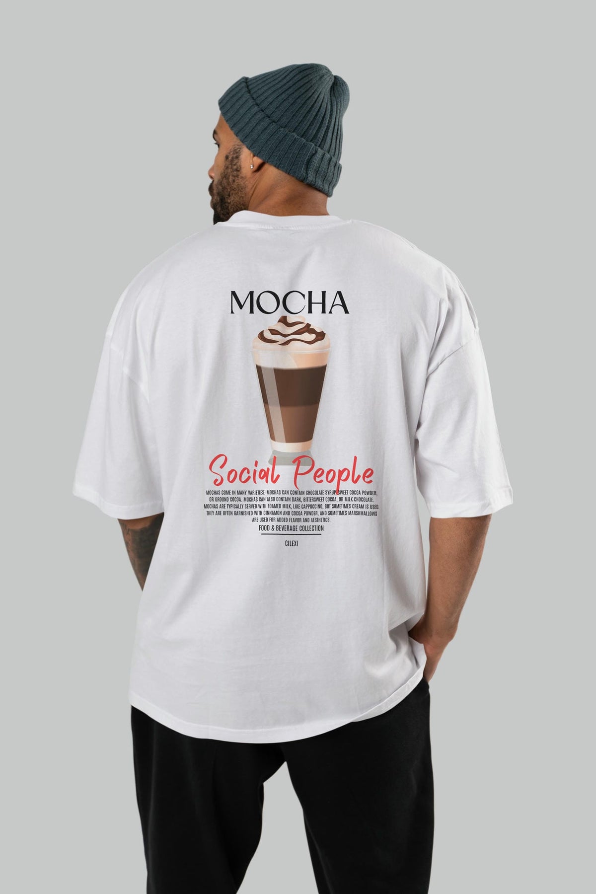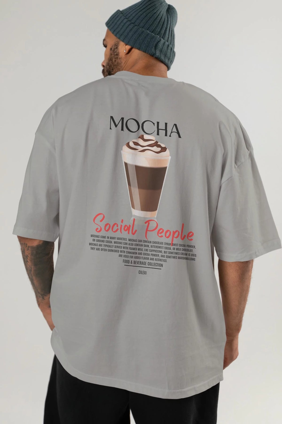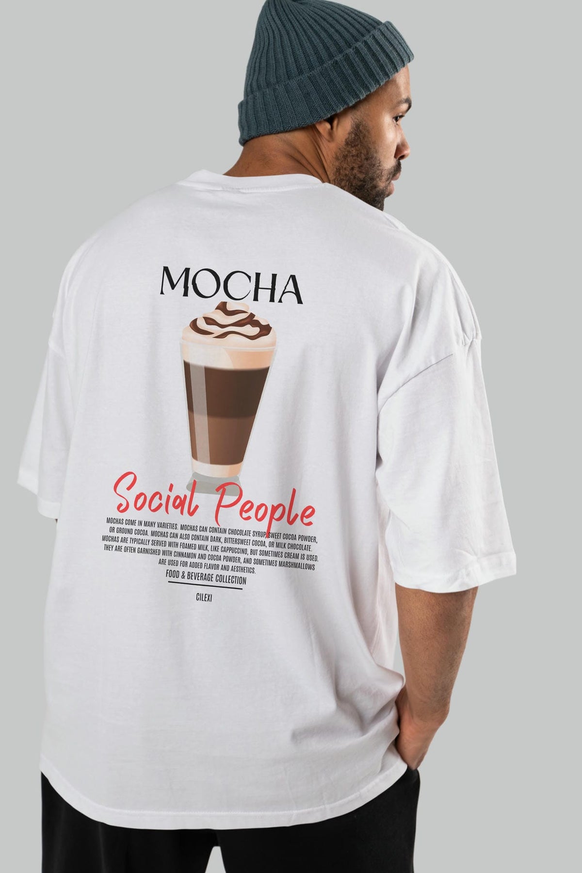 Mocha Kokteyl Serisi Baskılı Oversize t-shirt Erkek Kadın Unisex %100 Pamuk Bisiklet Yaka tişort