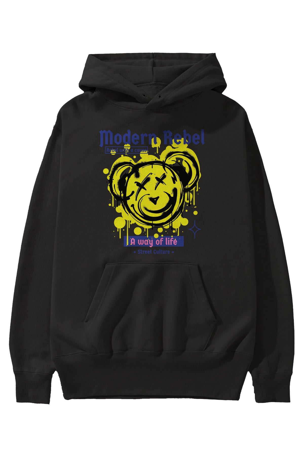 Modern Rebel Bear Ön Baskılı Hoodie Oversize Kapüşonlu Sweatshirt Erkek Kadın Unisex