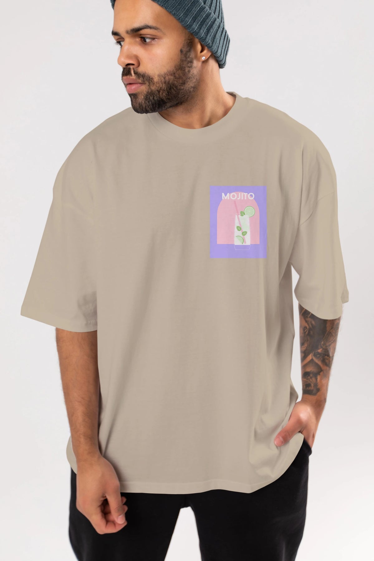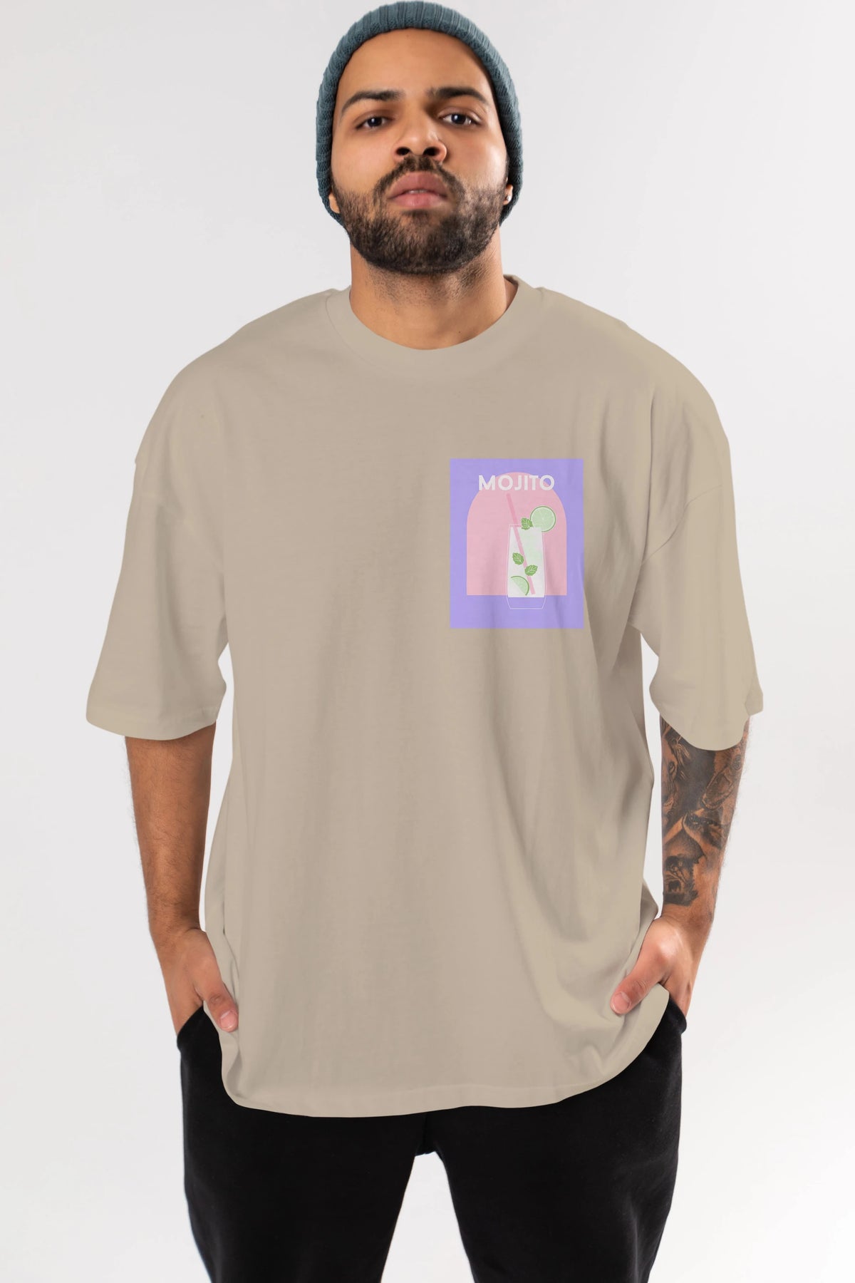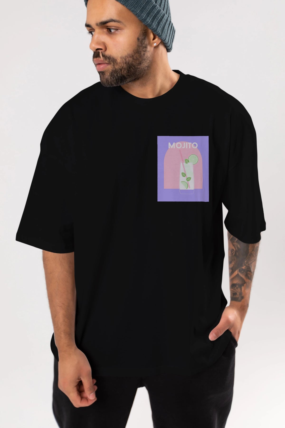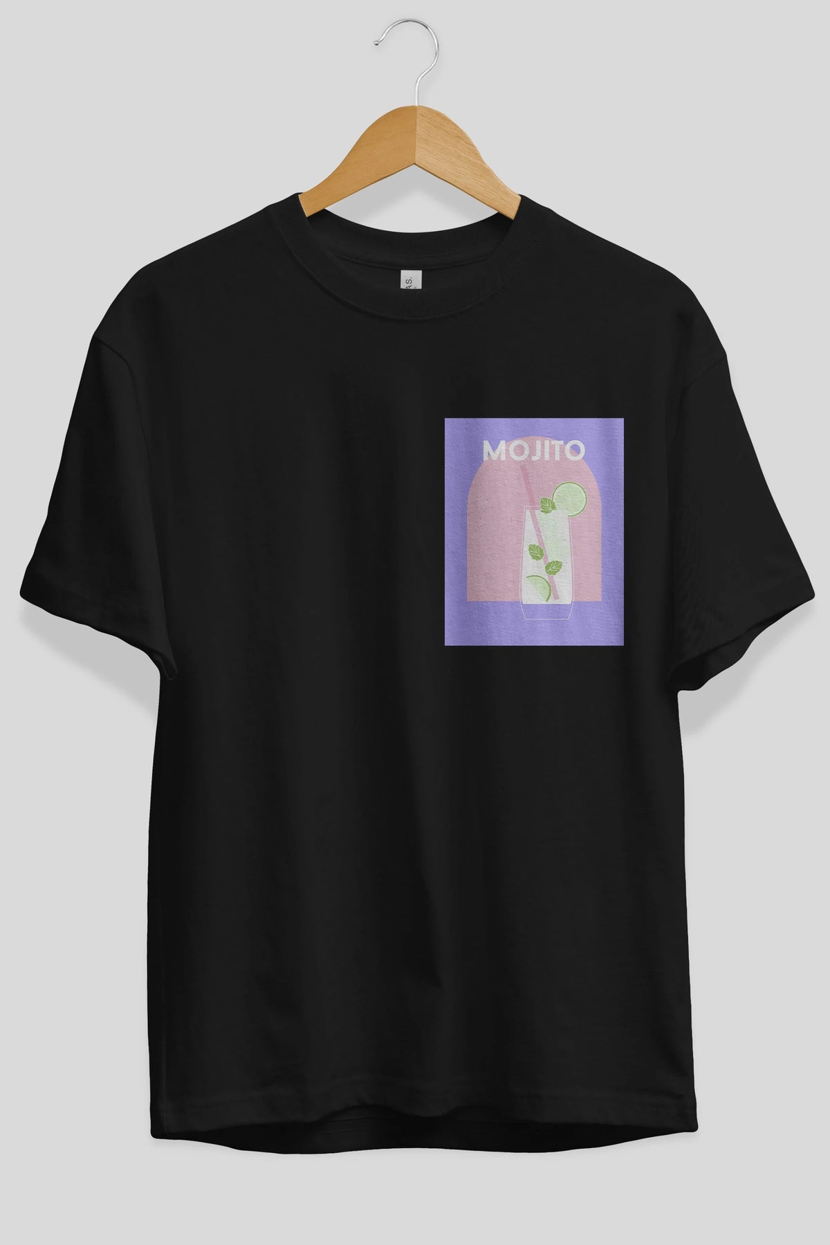 Mojito 2 Ön Sol Baskılı Oversize t-shirt Erkek Kadın Unisex %100 Pamuk Bisiklet Yaka tişort