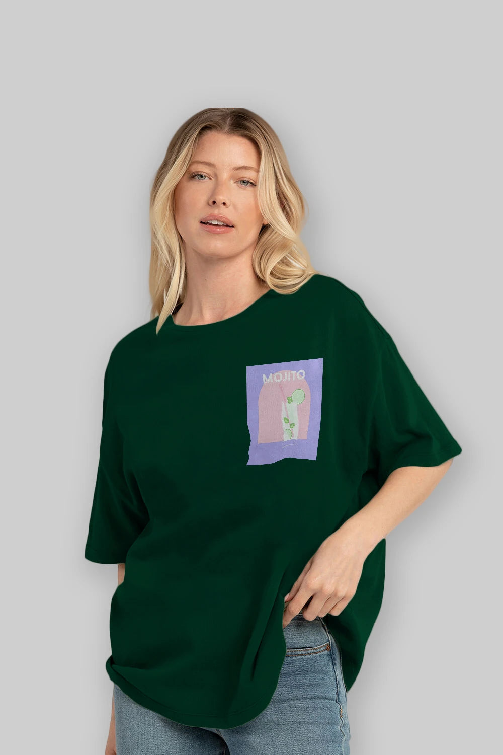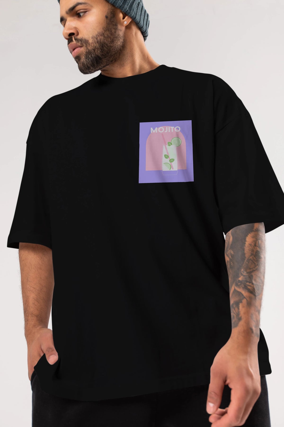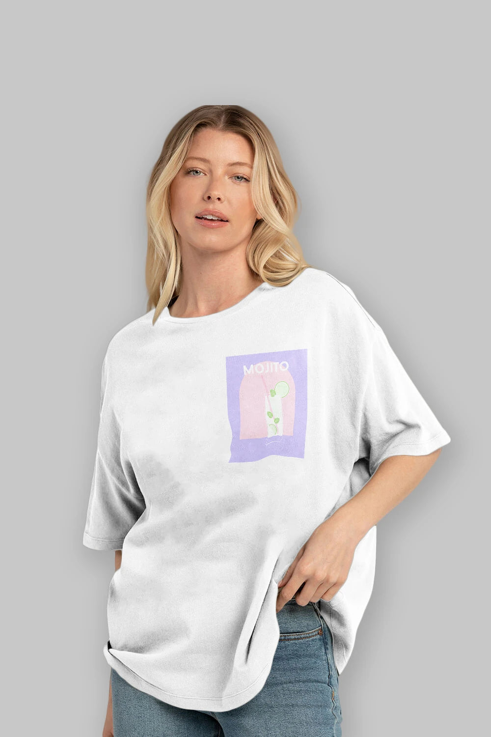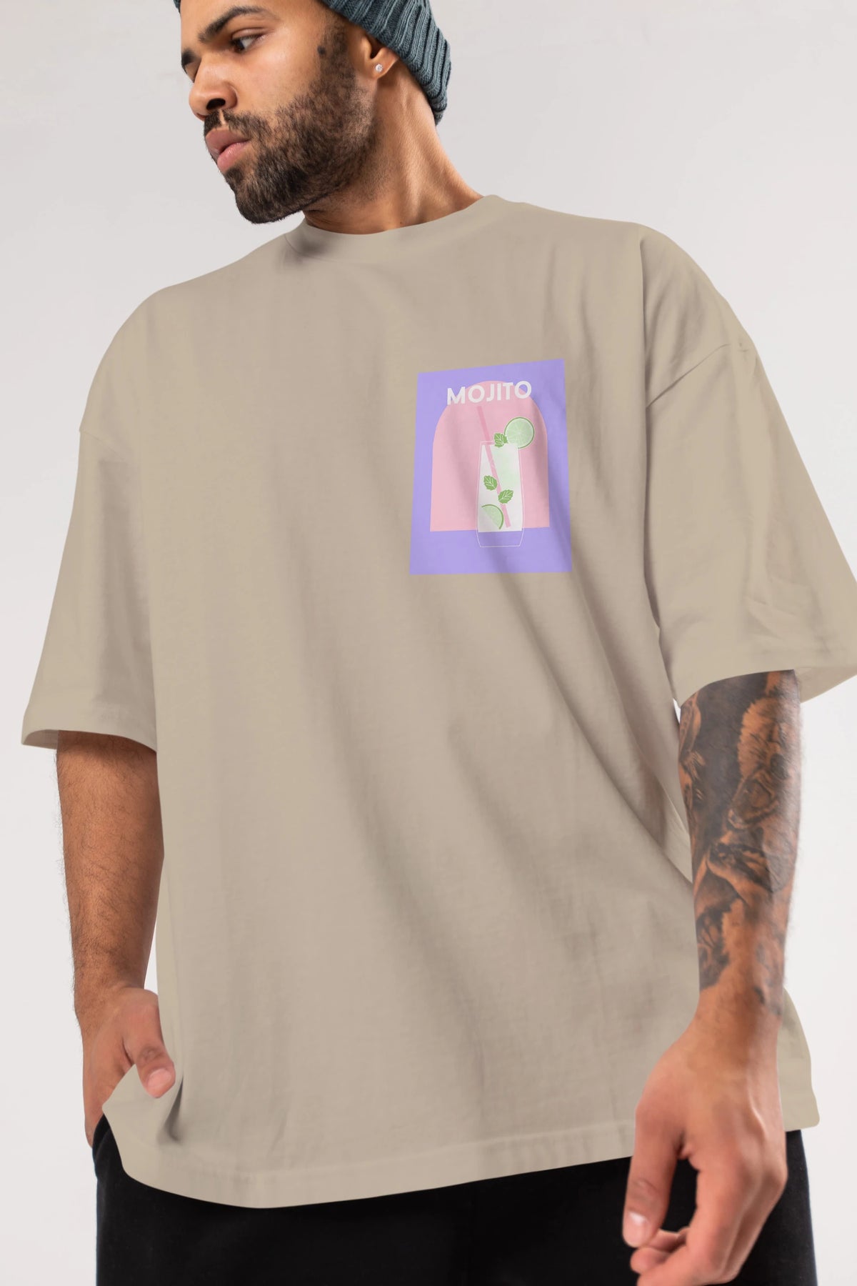 Mojito 2 Ön Sol Baskılı Oversize t-shirt Erkek Kadın Unisex %100 Pamuk Bisiklet Yaka tişort