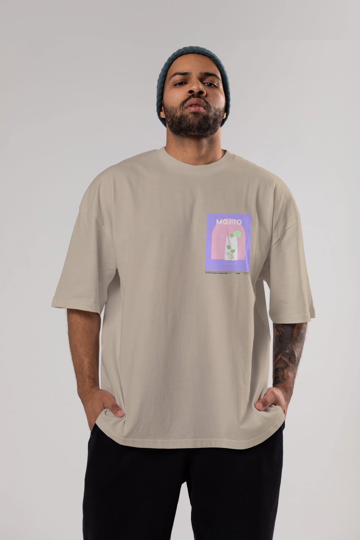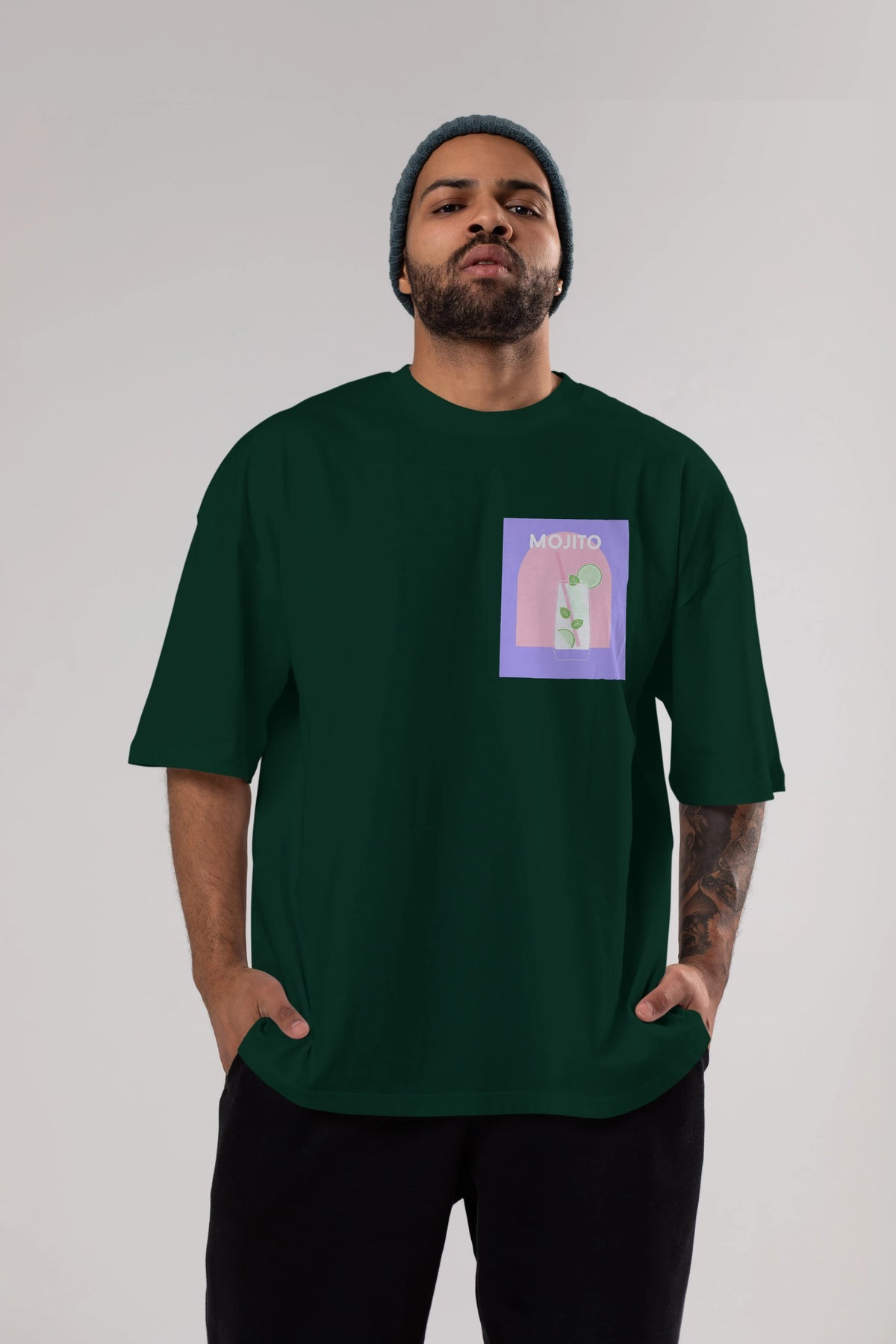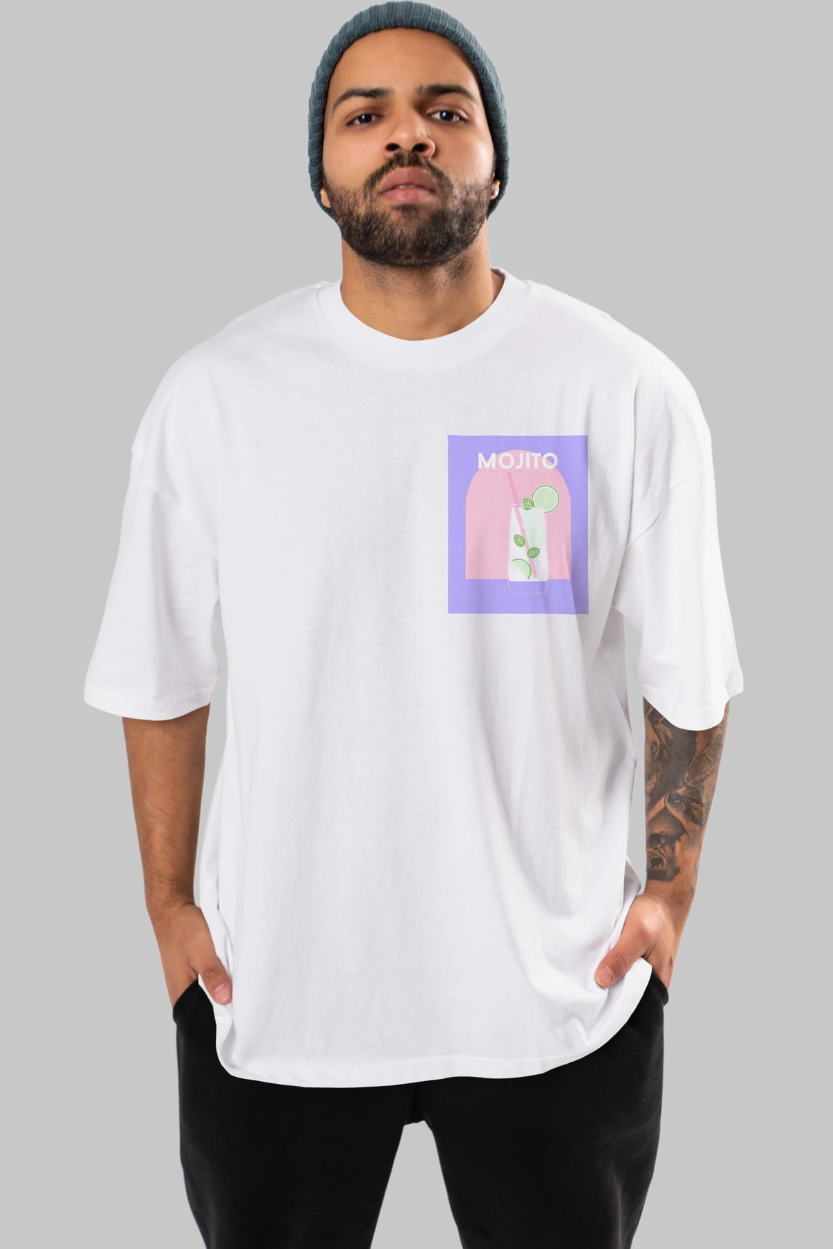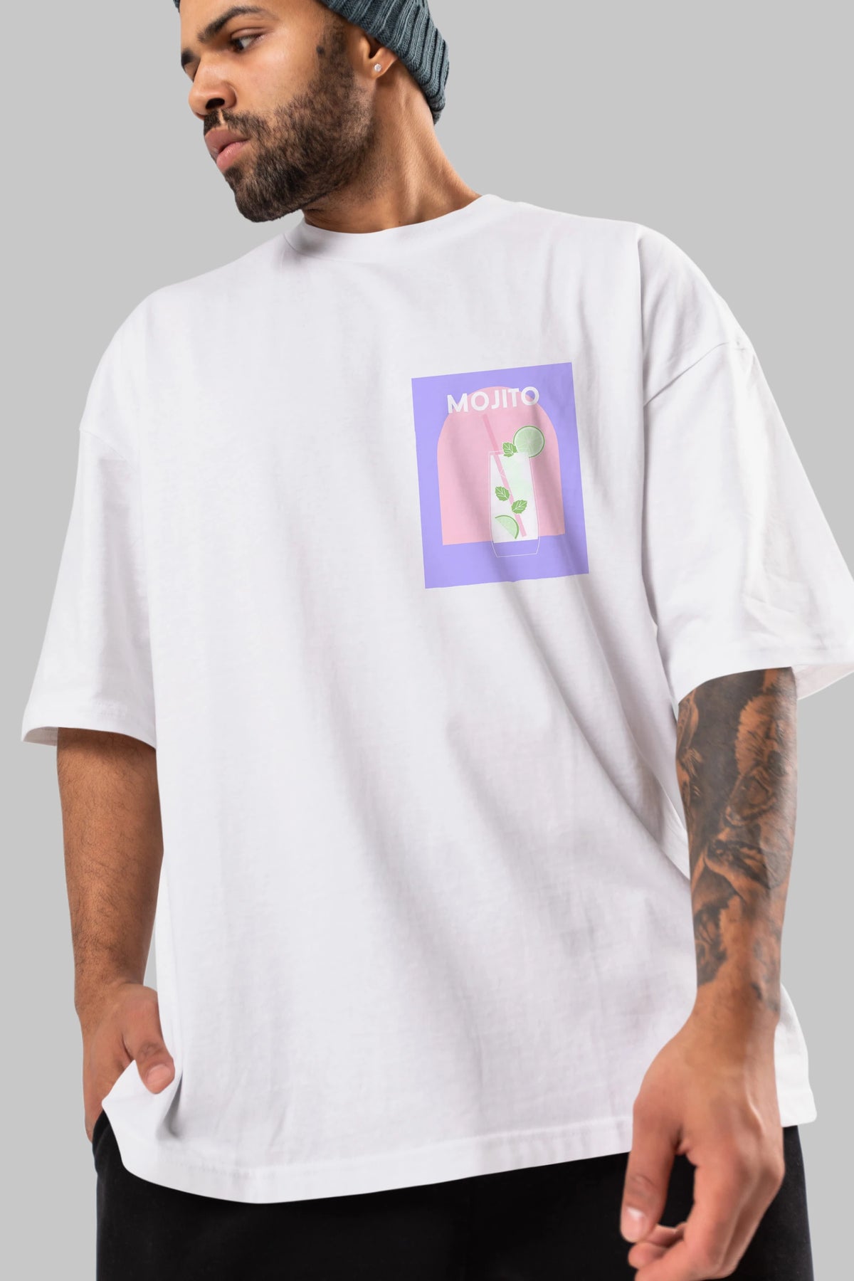 Mojito 2 Ön Sol Baskılı Oversize t-shirt Erkek Kadın Unisex %100 Pamuk Bisiklet Yaka tişort