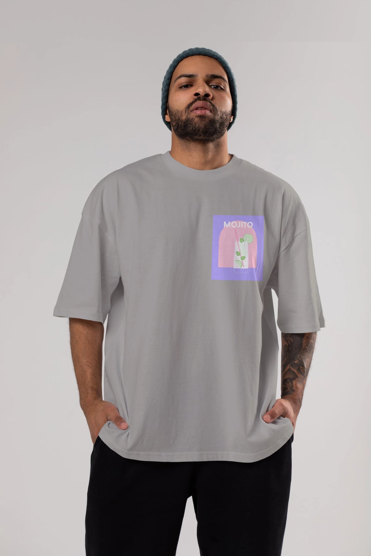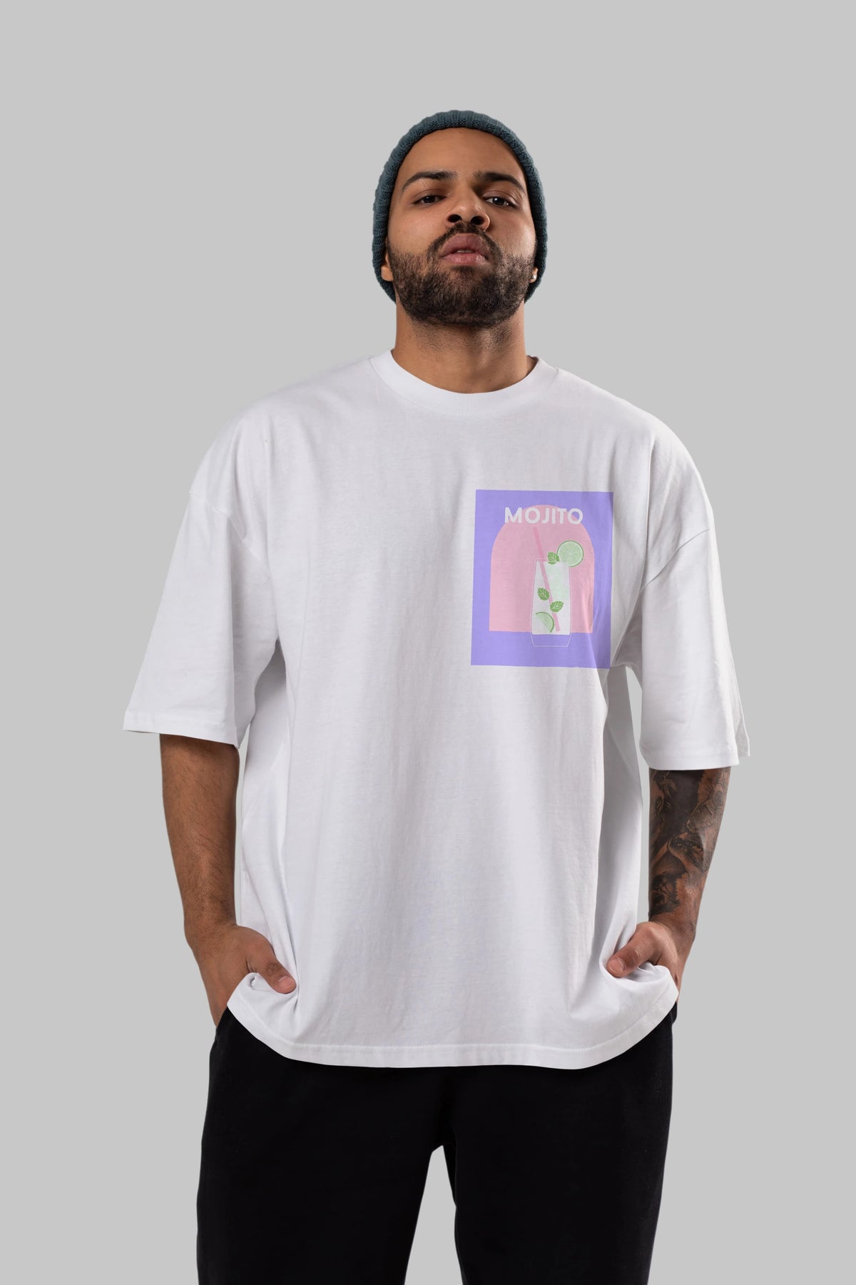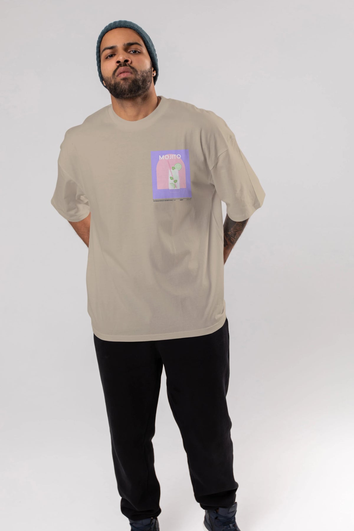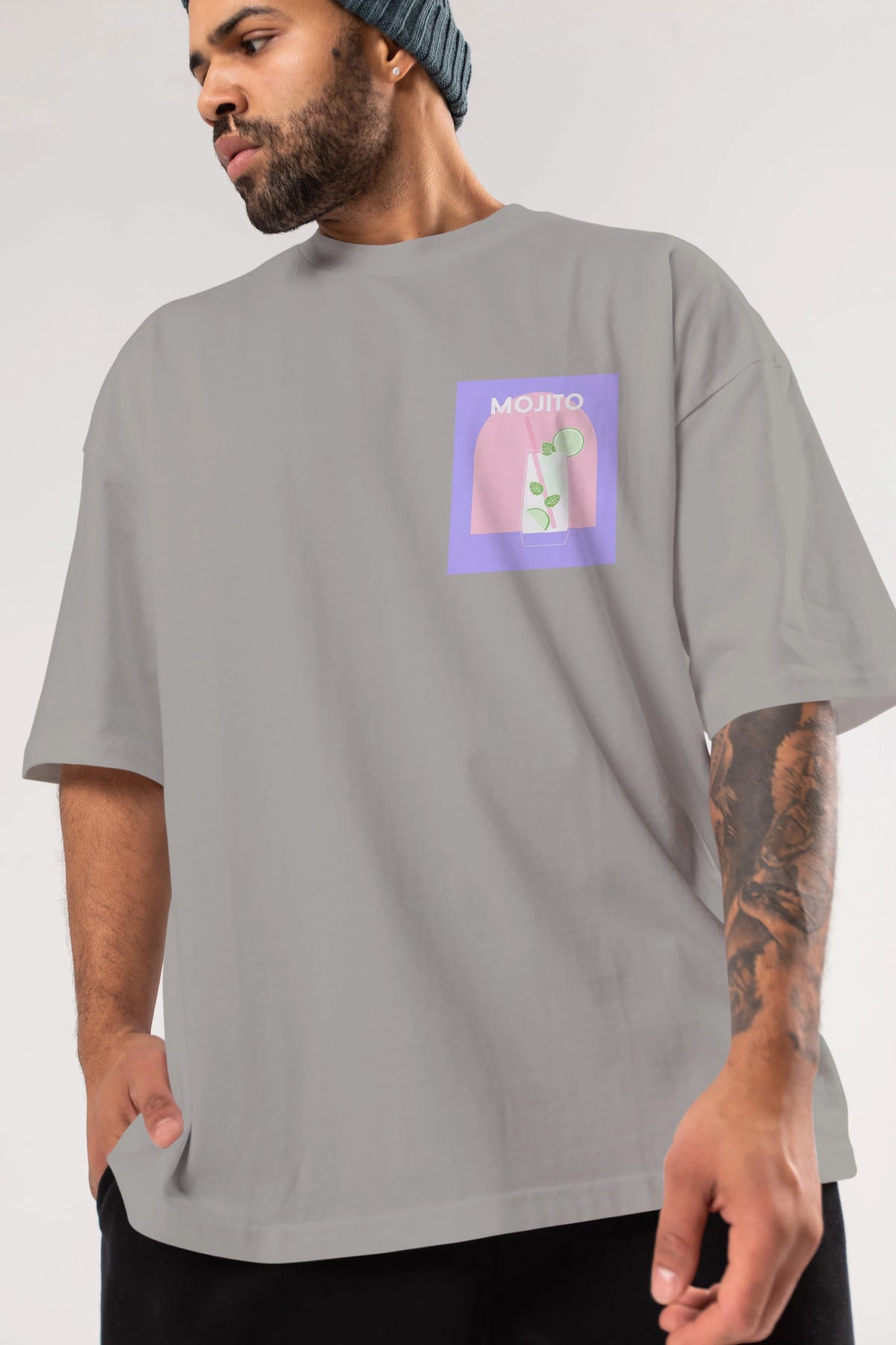 Mojito 2 Ön Sol Baskılı Oversize t-shirt Erkek Kadın Unisex %100 Pamuk Bisiklet Yaka tişort