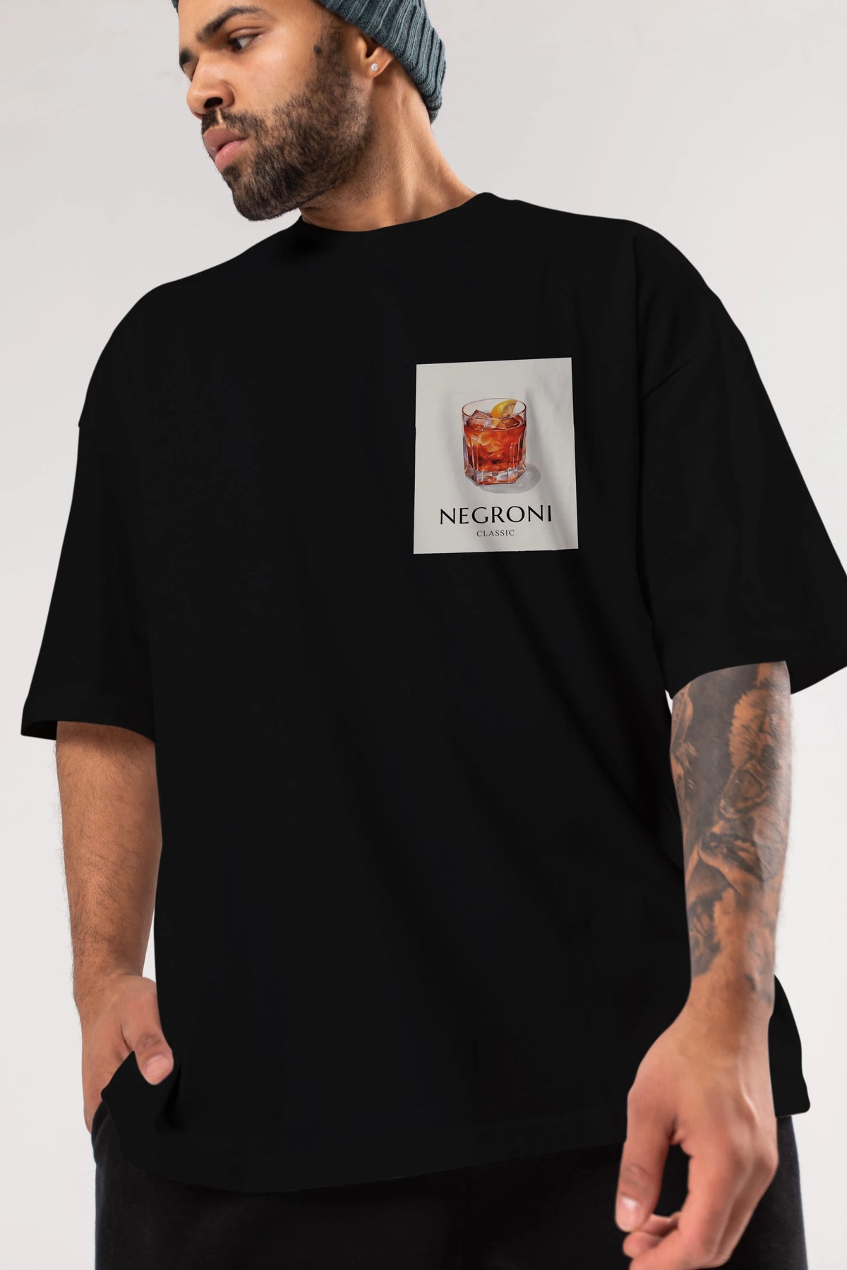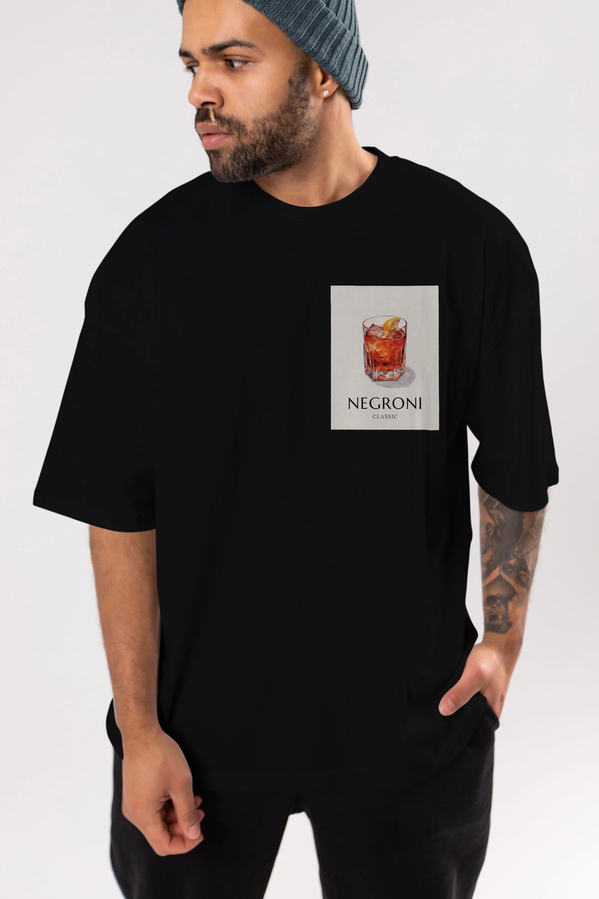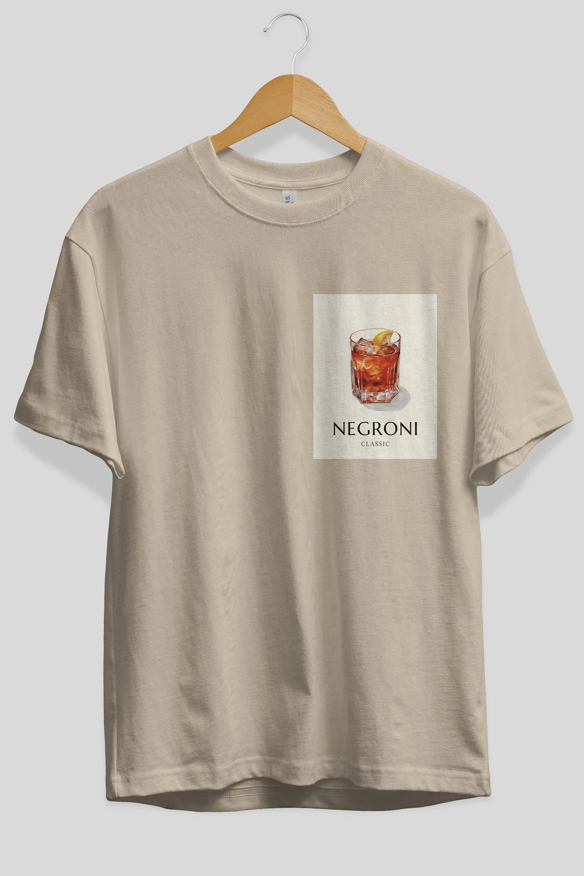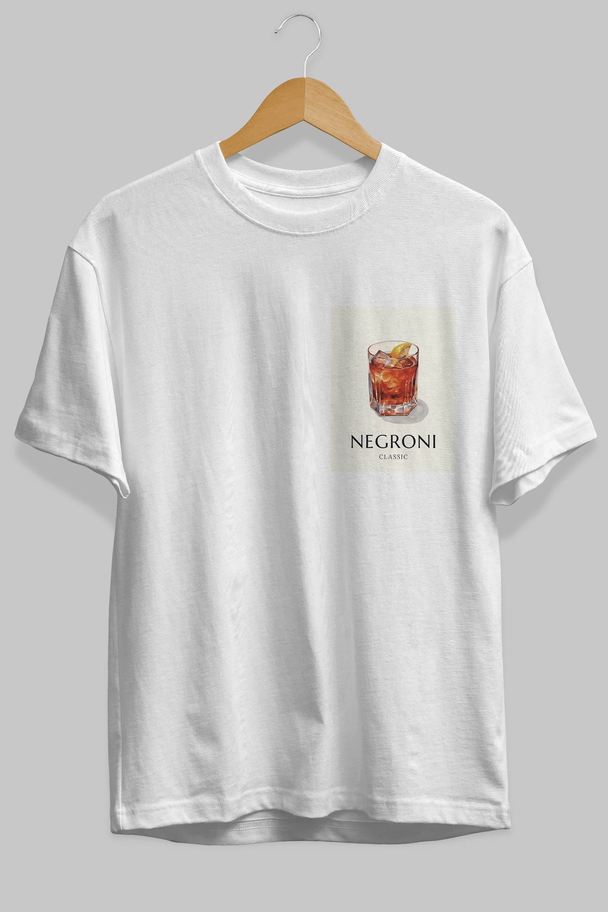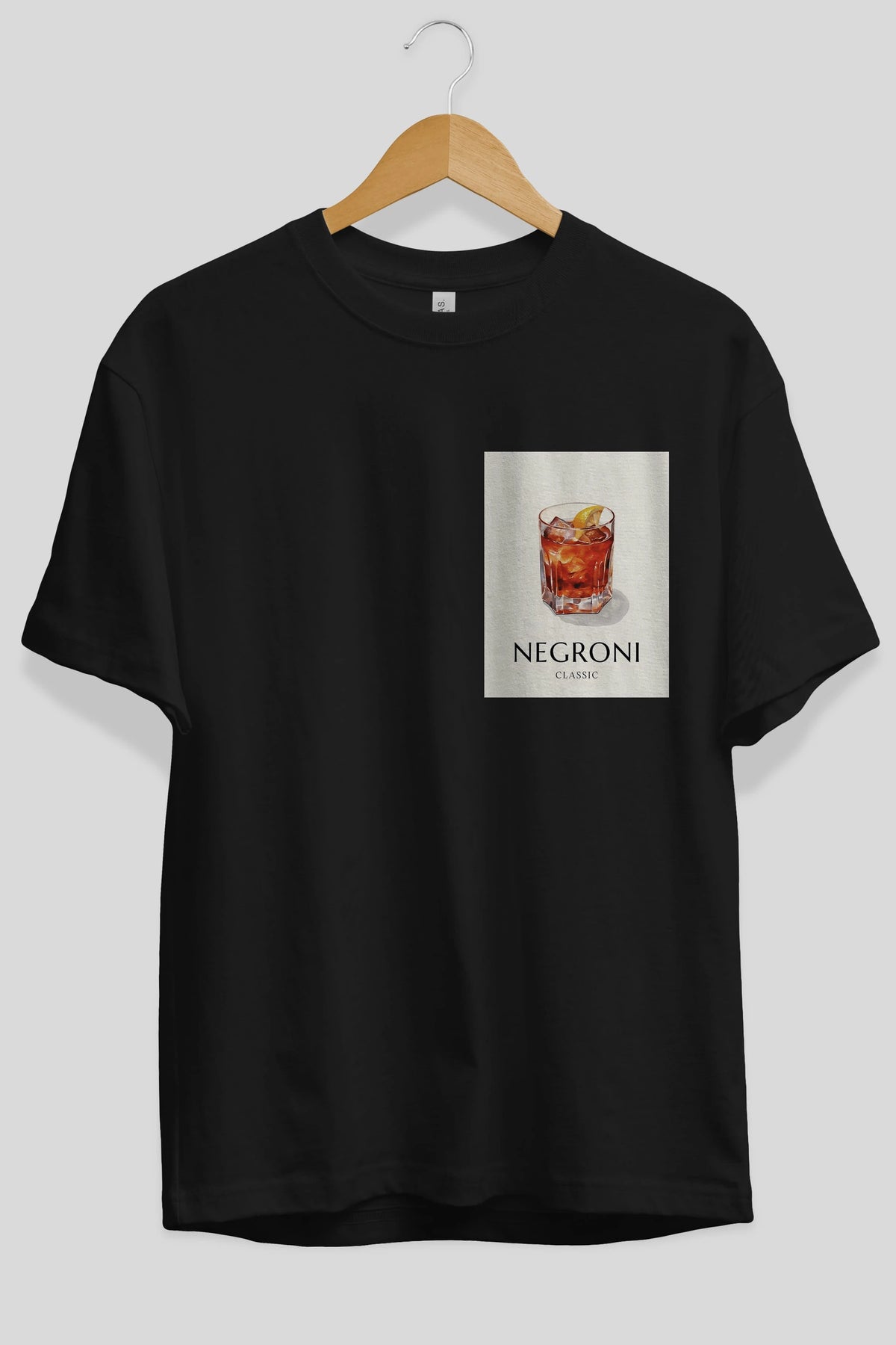 Negroni Classic Ön Sol Baskılı Oversize t-shirt Erkek Kadın Unisex %100 Pamuk Bisiklet Yaka tişort