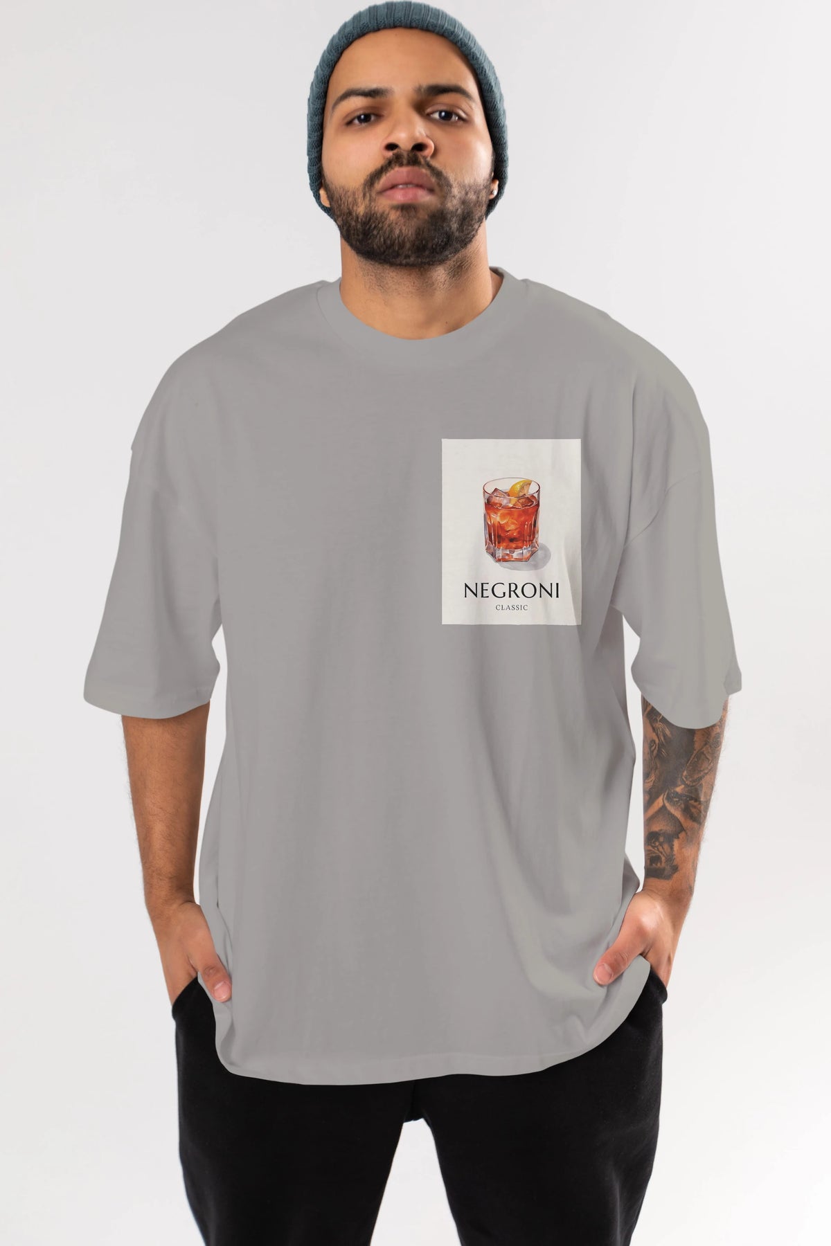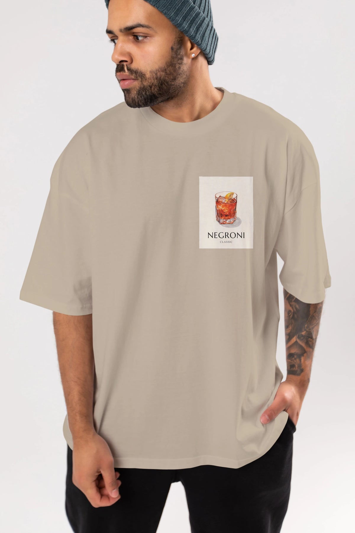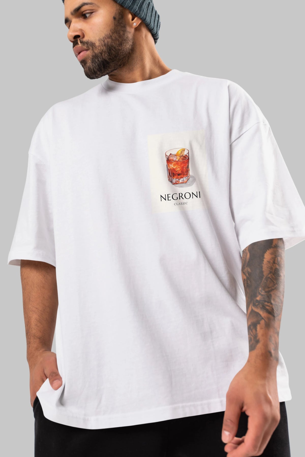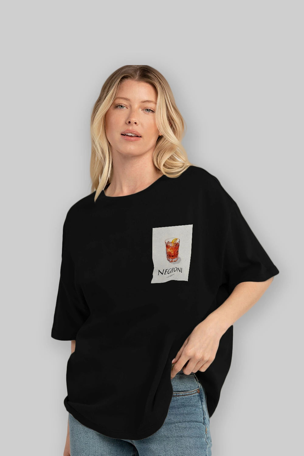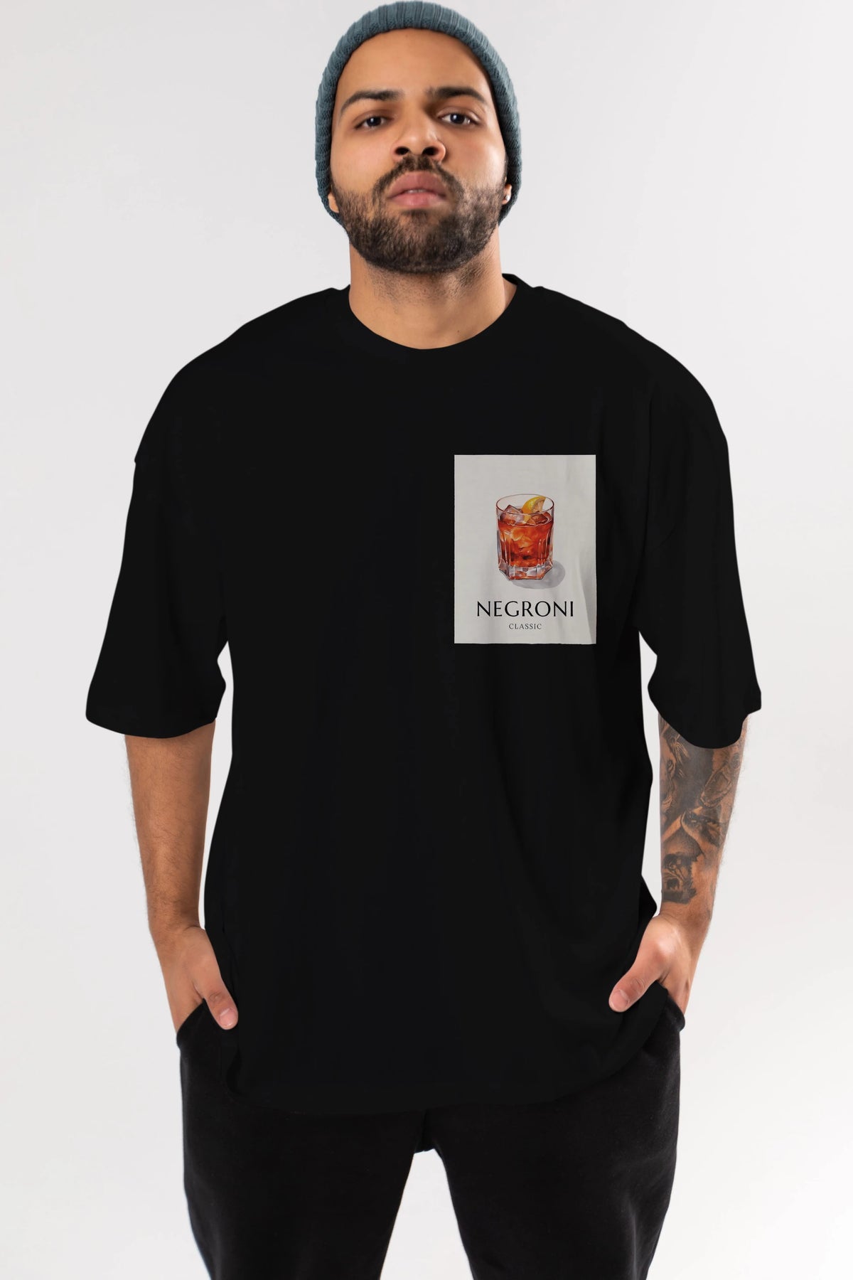 Negroni Classic Ön Sol Baskılı Oversize t-shirt Erkek Kadın Unisex %100 Pamuk Bisiklet Yaka tişort