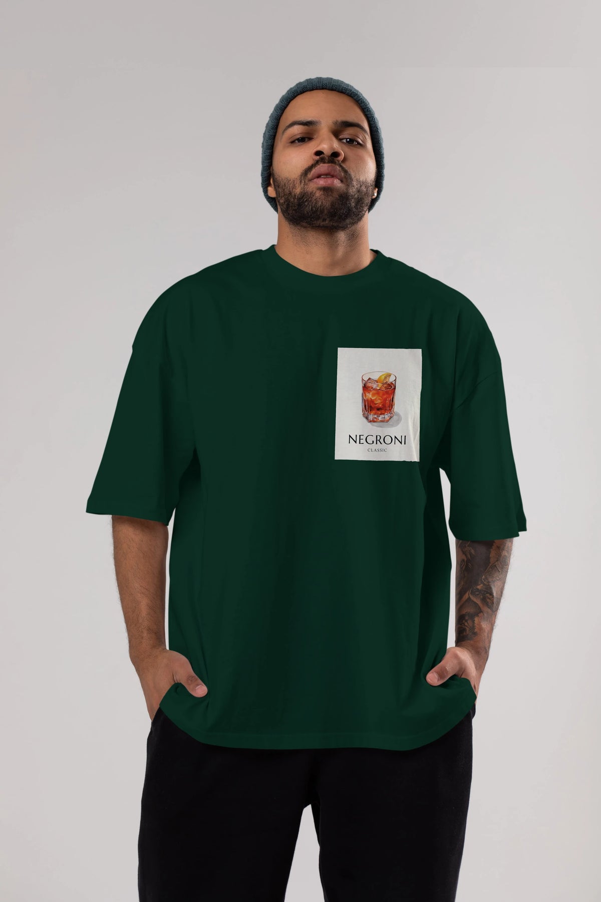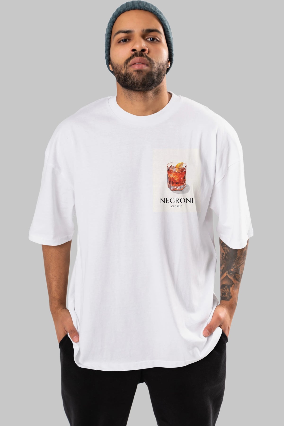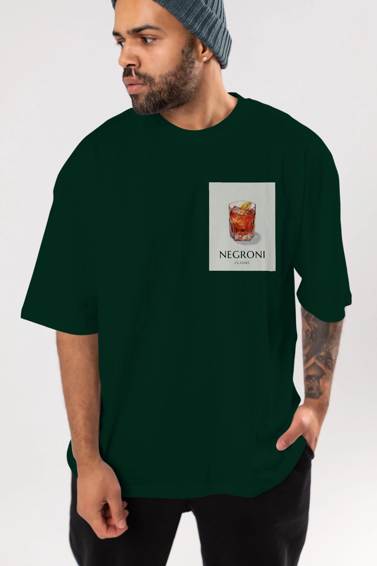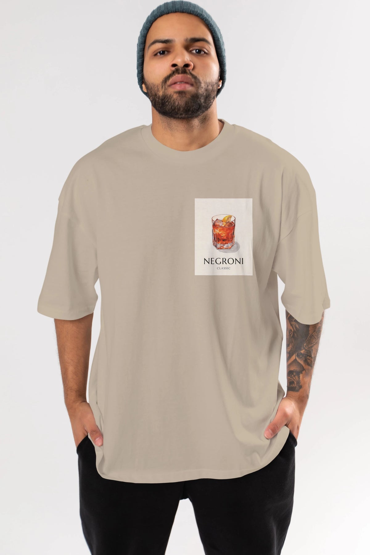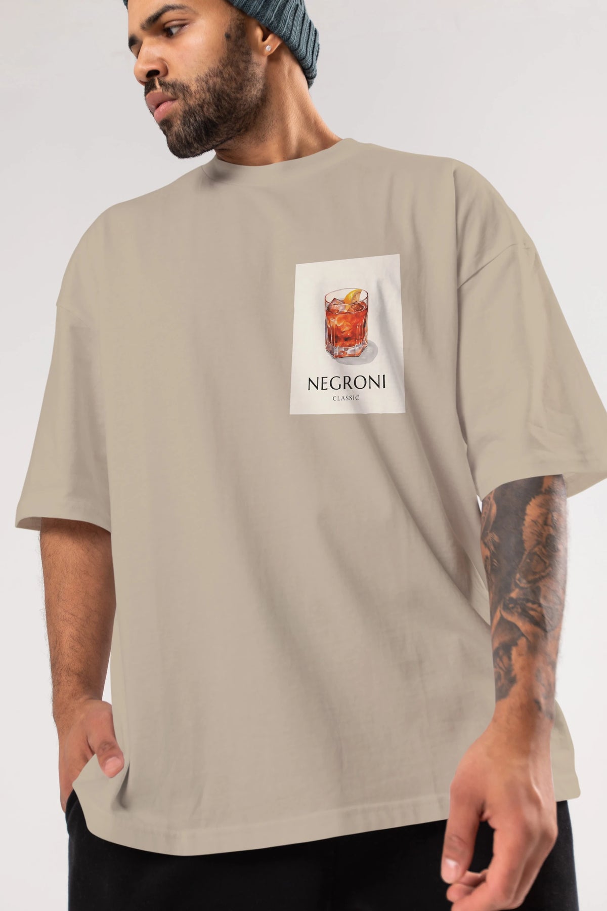 Negroni Classic Ön Sol Baskılı Oversize t-shirt Erkek Kadın Unisex %100 Pamuk Bisiklet Yaka tişort