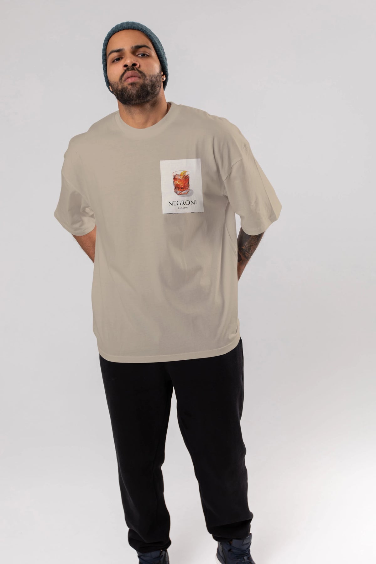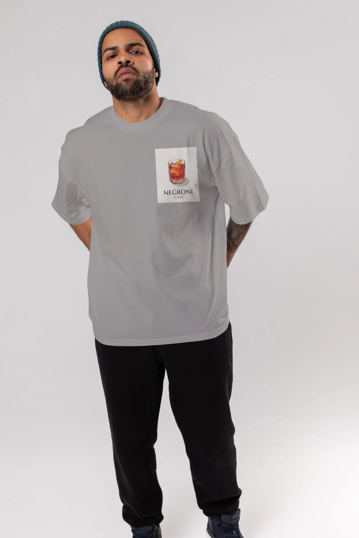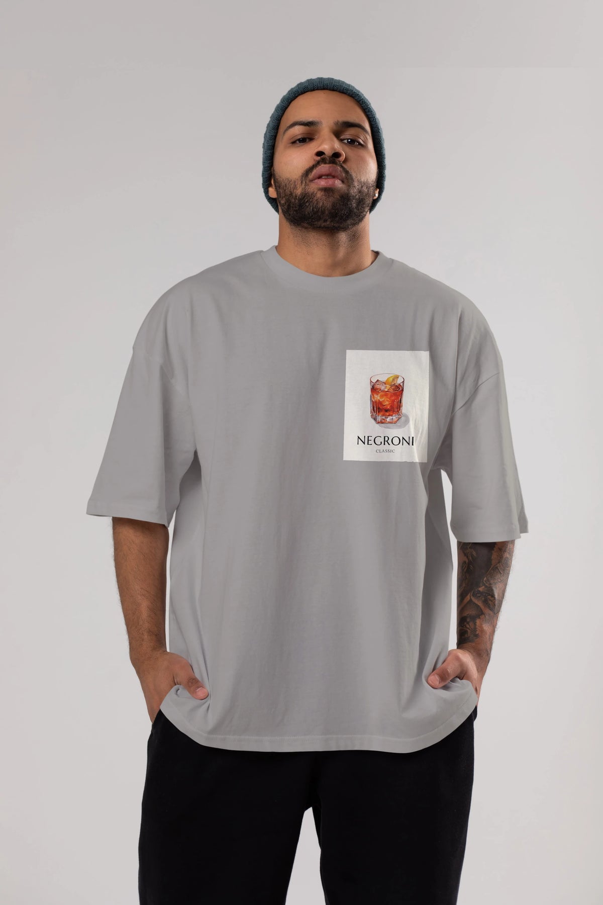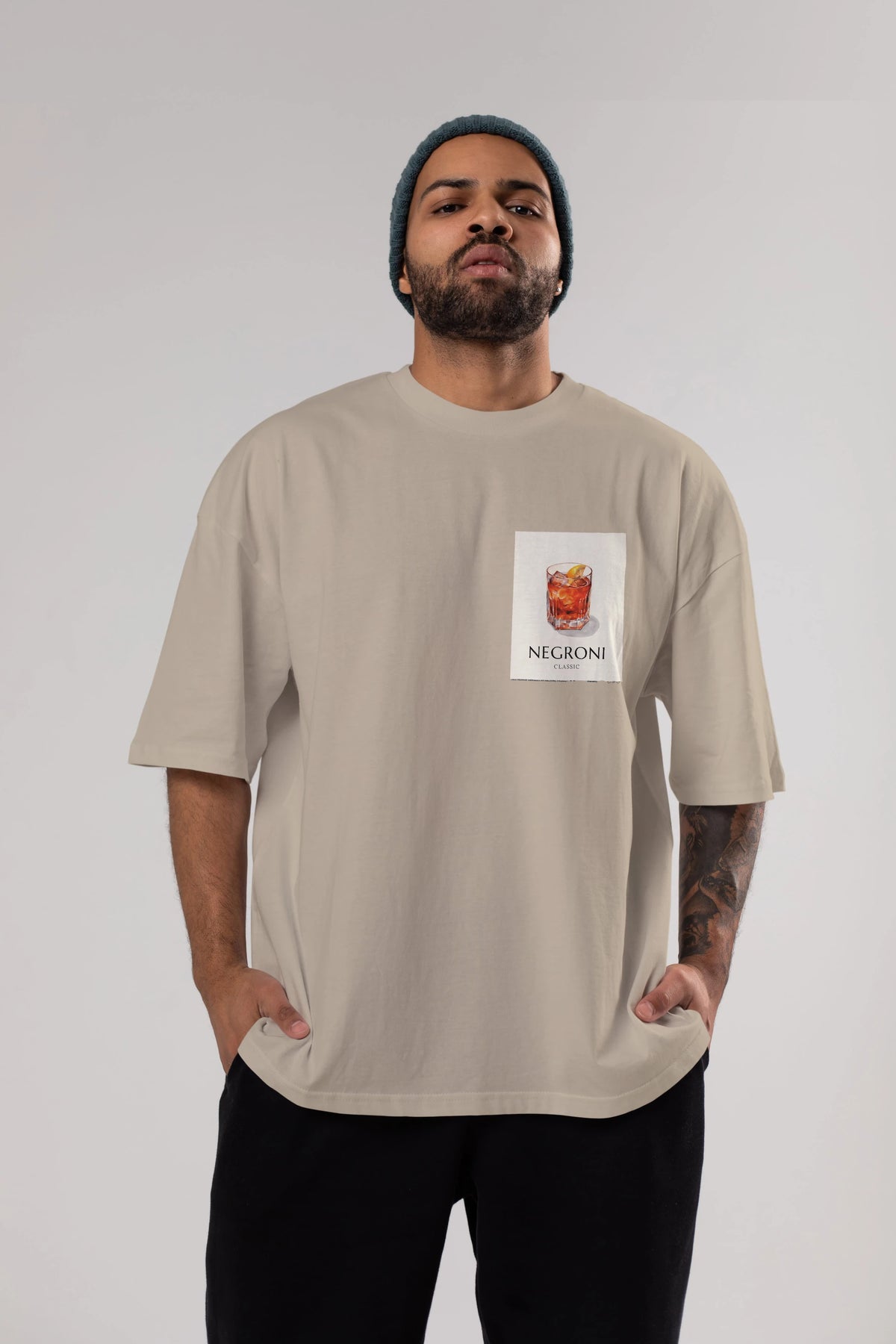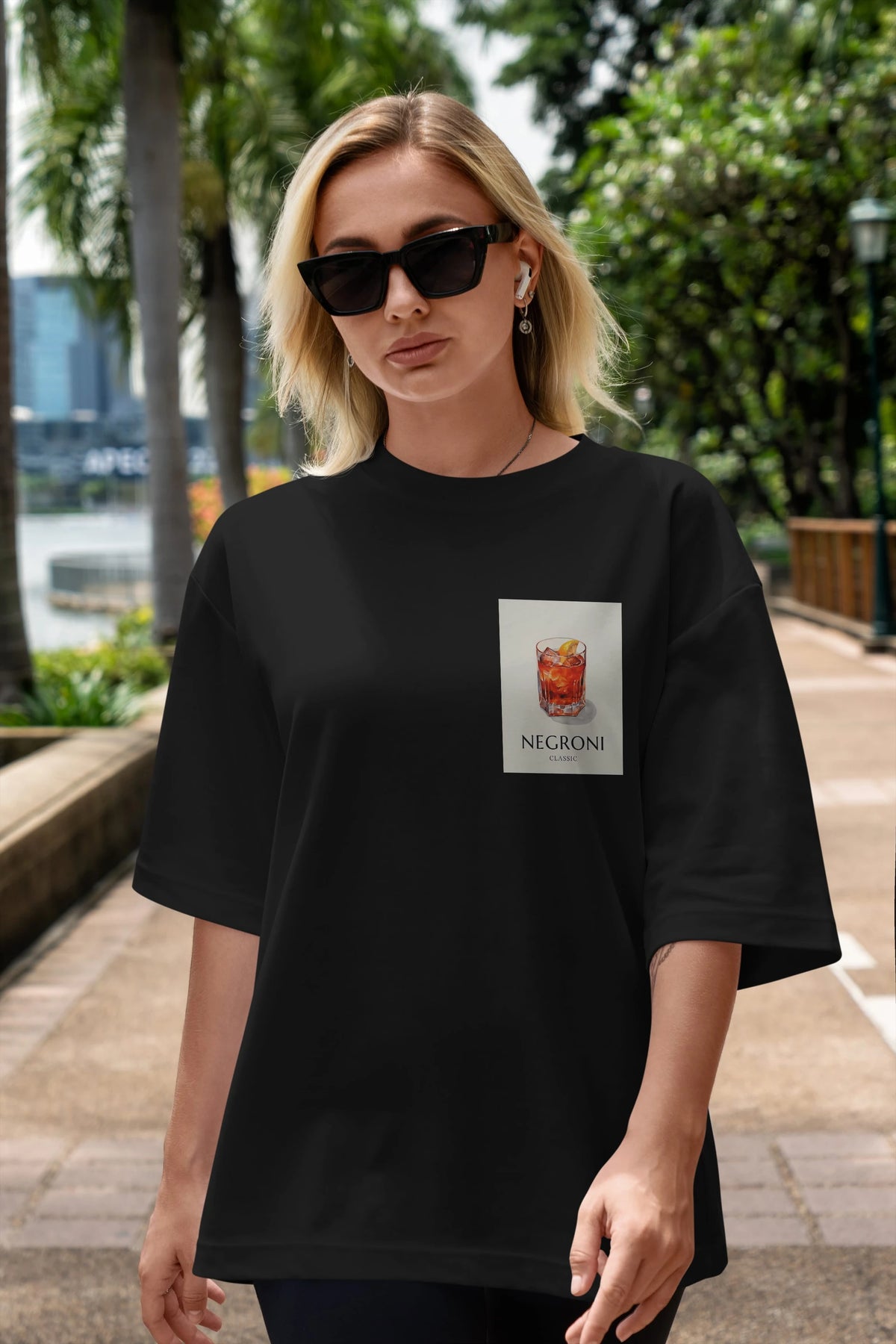 Negroni Classic Ön Sol Baskılı Oversize t-shirt Erkek Kadın Unisex %100 Pamuk Bisiklet Yaka tişort