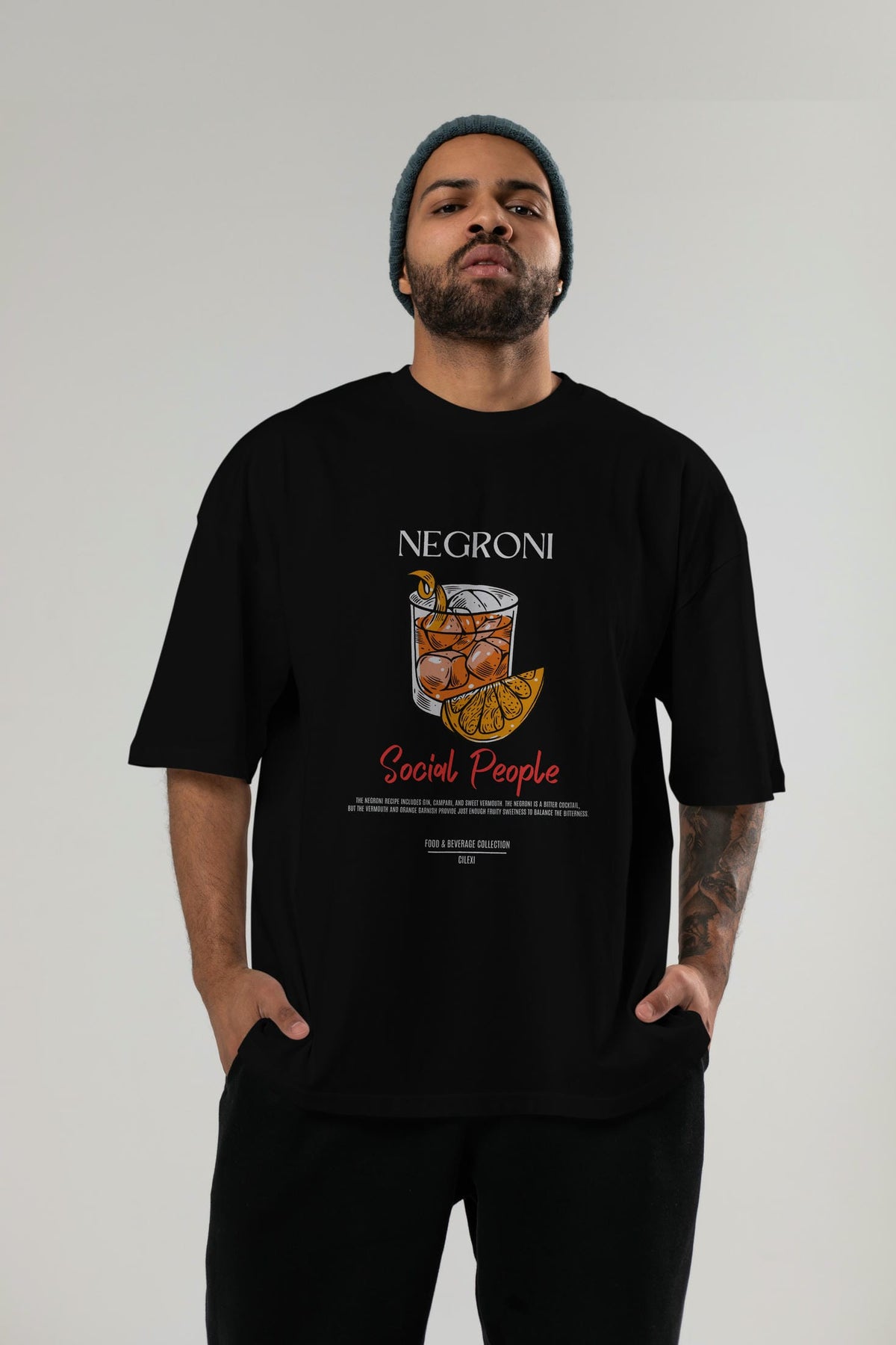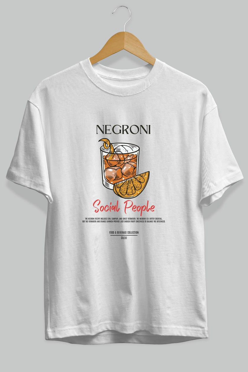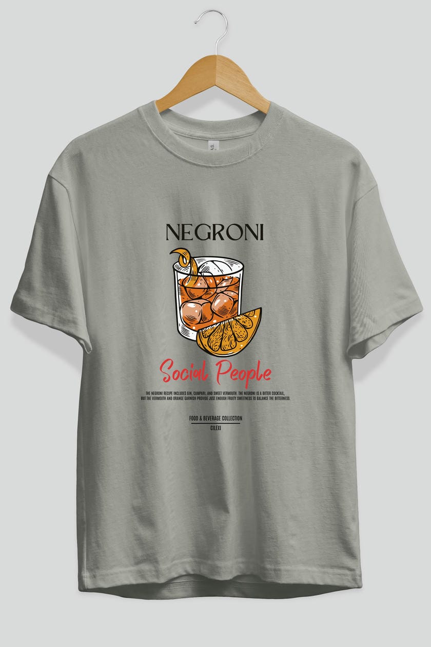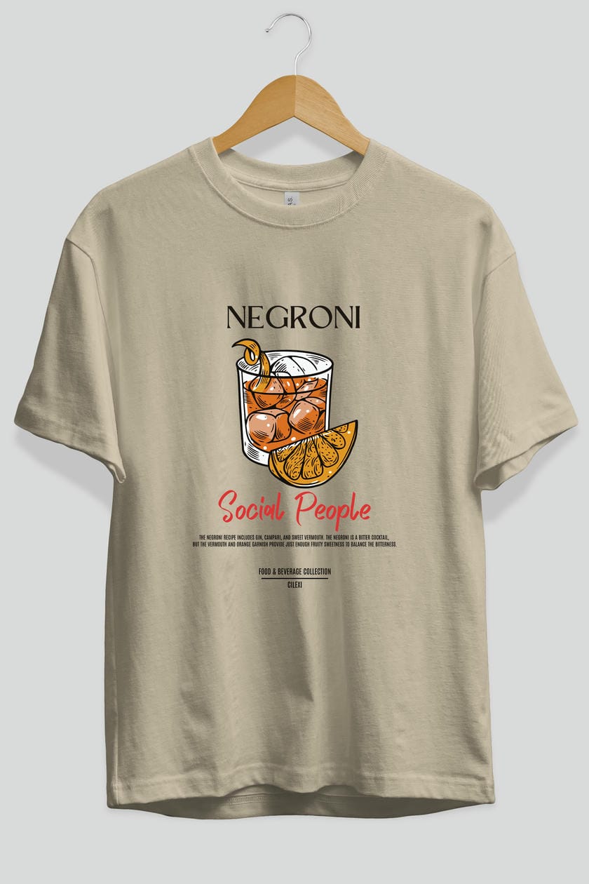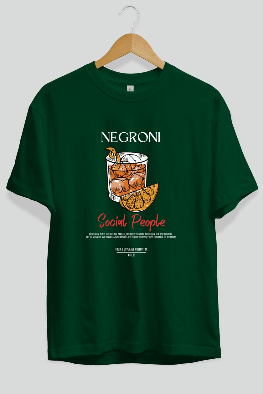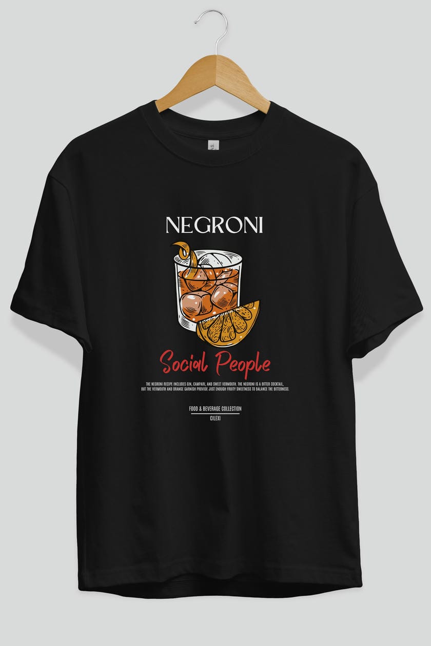 Negroni Kokteyl Serisi ön Baskılı Oversize t-shirt Erkek Kadın %100 Pamuk Bisiklet Yaka tişort