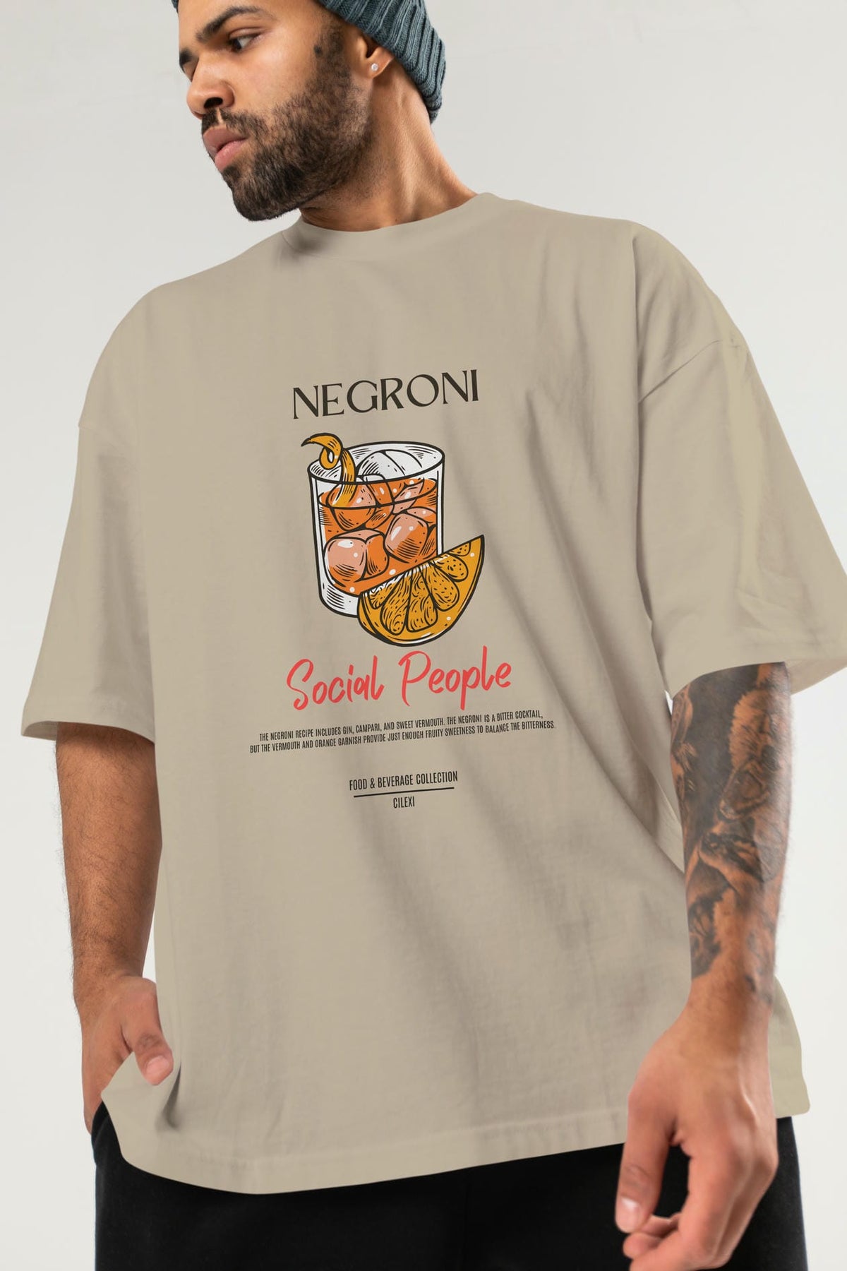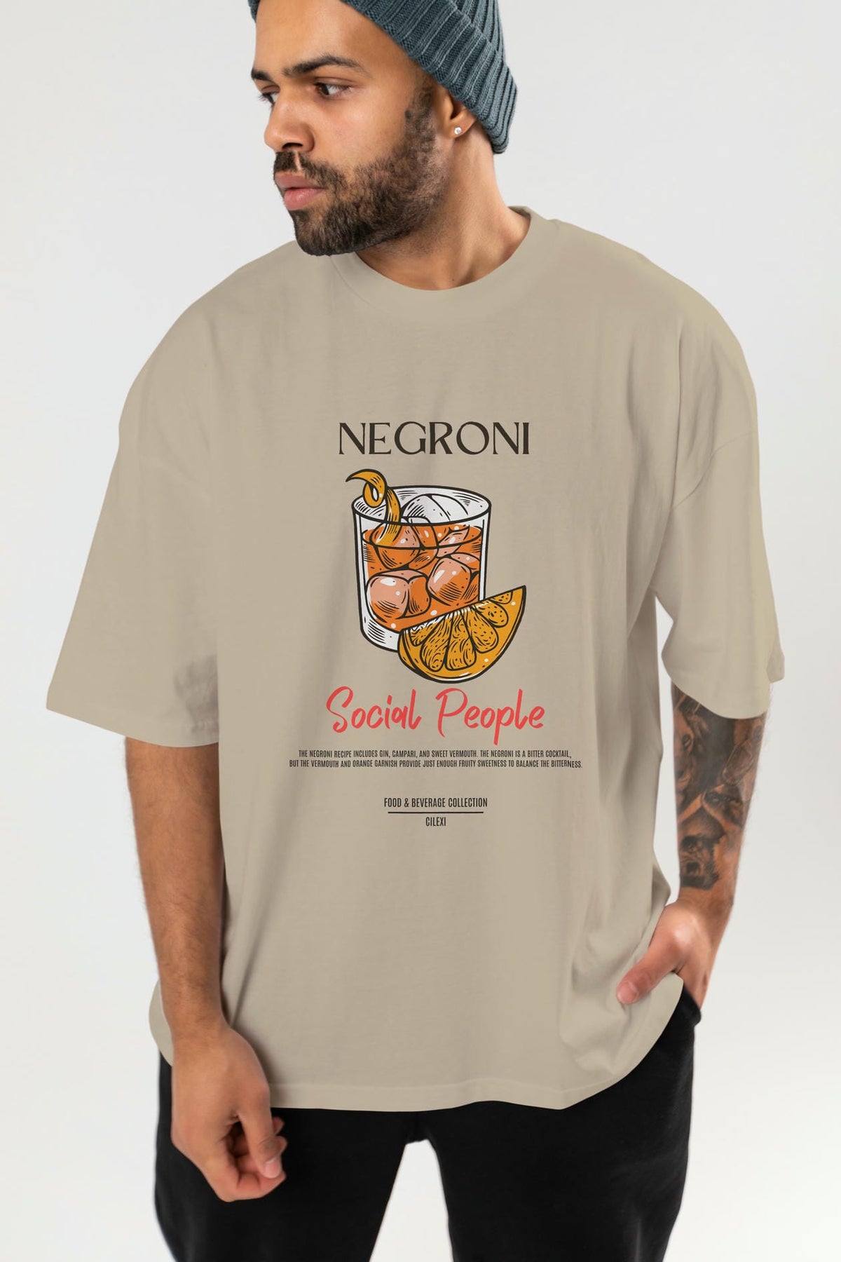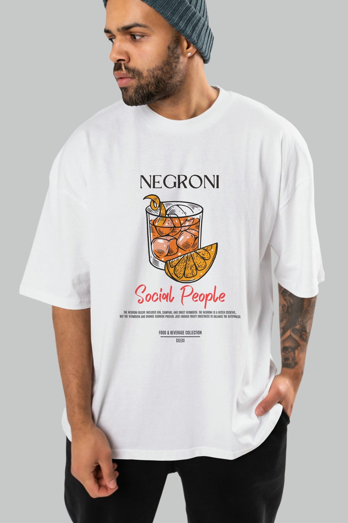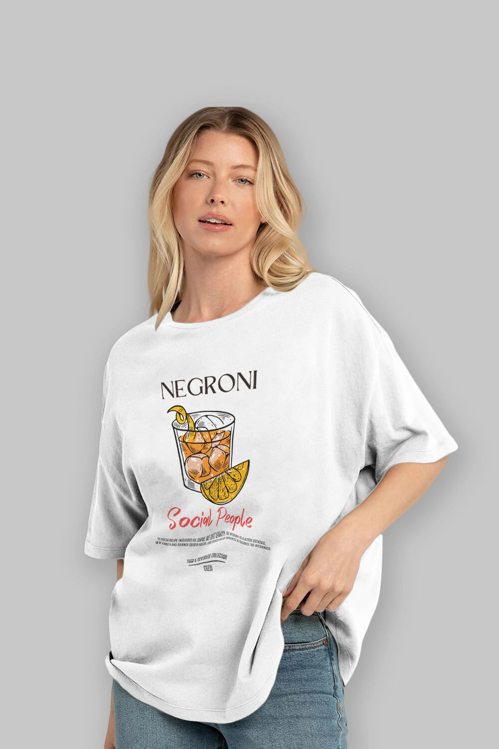 Negroni Kokteyl Serisi ön Baskılı Oversize t-shirt Erkek Kadın %100 Pamuk Bisiklet Yaka tişort
