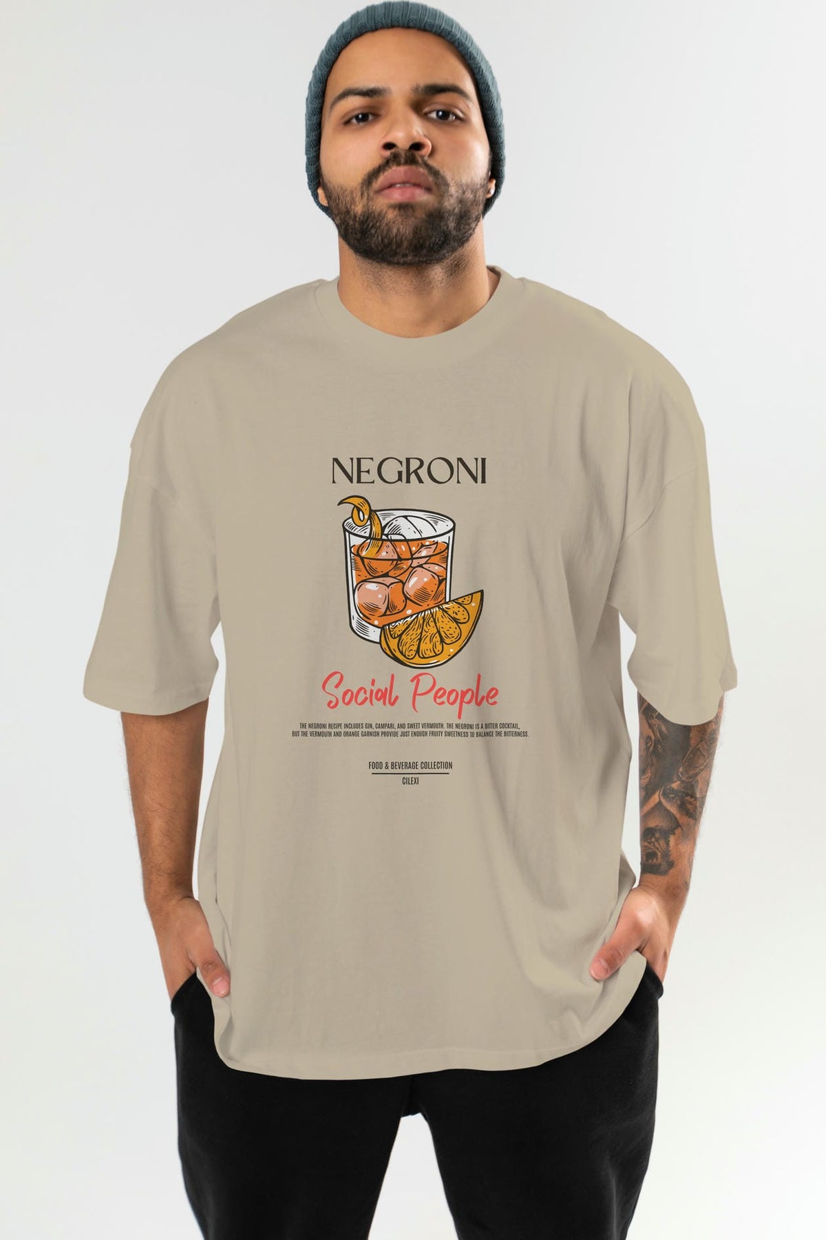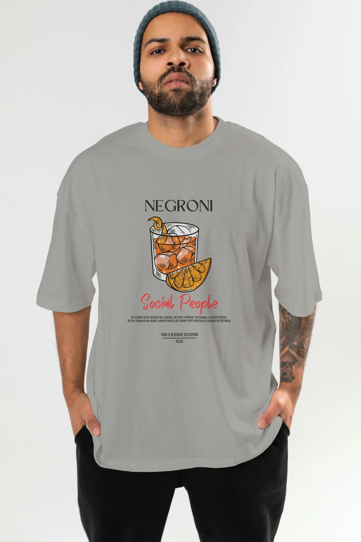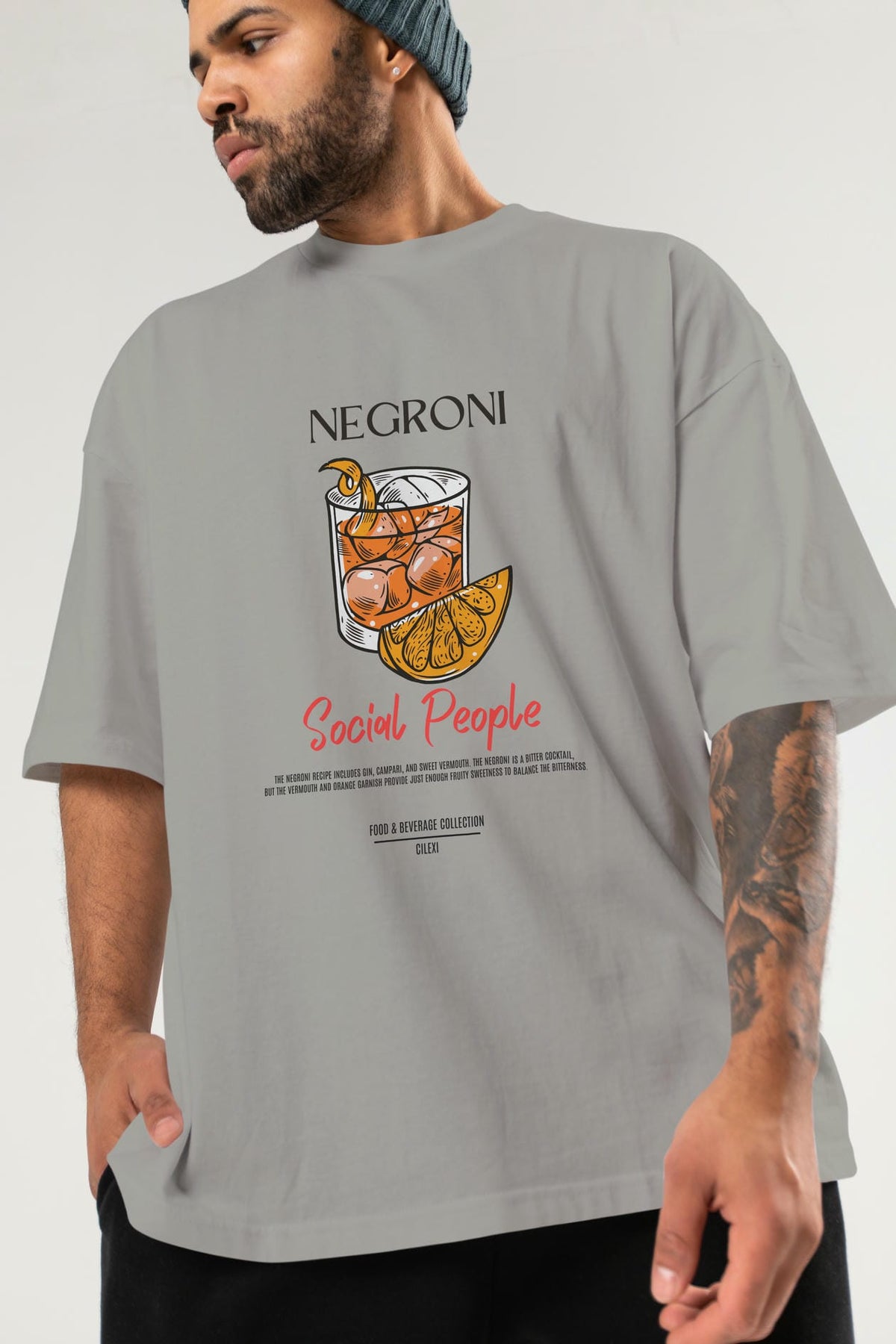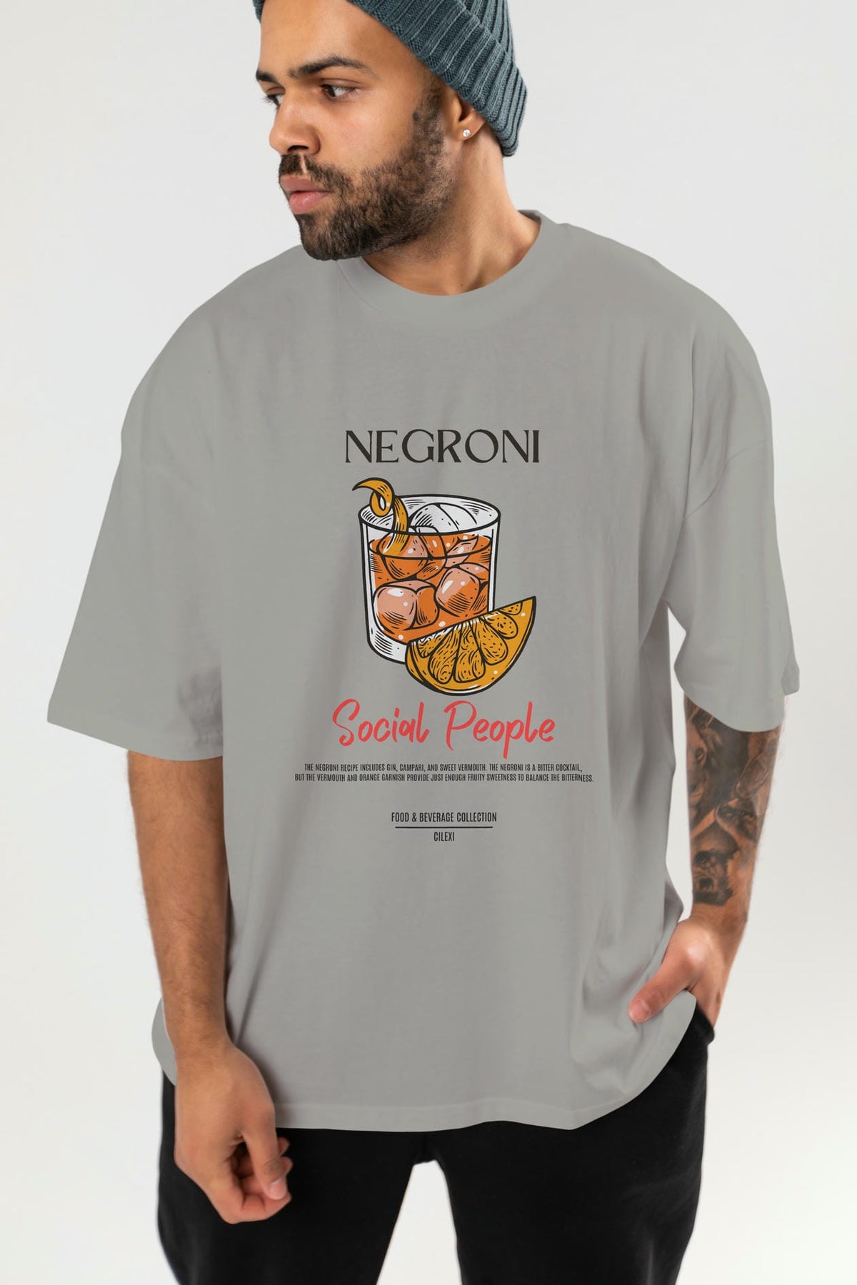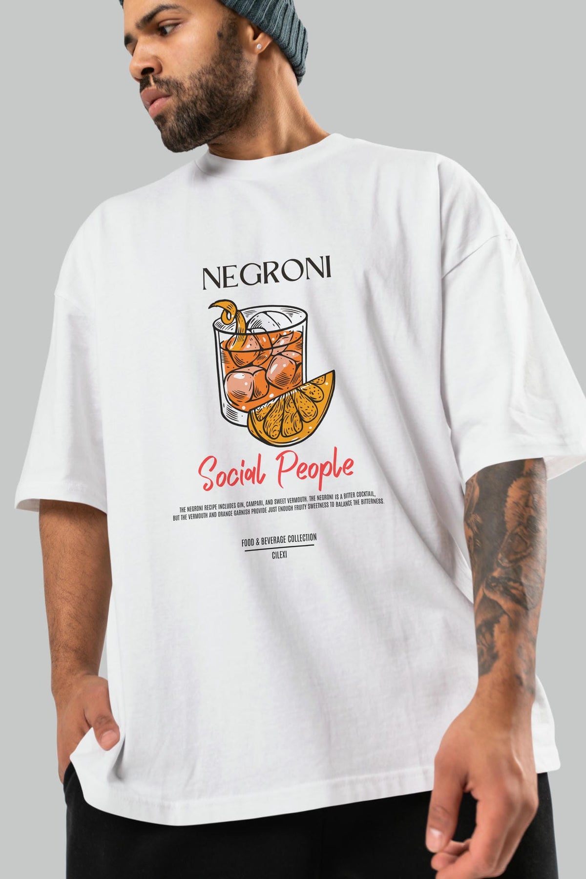 Negroni Kokteyl Serisi ön Baskılı Oversize t-shirt Erkek Kadın %100 Pamuk Bisiklet Yaka tişort