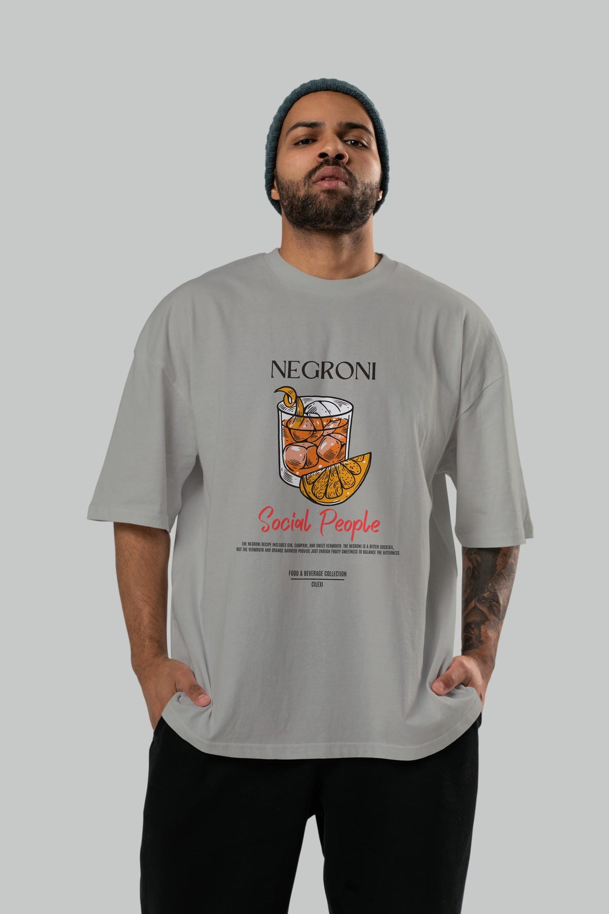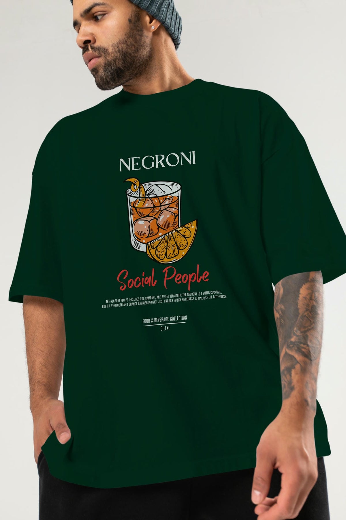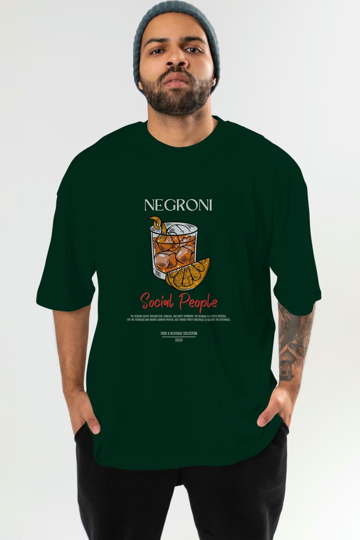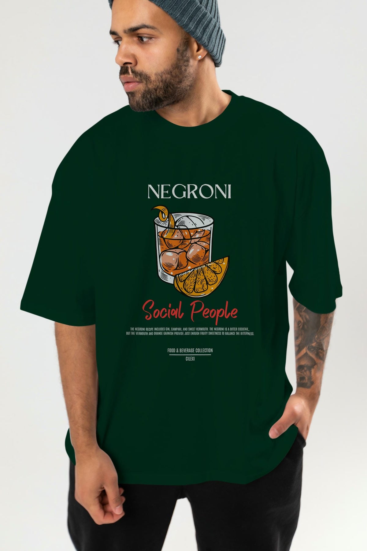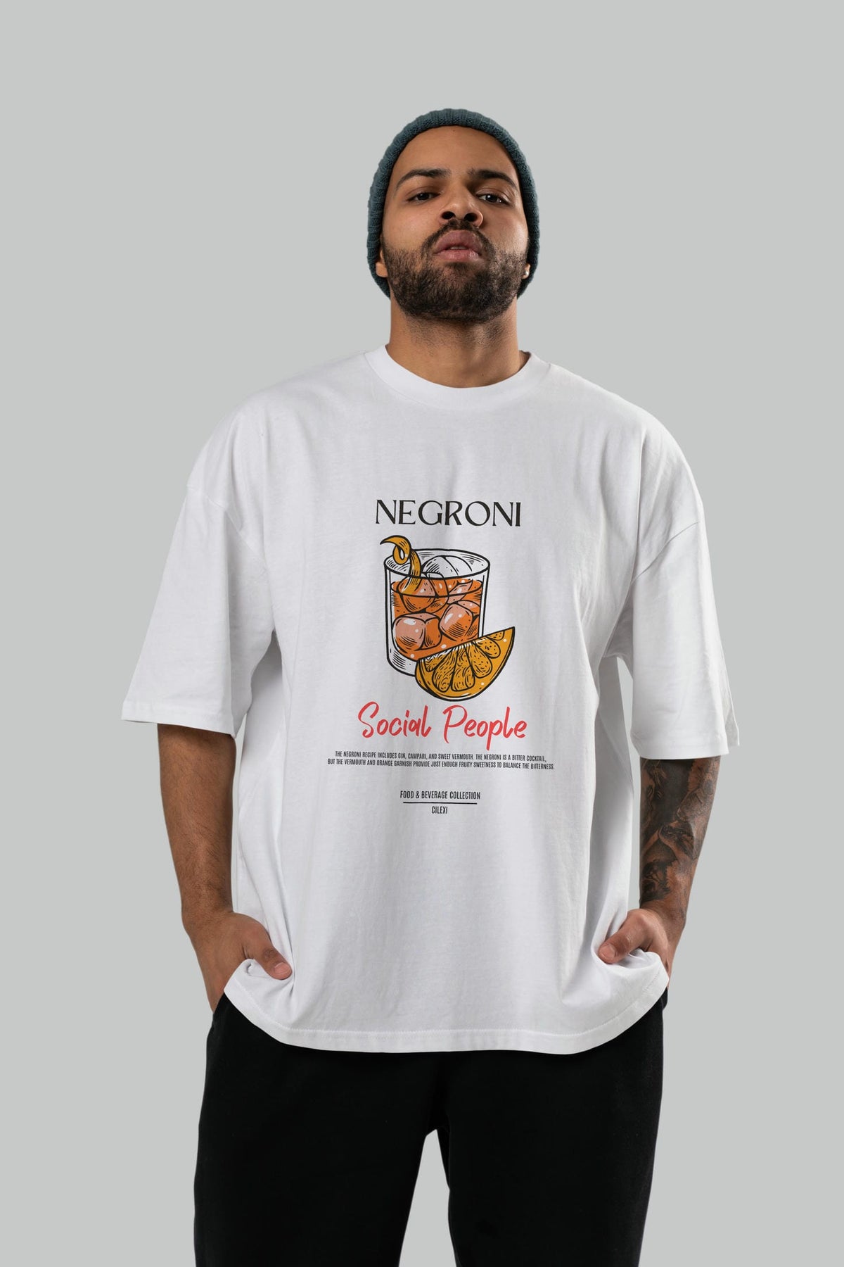 Negroni Kokteyl Serisi ön Baskılı Oversize t-shirt Erkek Kadın %100 Pamuk Bisiklet Yaka tişort