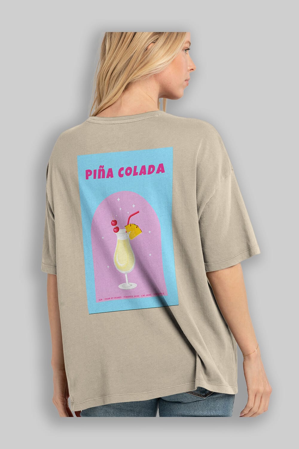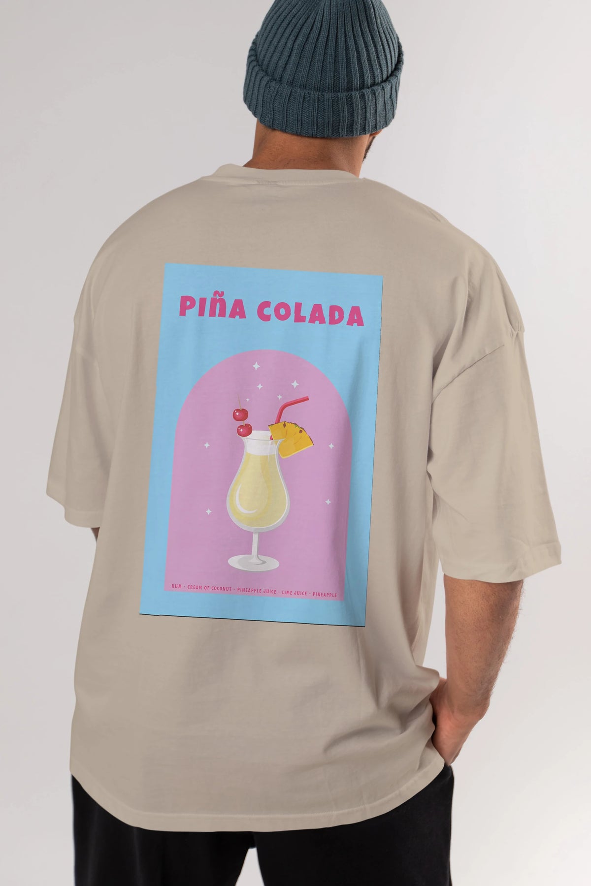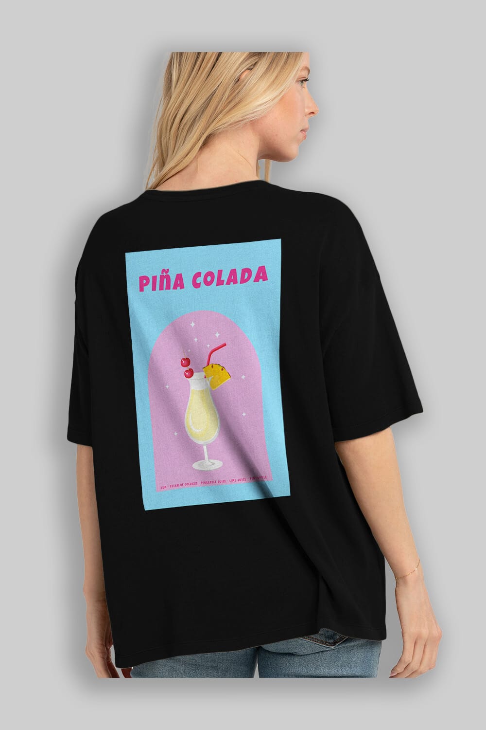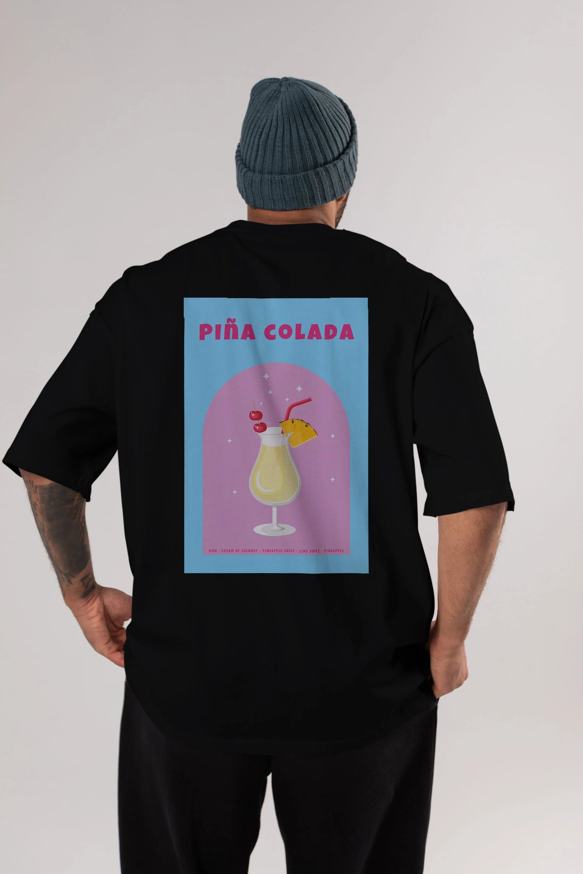 Pina Colada 2 Arka Baskılı Oversize t-shirt Erkek Kadın Unisex %100 Pamuk Bisiklet Yaka tişort