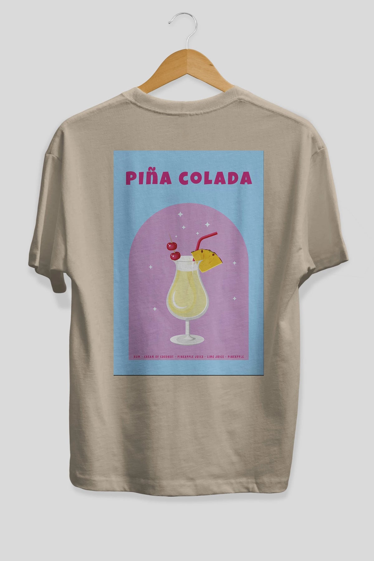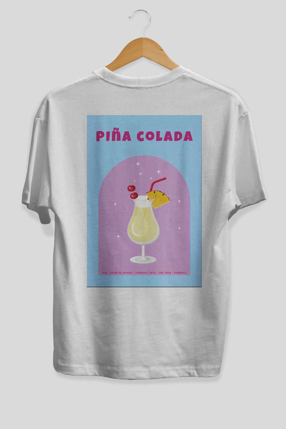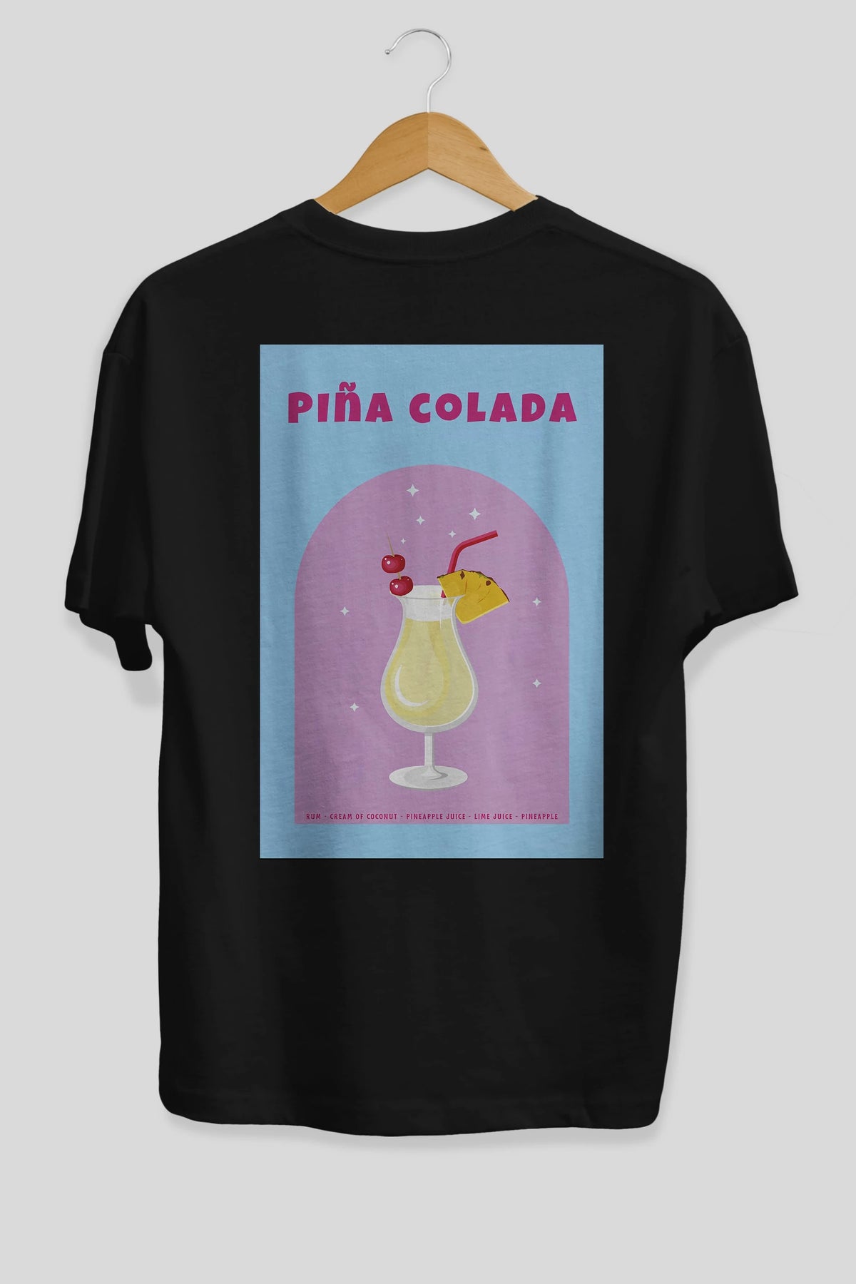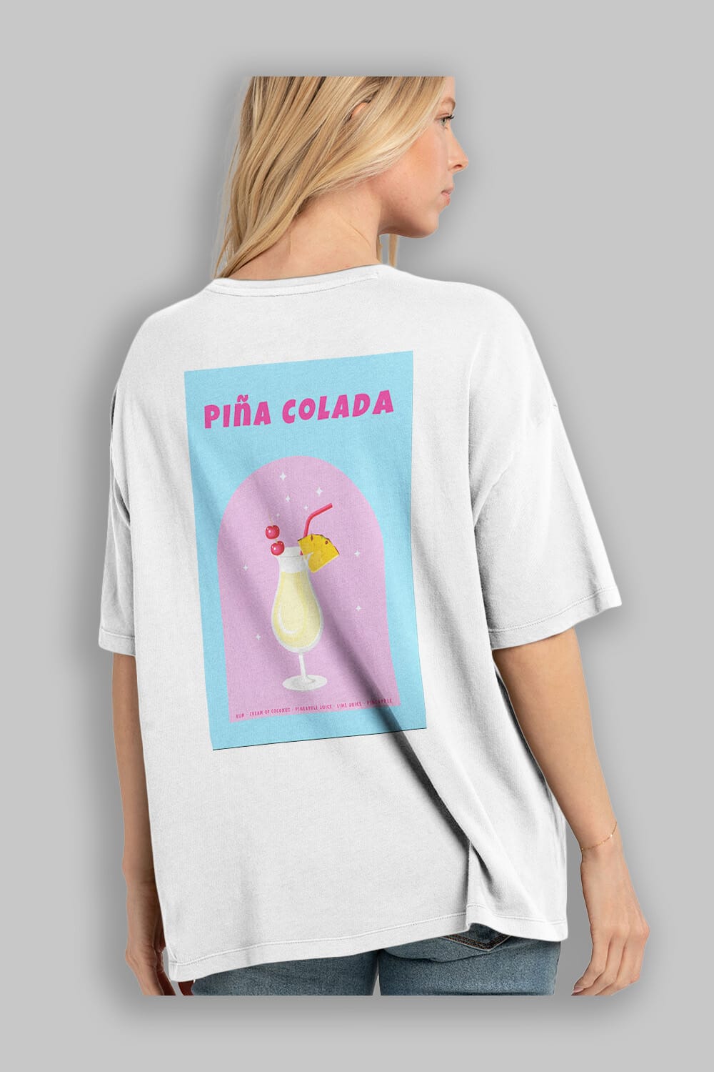 Pina Colada 2 Arka Baskılı Oversize t-shirt Erkek Kadın Unisex %100 Pamuk Bisiklet Yaka tişort