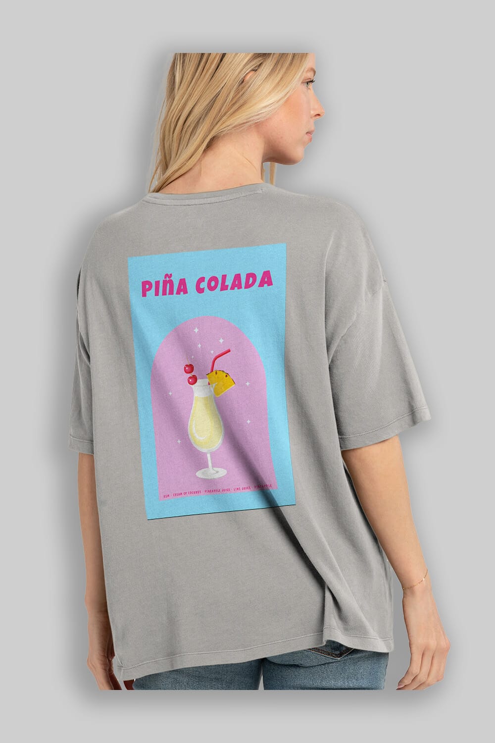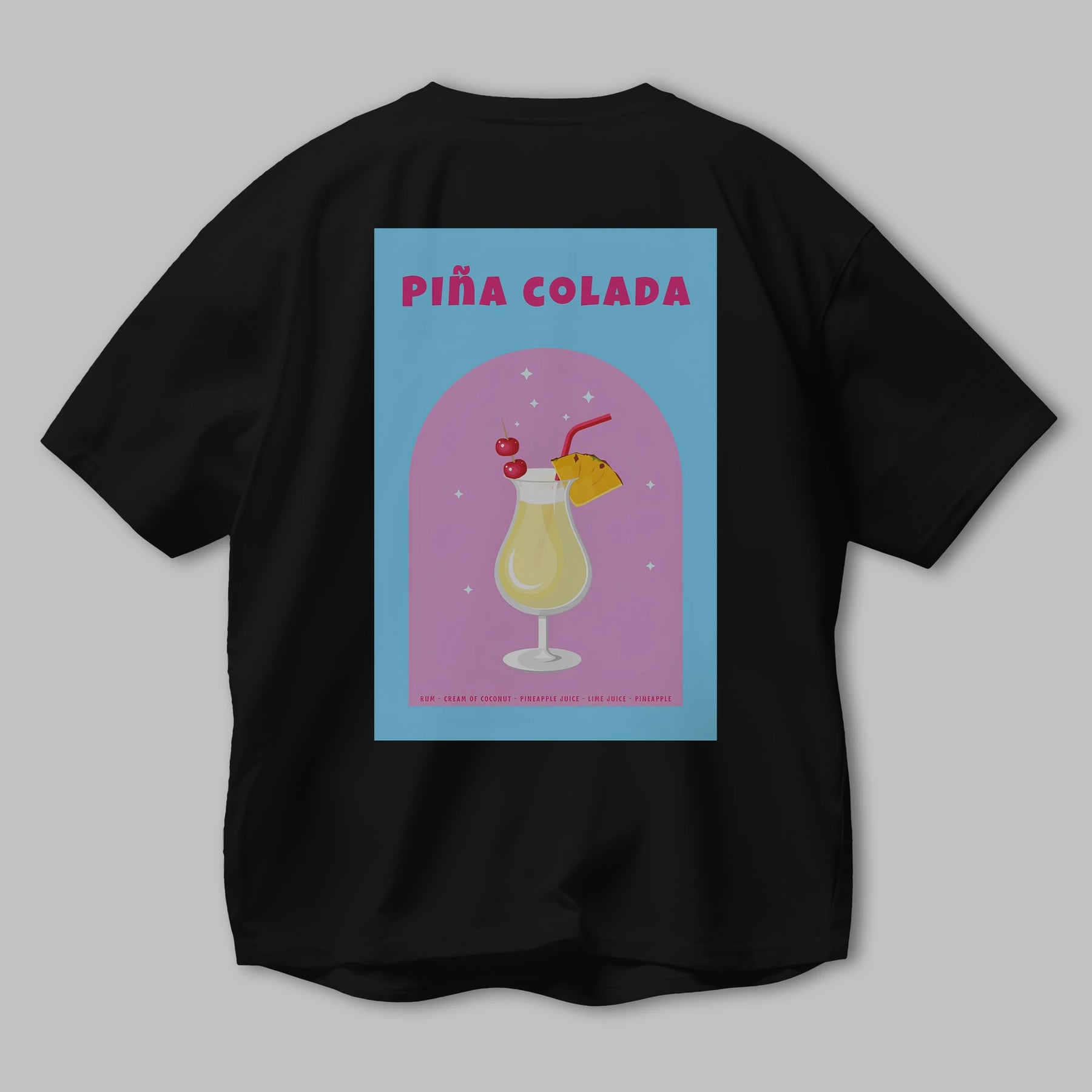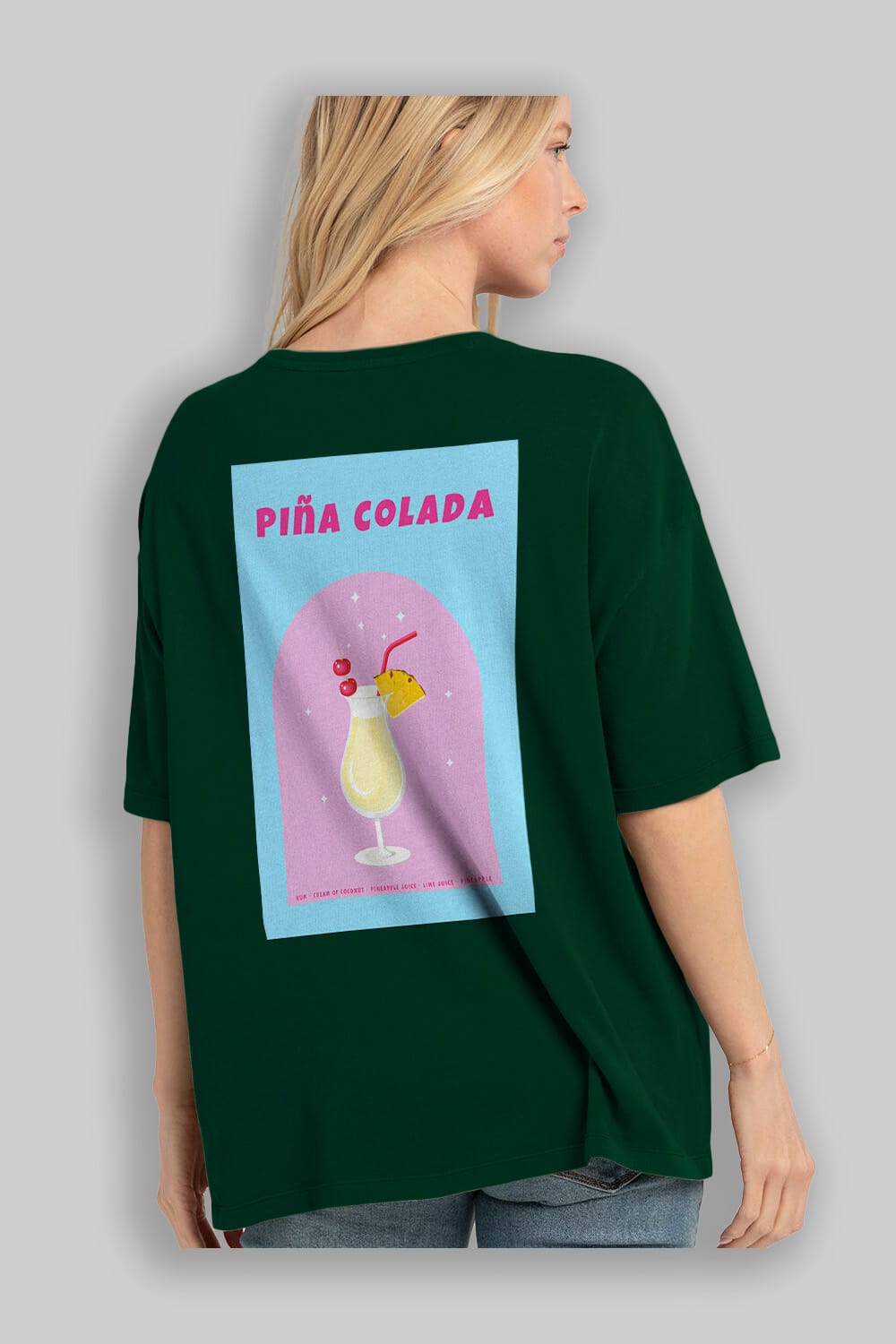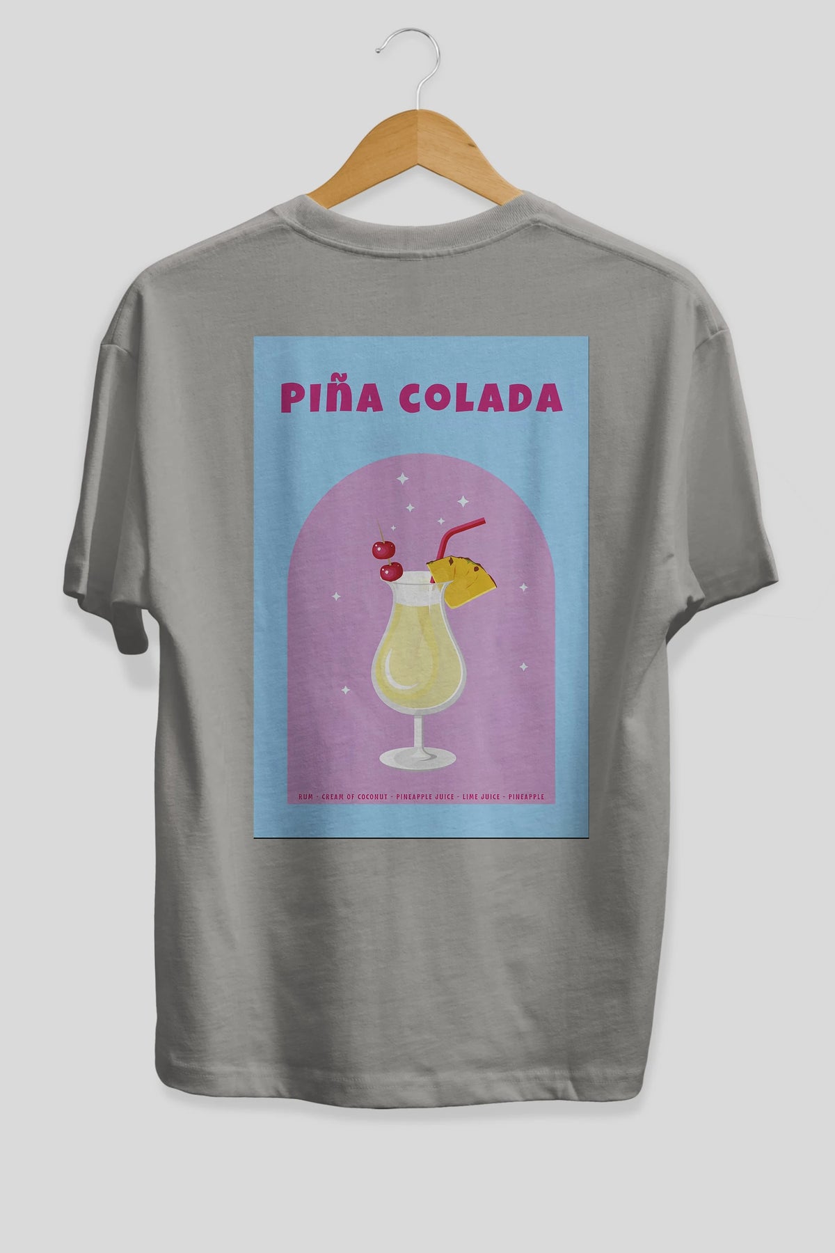 Pina Colada 2 Arka Baskılı Oversize t-shirt Erkek Kadın Unisex %100 Pamuk Bisiklet Yaka tişort