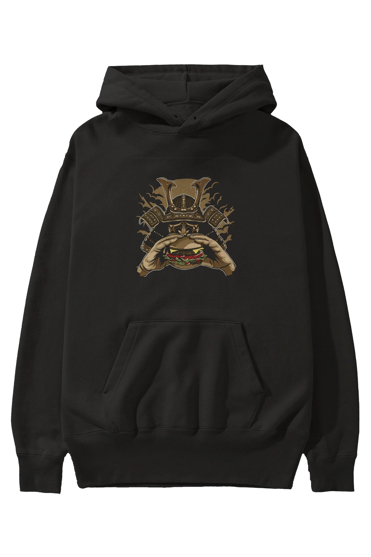 Samurai Burger Ön Baskılı Hoodie Oversize Kapüşonlu Sweatshirt Erkek Kadın Unisex