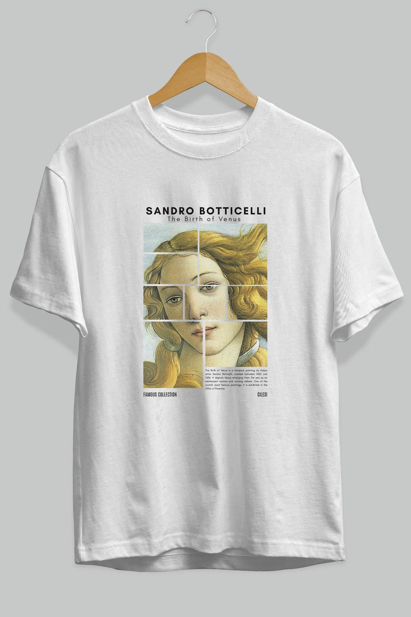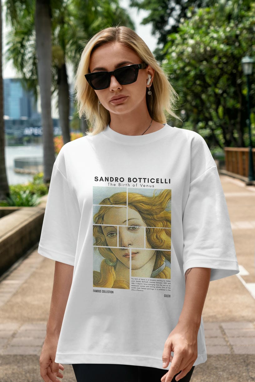 Sandro Botticelli ön Baskılı Oversize t-shirt Erkek Kadın Bisiklet Yaka Pamuk tişort