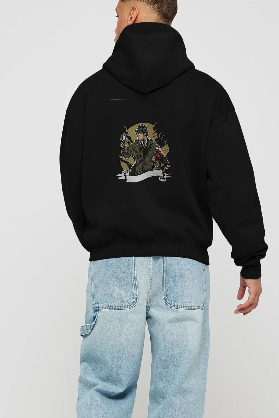 Sherlock Holmes Arka Baskılı Hoodie Oversize Kapüşonlu Sweatshirt Erkek Kadın Unisex