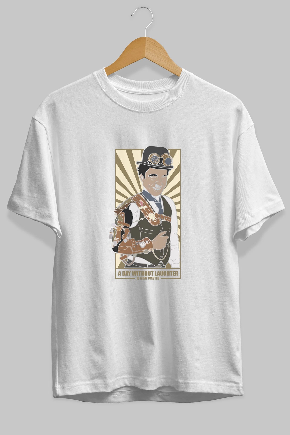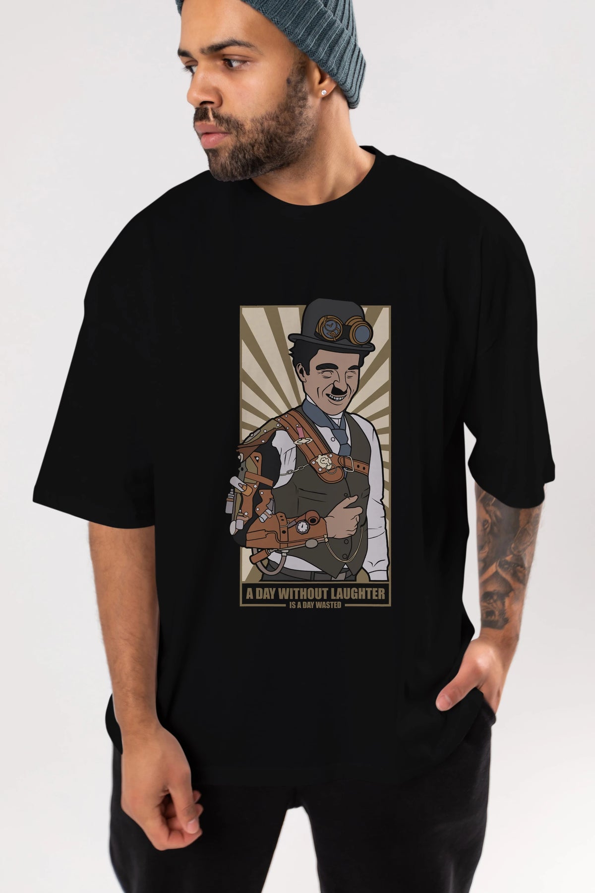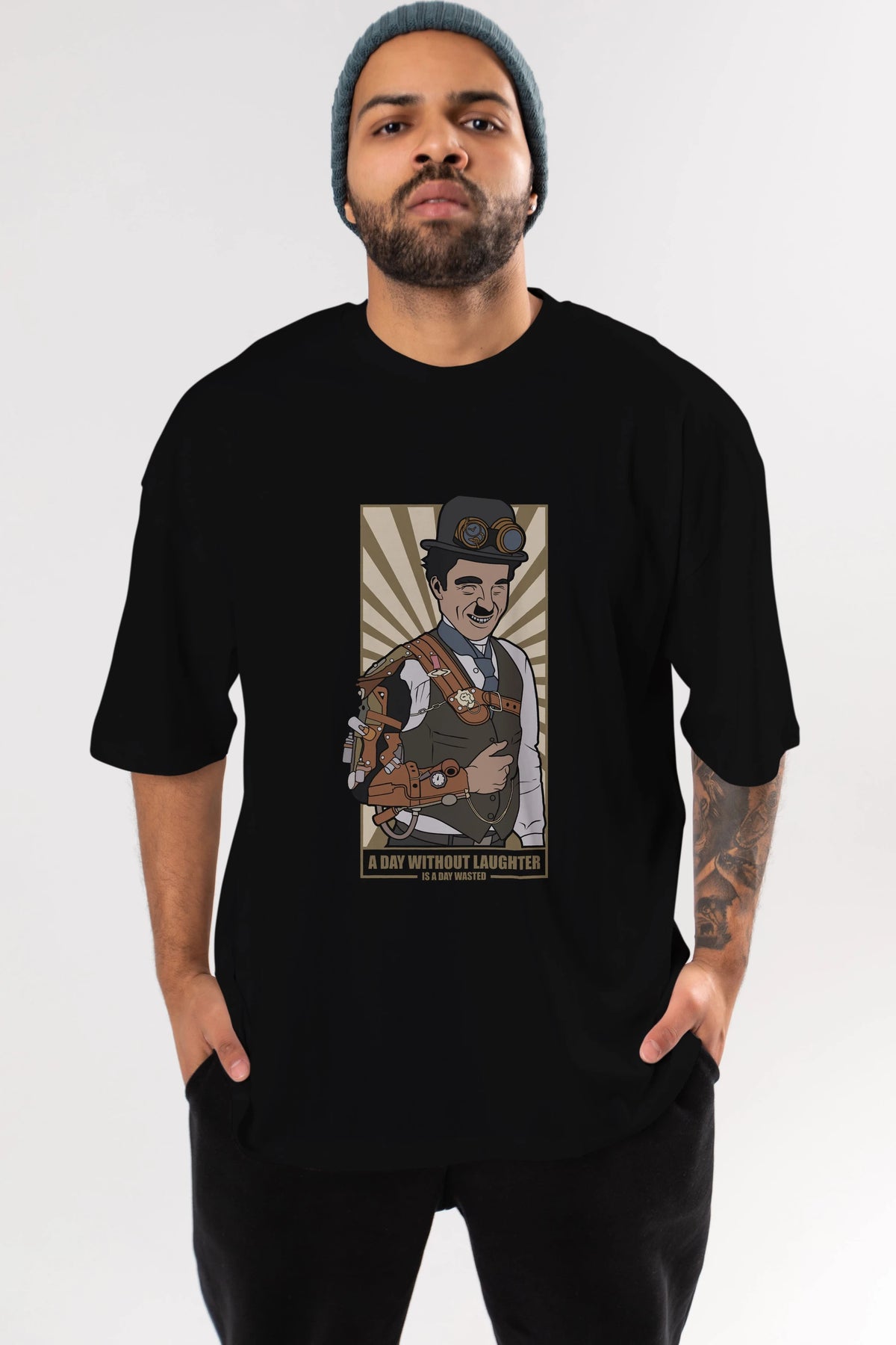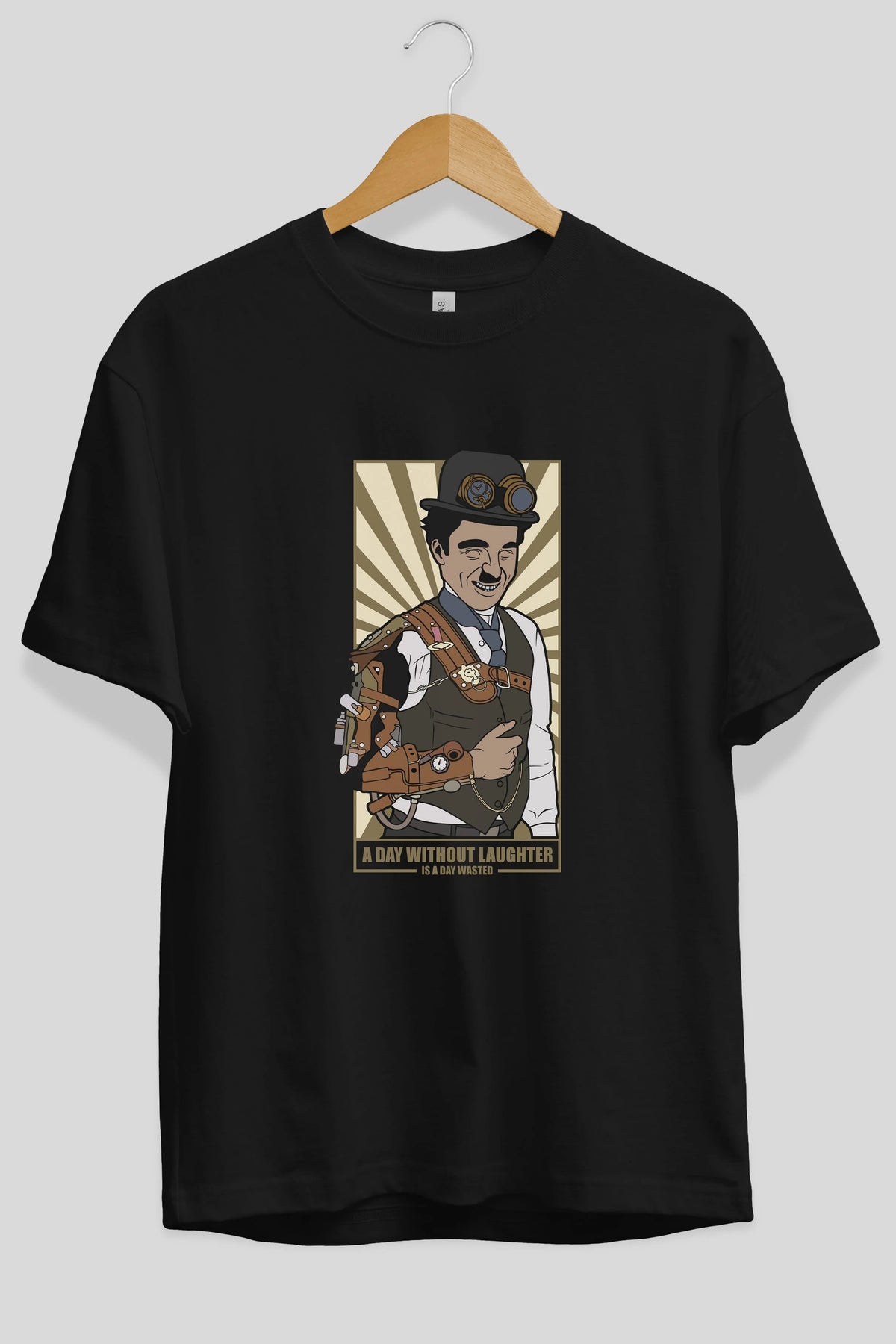 Steampunk Chaplin Ön Baskılı Oversize t-shirt Erkek Kadın Unisex %100 Pamuk tişort