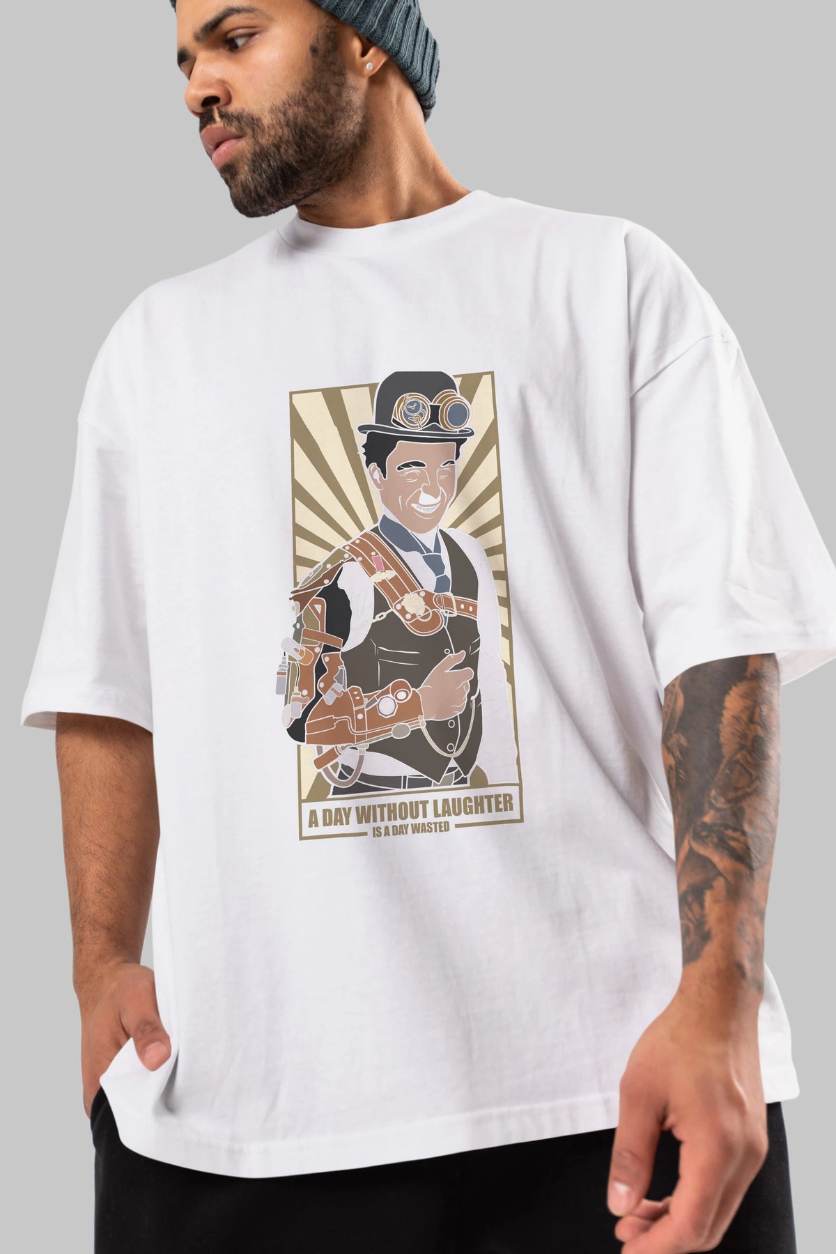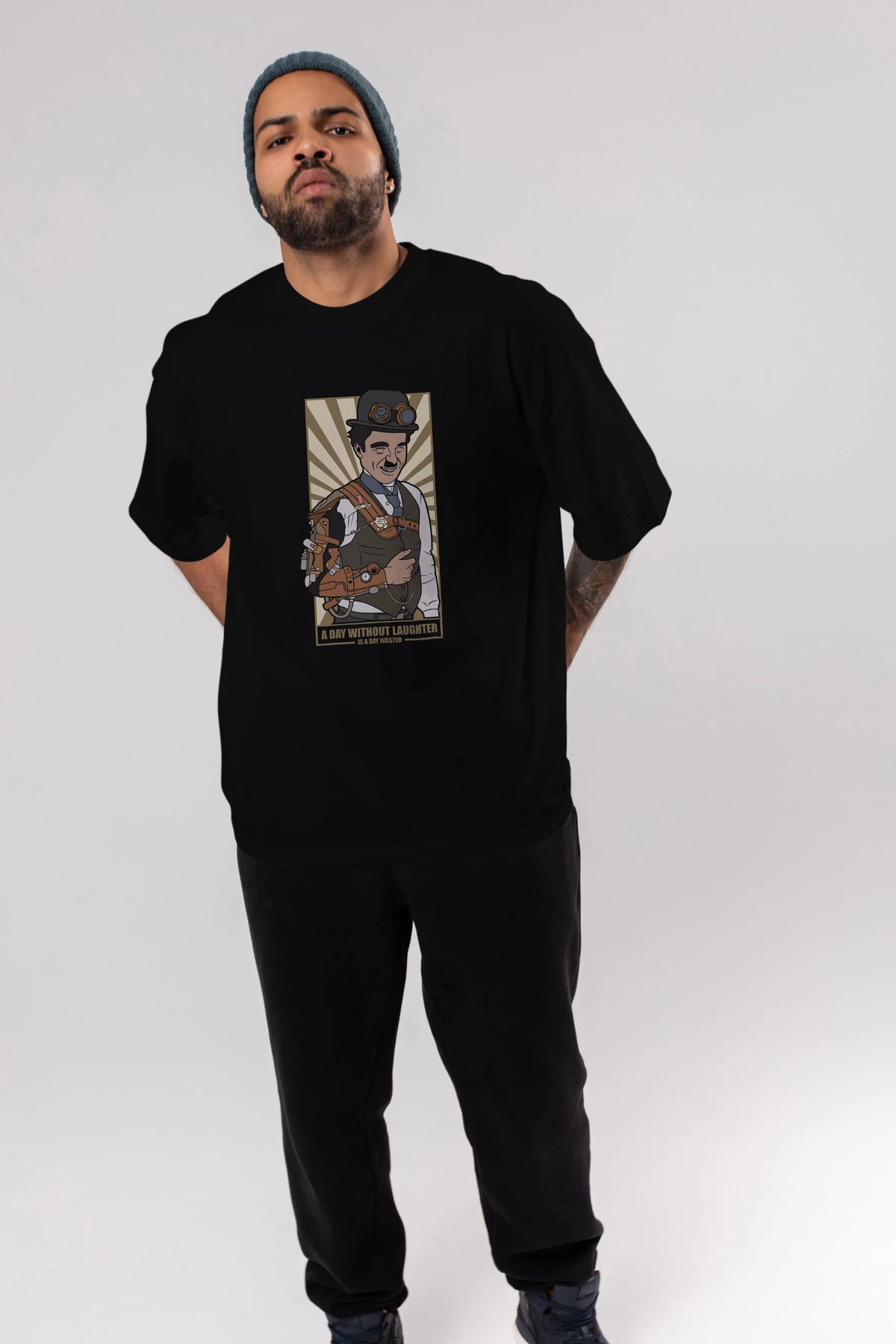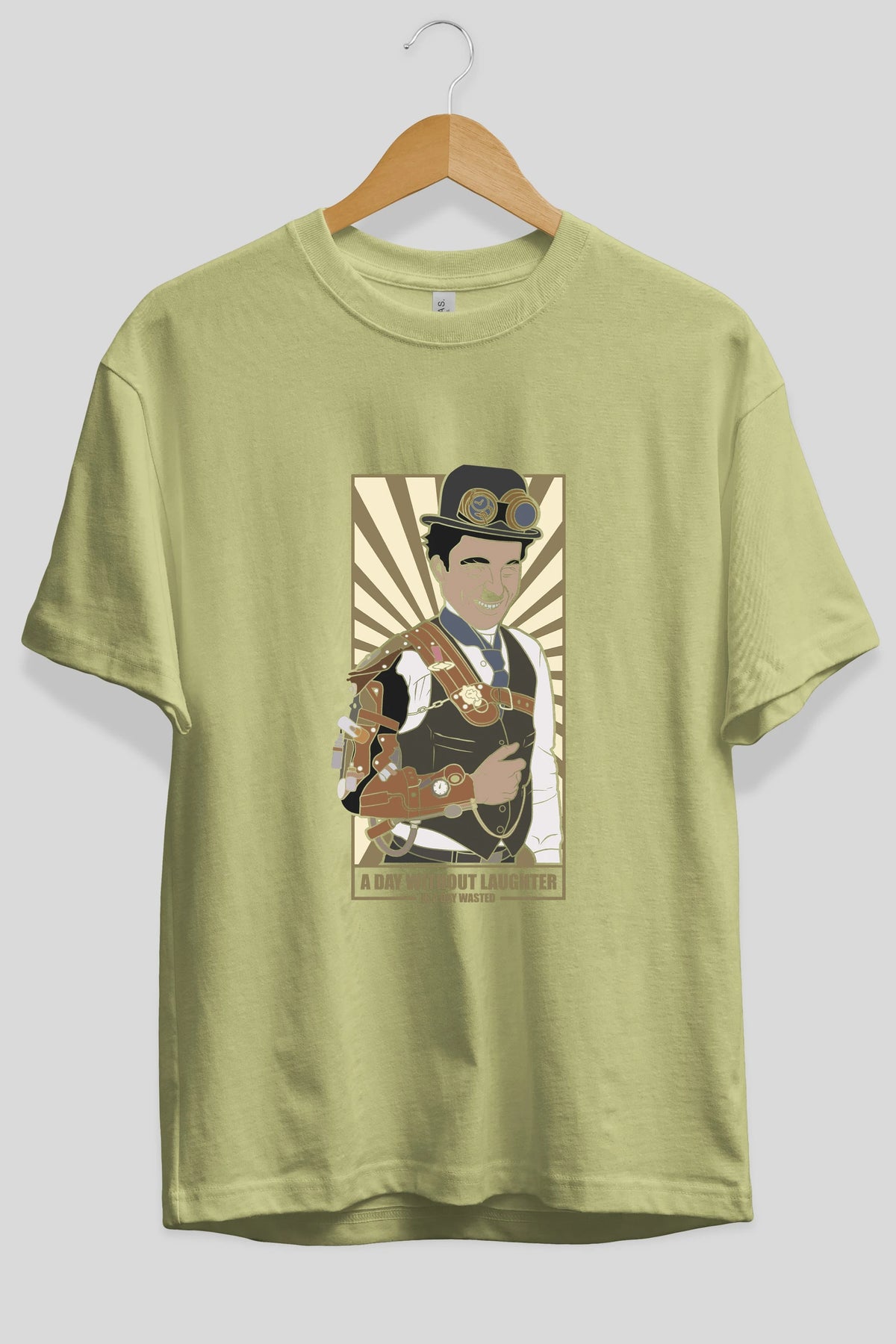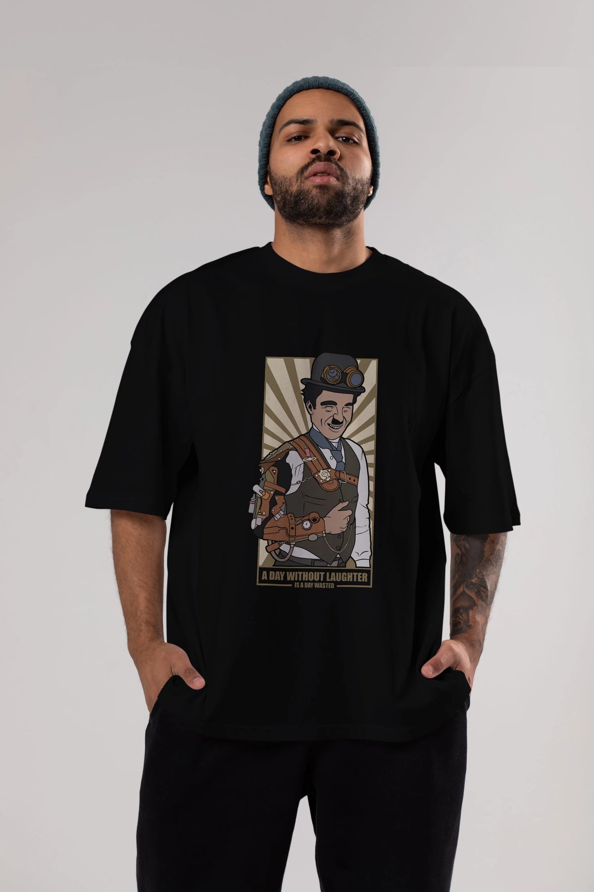Steampunk Chaplin Ön Baskılı Oversize t-shirt Erkek Kadın Unisex %100 Pamuk tişort