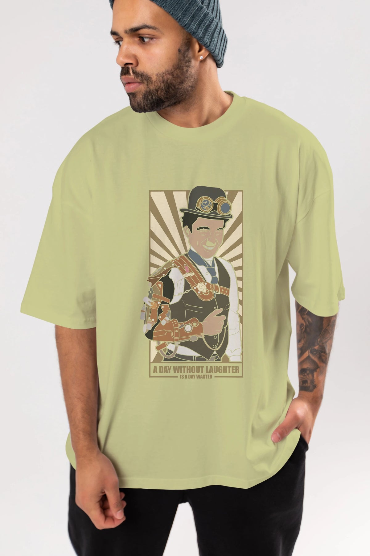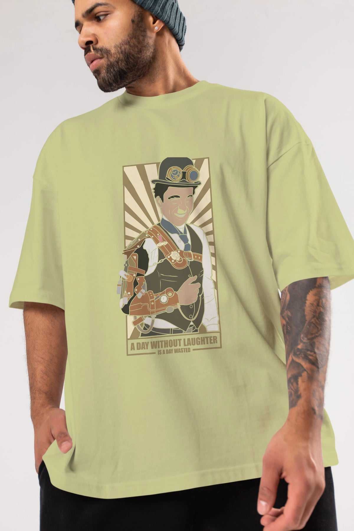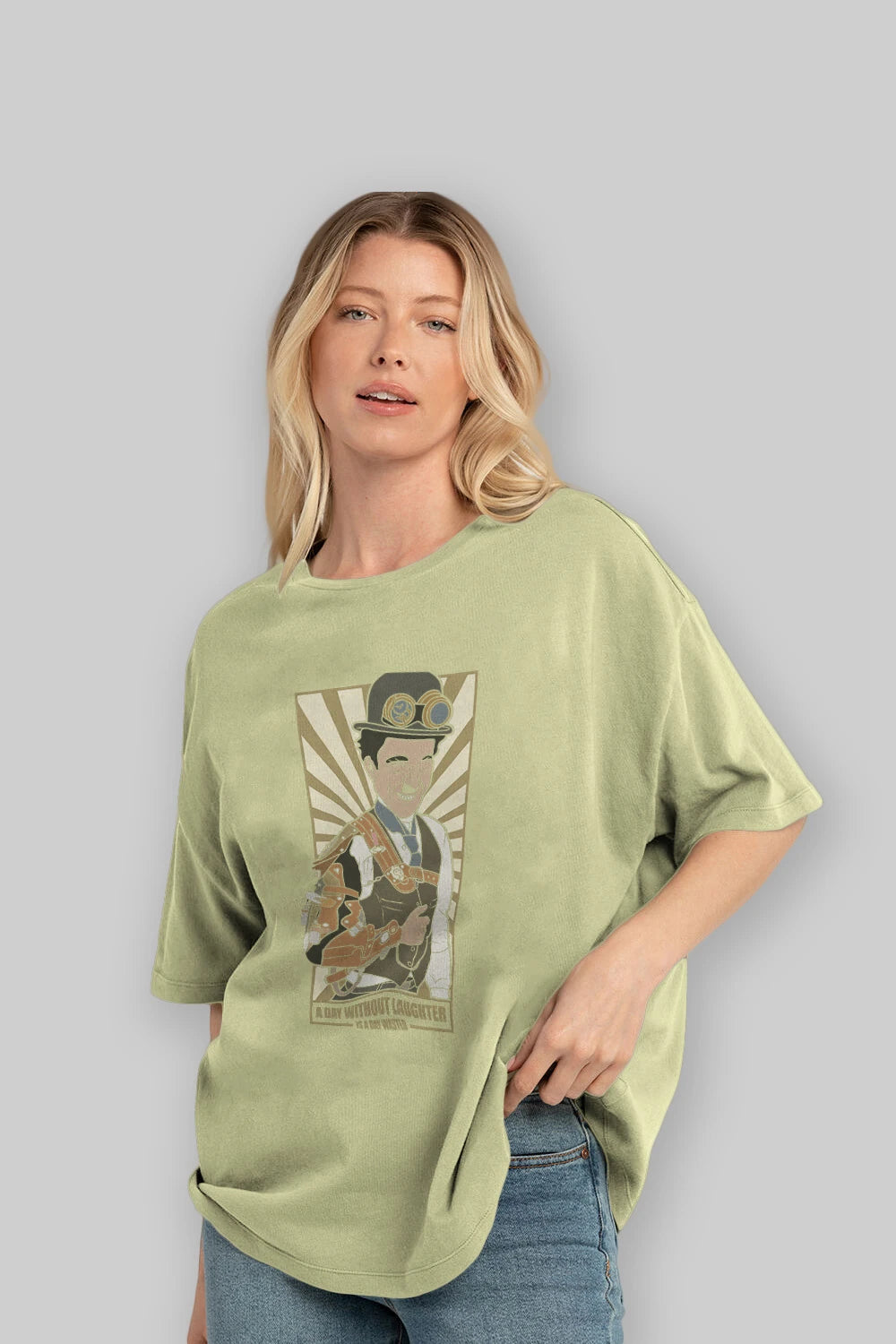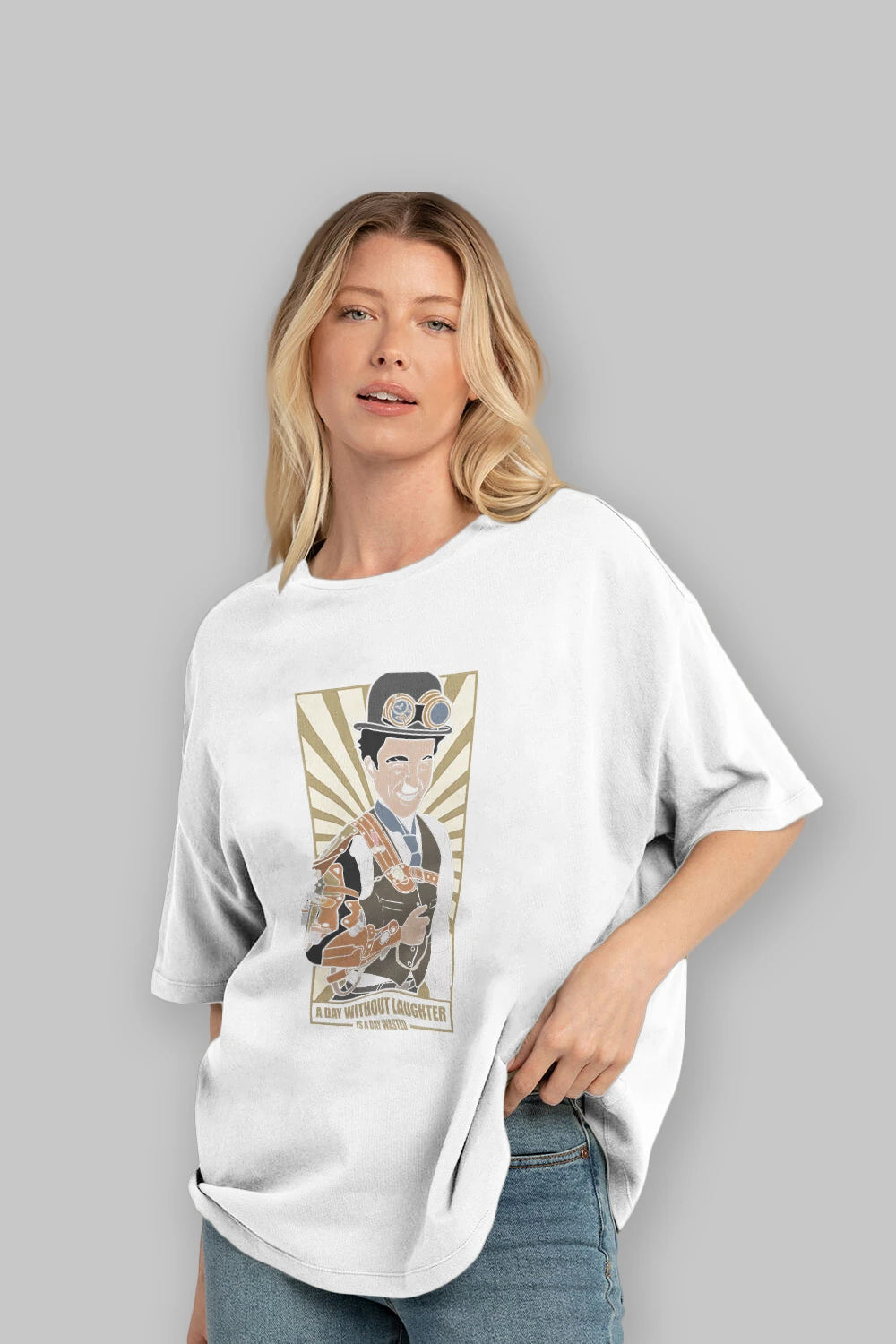 Steampunk Chaplin Ön Baskılı Oversize t-shirt Erkek Kadın Unisex %100 Pamuk tişort