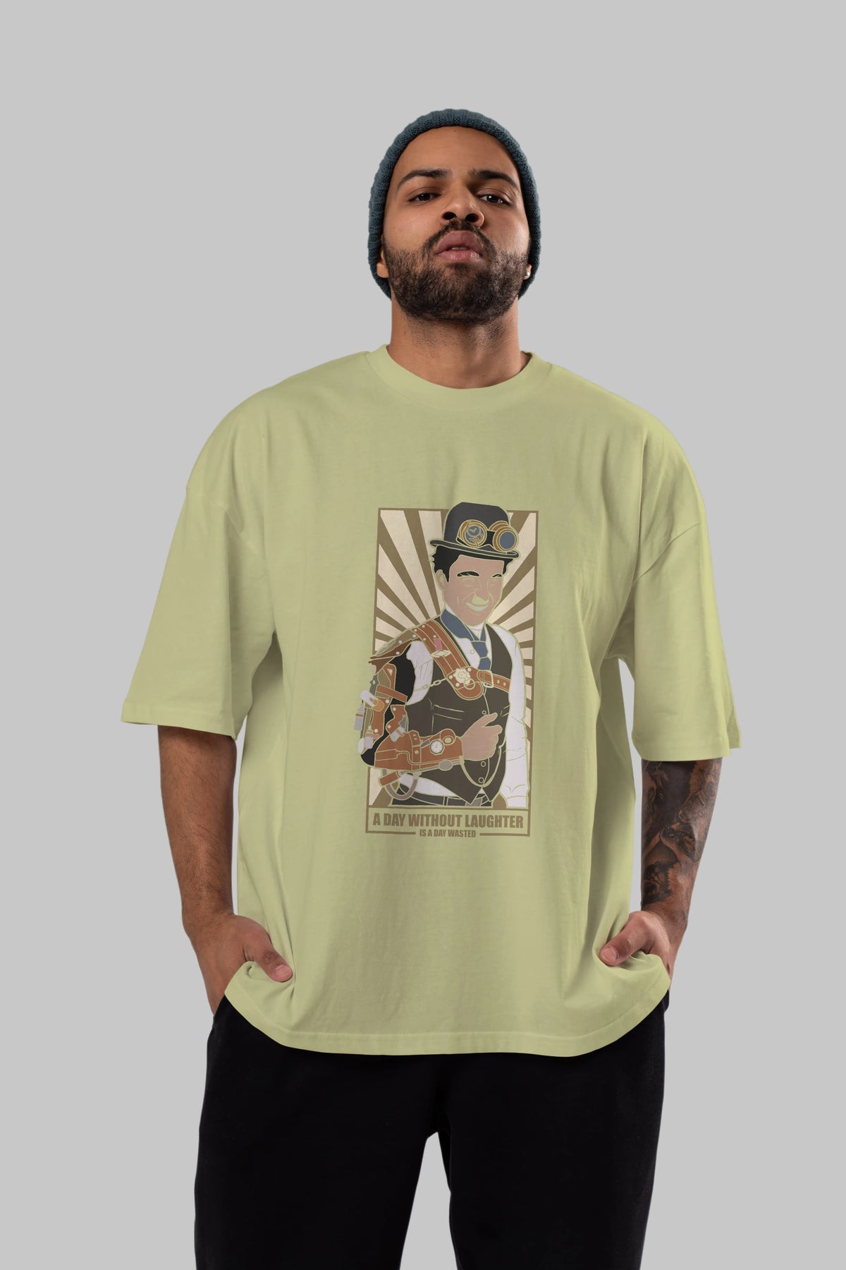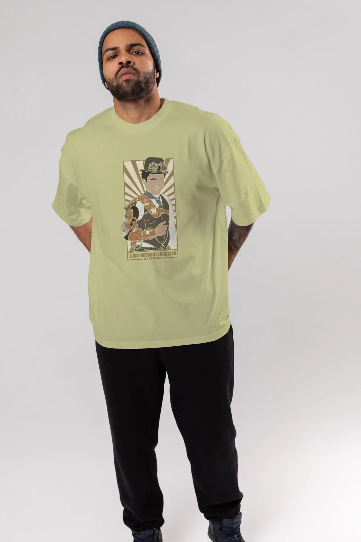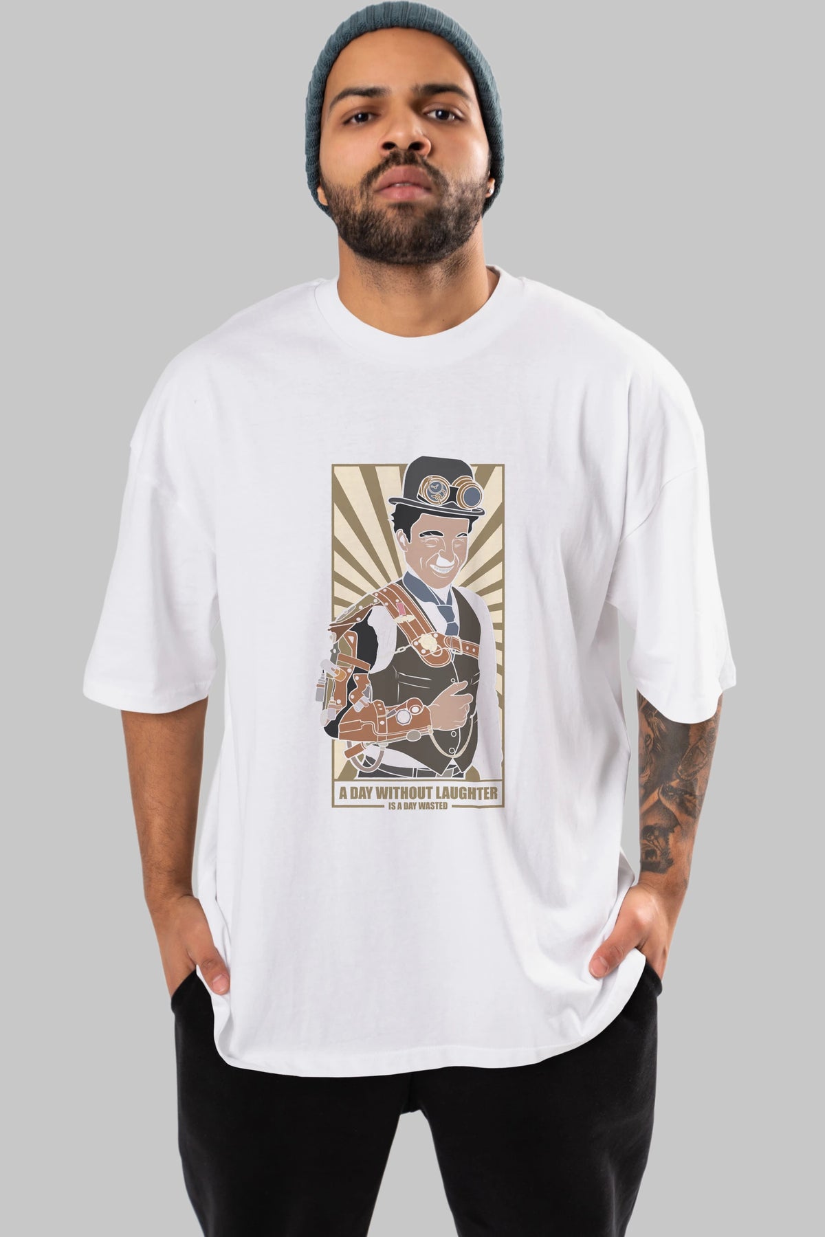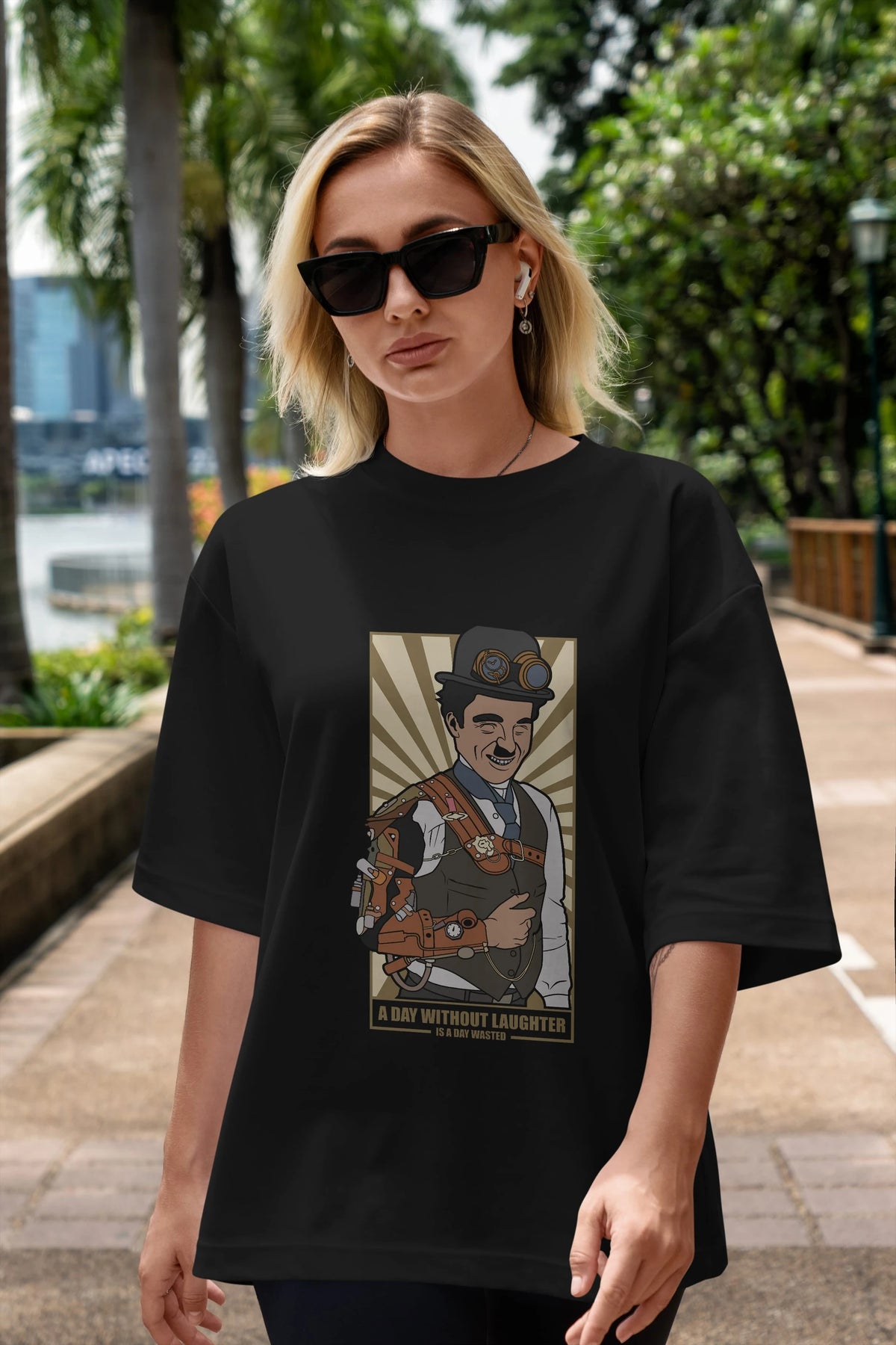 Steampunk Chaplin Ön Baskılı Oversize t-shirt Erkek Kadın Unisex %100 Pamuk tişort